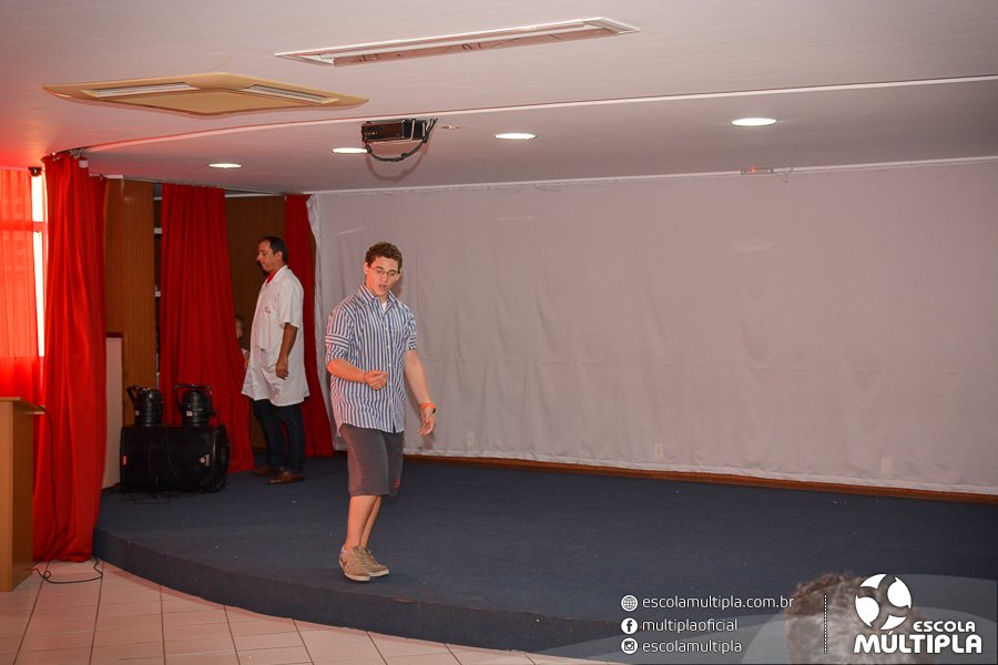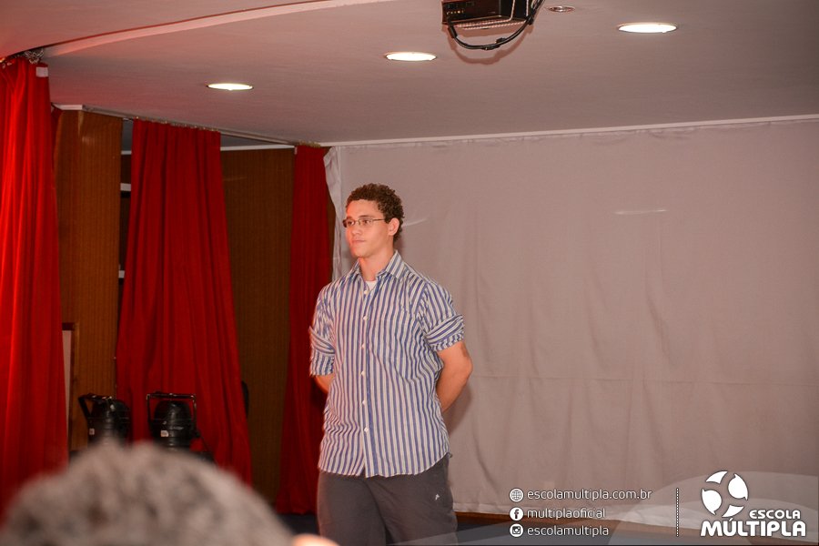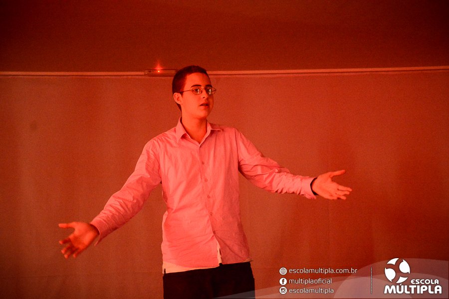 No mês de agosto, os alunos da 2ª série do Ensino Médio realizaram apresentações de esquetes no auditório da Escola Múltipla, sob a coordenação do professor Tiago Garcia.