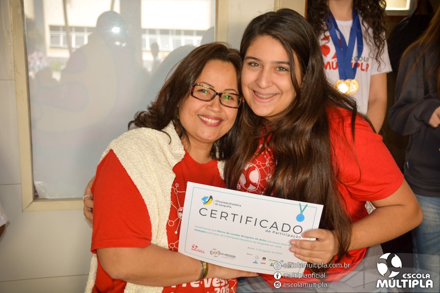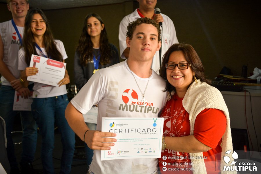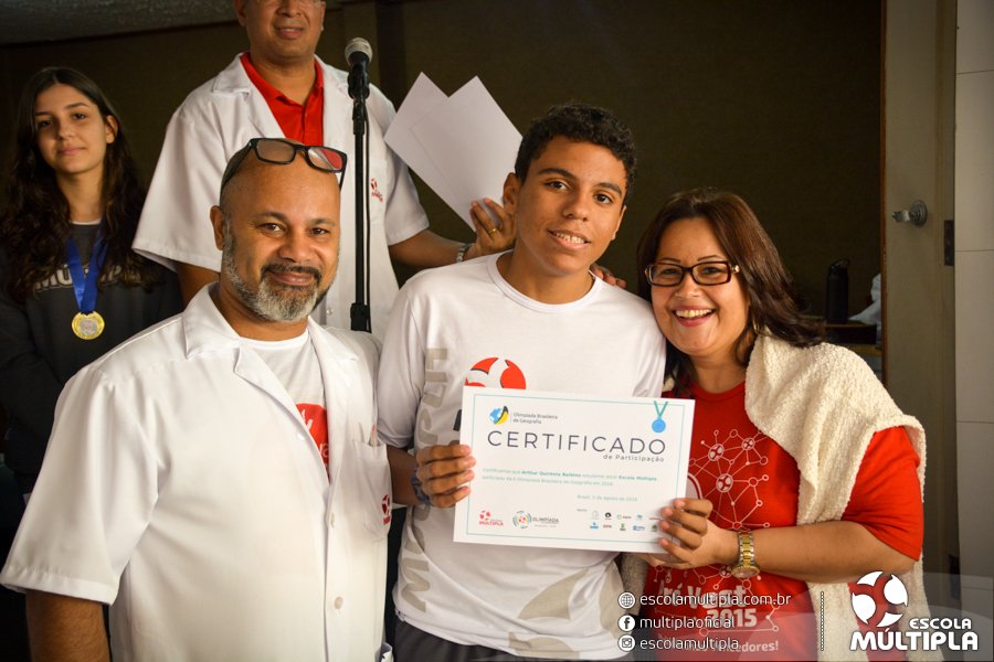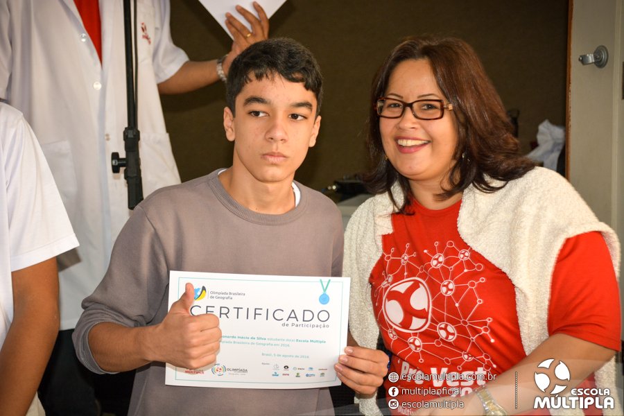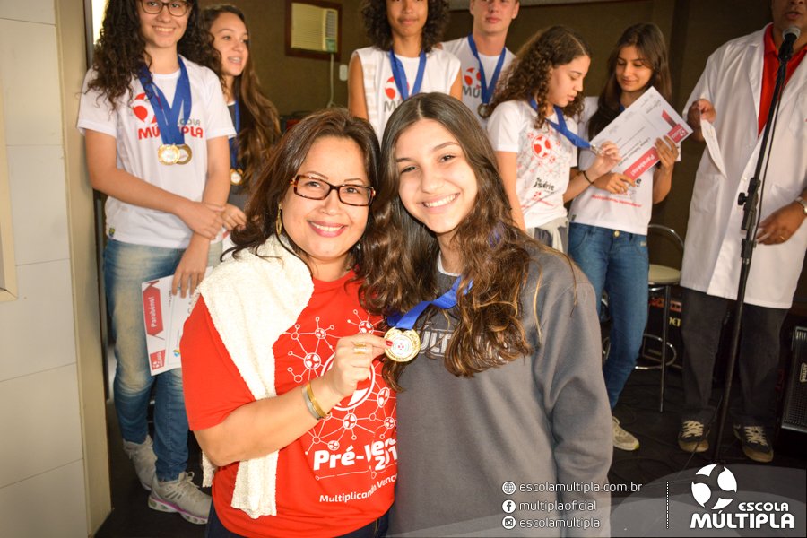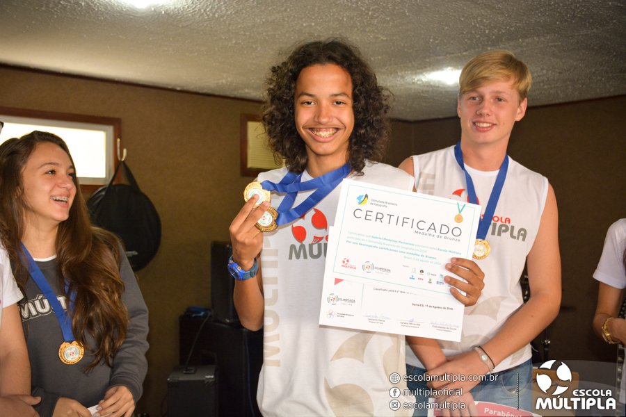Foi uma manhã de muitas medalhas e certificados para os alunos que conquistaram bons resultados nas Olimpíadas de Matemática, Geografia, Física e Biologia.