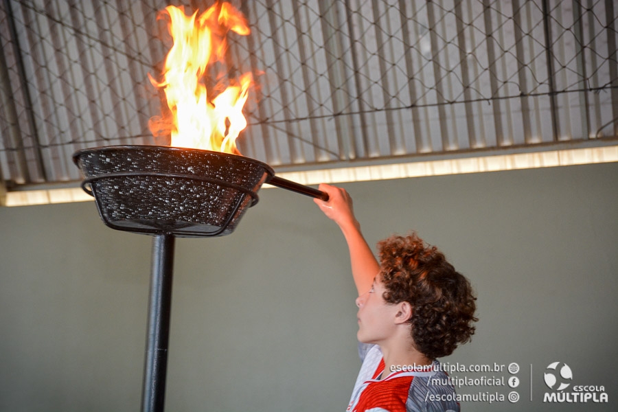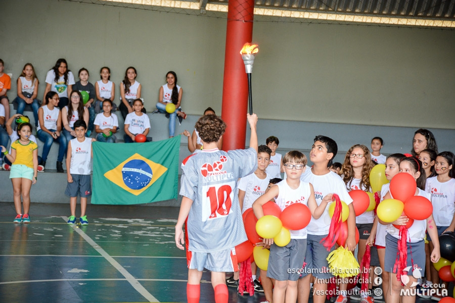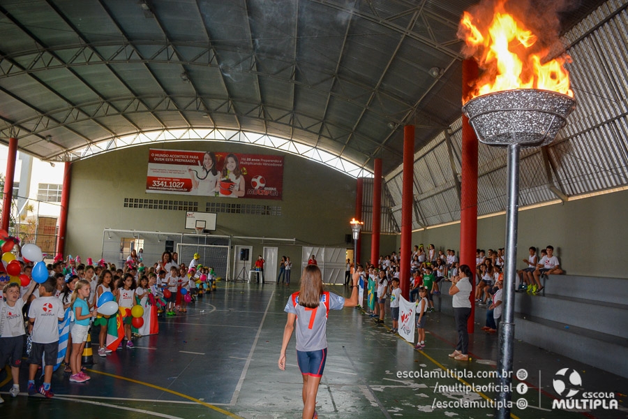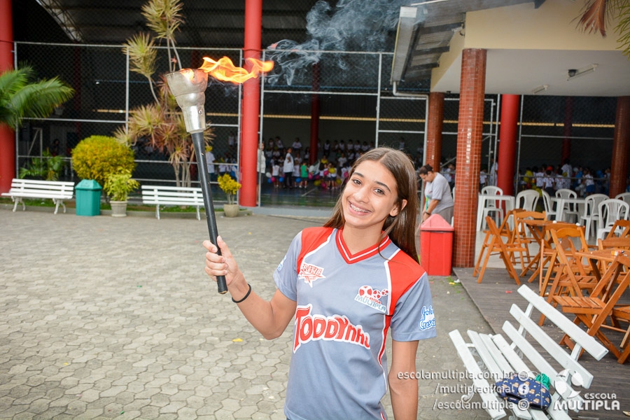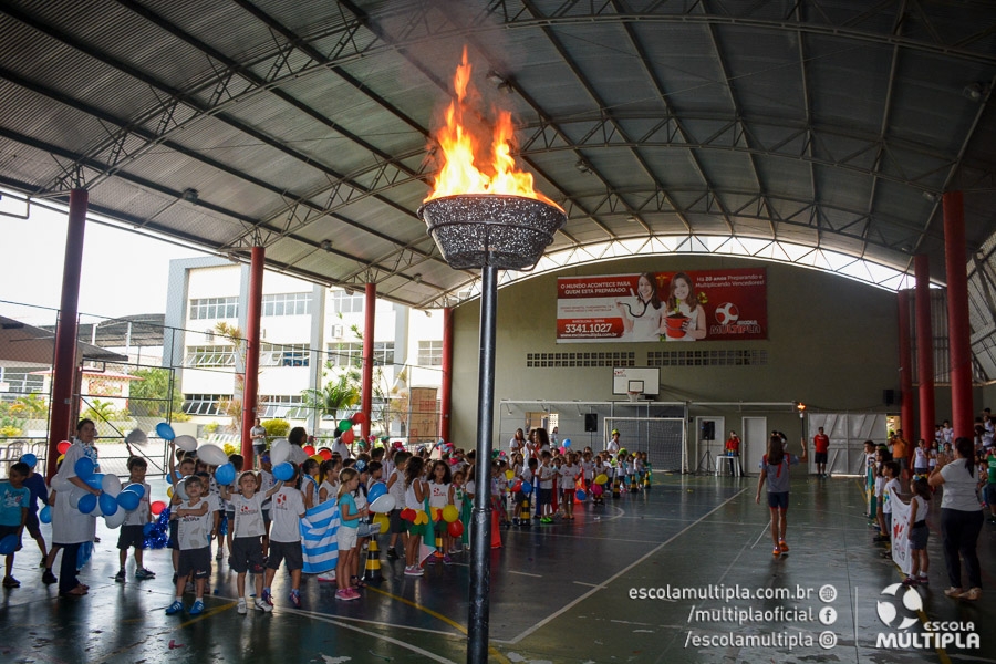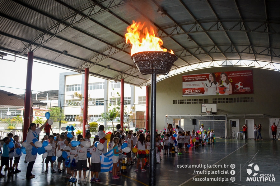 Hoje (09/09), aconteceu a Abertura da Olimpíada Esportiva Múltipla, para alunos da Educação Infantil aos 5ºs ANOS. Foi um momento de muita alegria, a entrada dos alunos segurando as bandeiras de diversos países. A apresentação das bandeiras do Brasil, do Espírito Santo, da Serra e de Escola Múltipla, foi um espetáculo à parte. Após o hino nacional, o destaque foi para o acendimento da tocha, momento que emociona a todos.