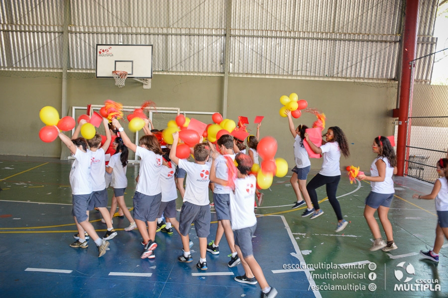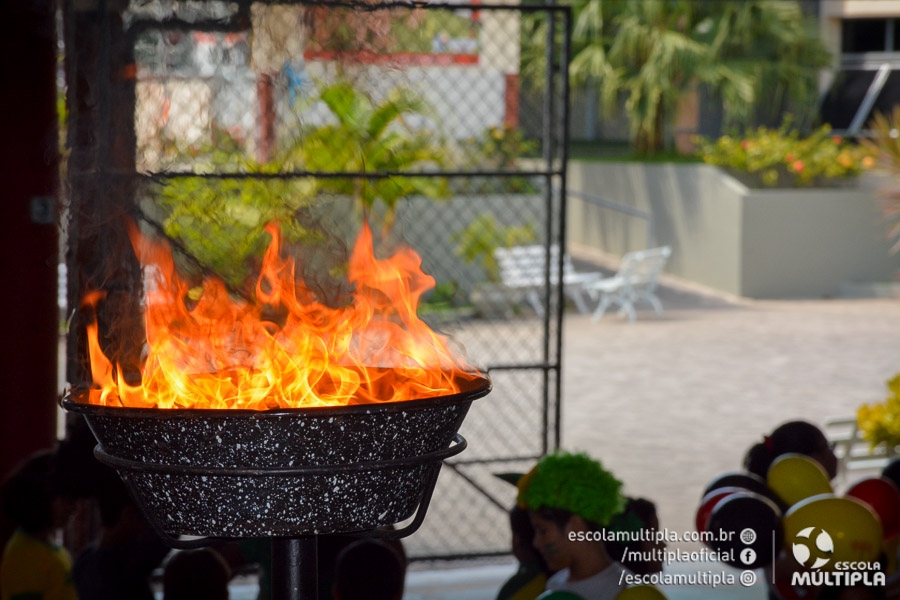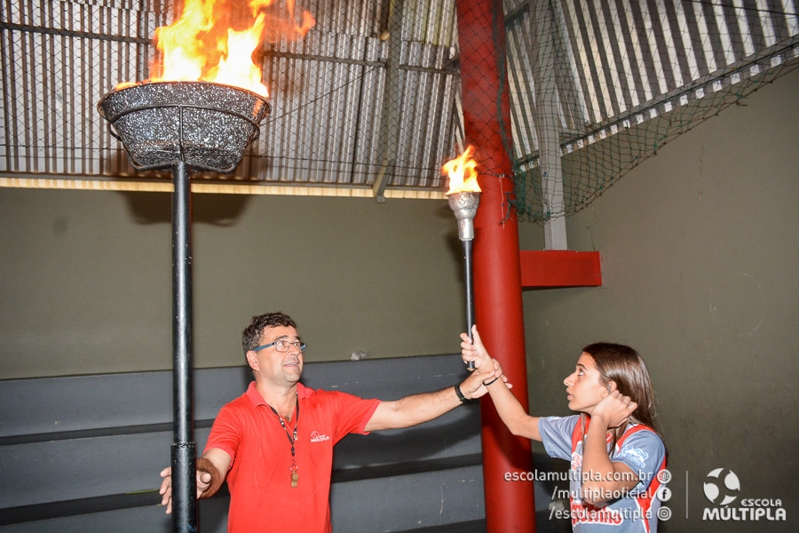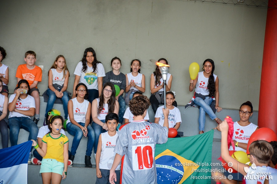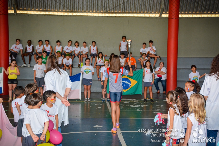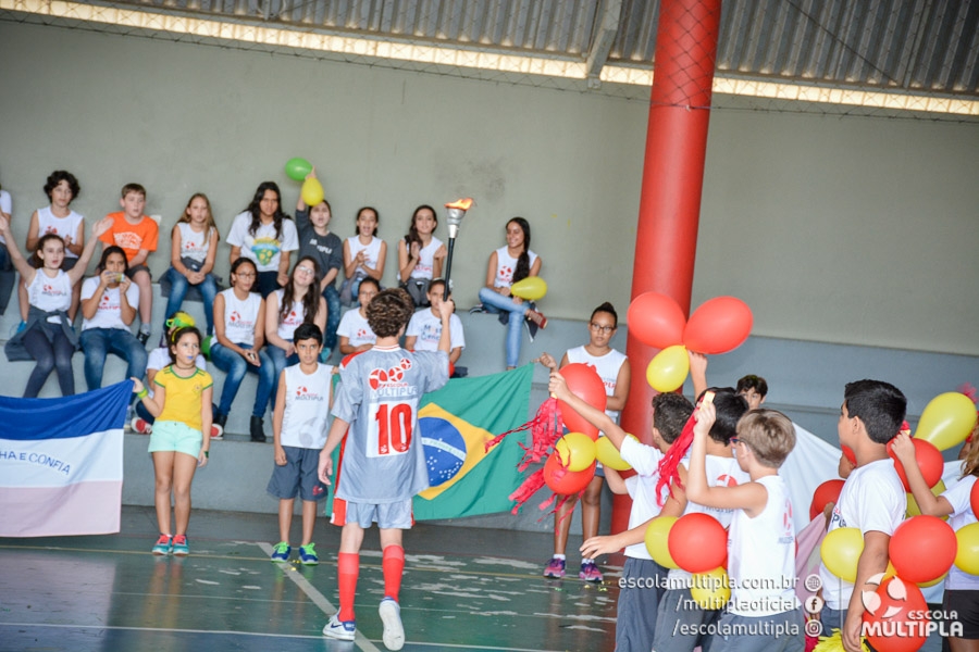 Hoje (09/09), aconteceu a Abertura da Olimpíada Esportiva Múltipla, para alunos da Educação Infantil aos 5ºs ANOS. Foi um momento de muita alegria, a entrada dos alunos segurando as bandeiras de diversos países. A apresentação das bandeiras do Brasil, do Espírito Santo, da Serra e de Escola Múltipla, foi um espetáculo à parte. Após o hino nacional, o destaque foi para o acendimento da tocha, momento que emociona a todos.