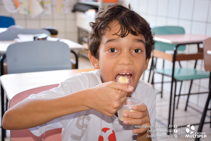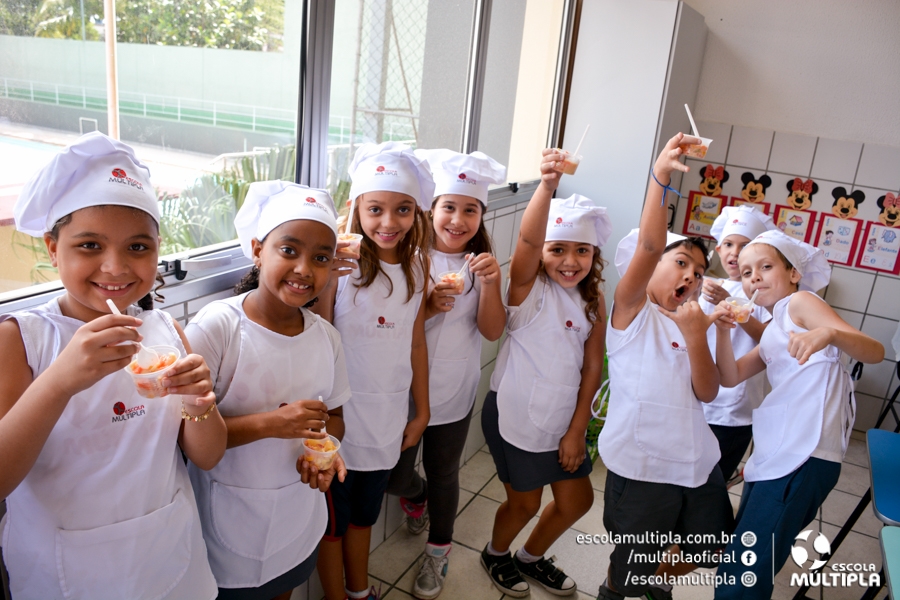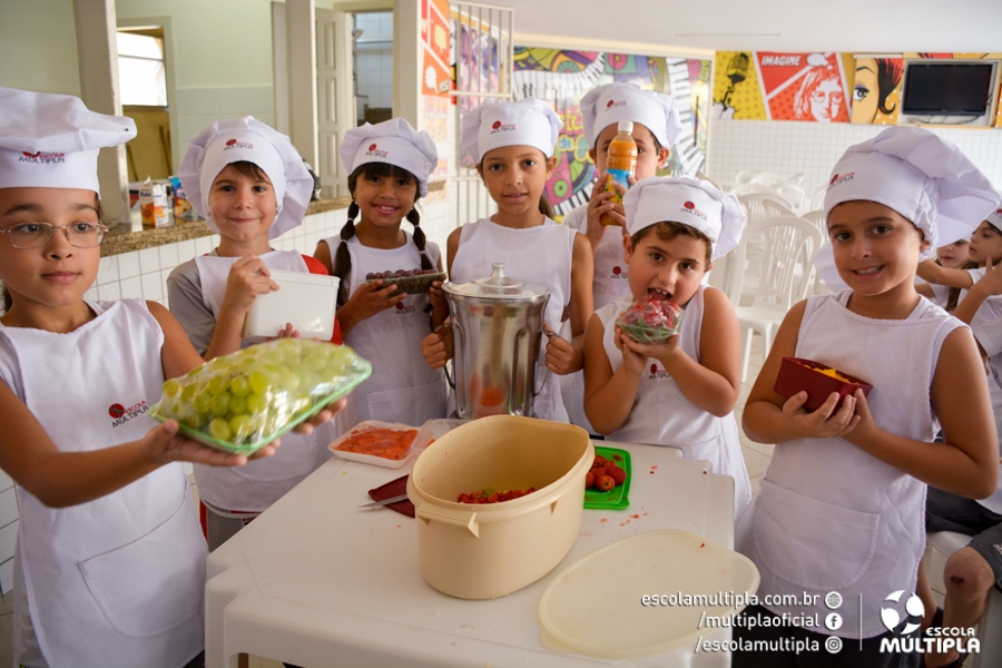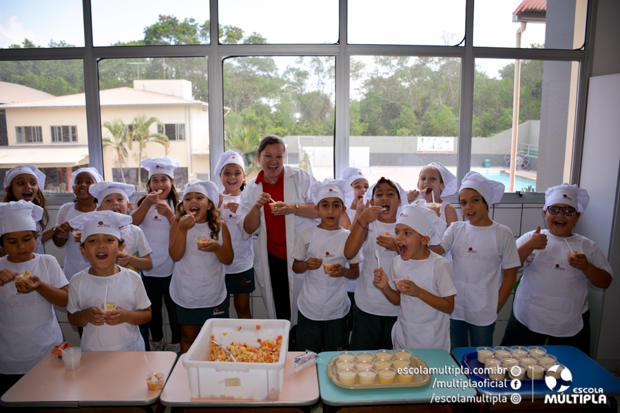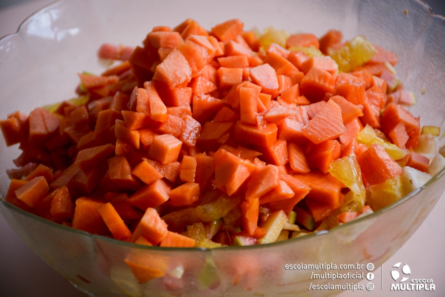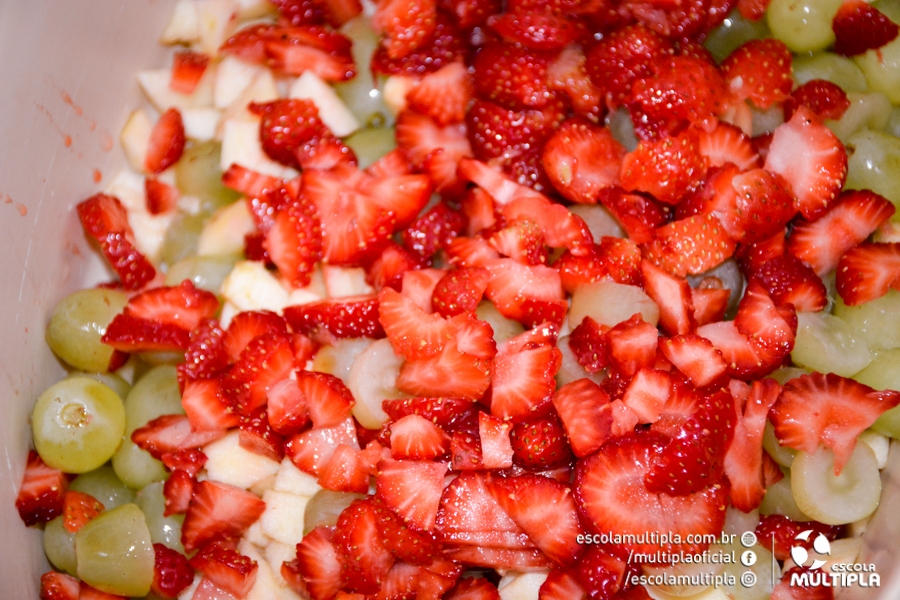 Com o objetivo de contextualizar a prática com os conteúdos estudados, a professoras dos 2ºs ANOS programaram para seus alunos, oficinas de culinária com as receitas: Salada de frutas e Mousse de maracujá.