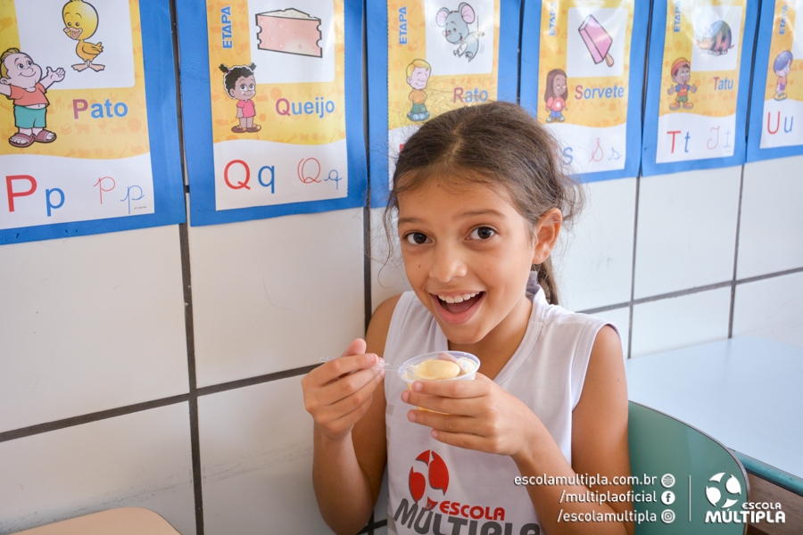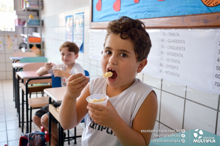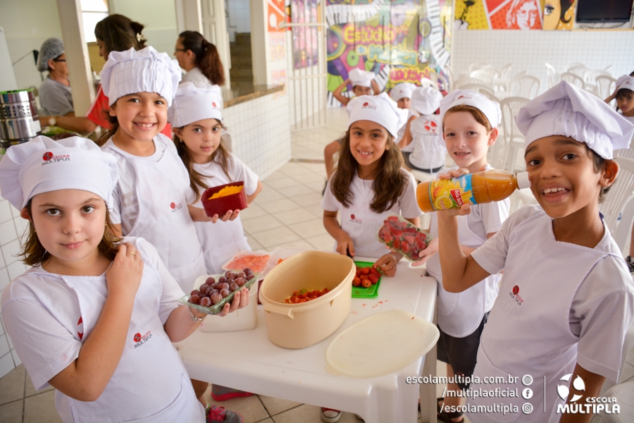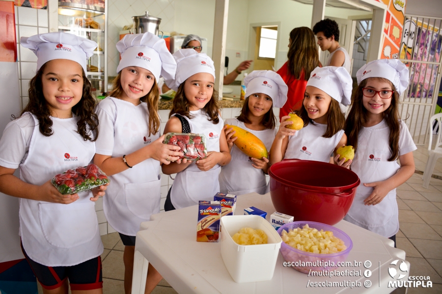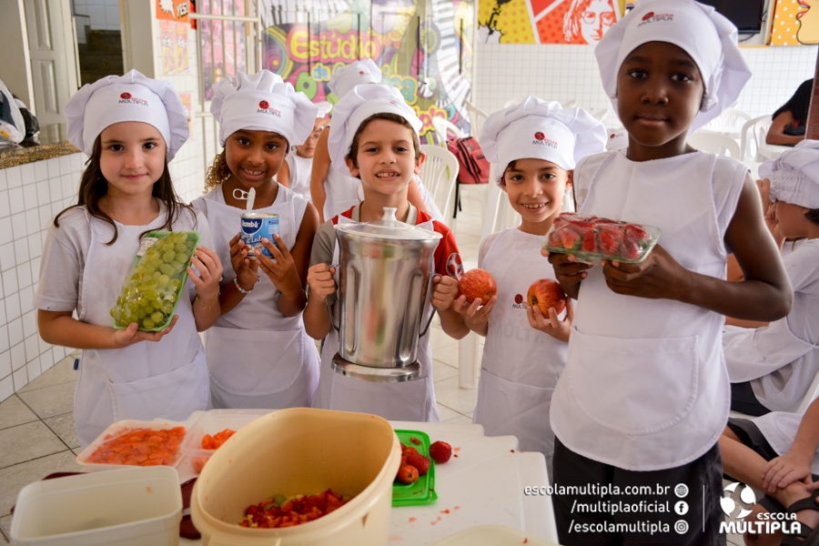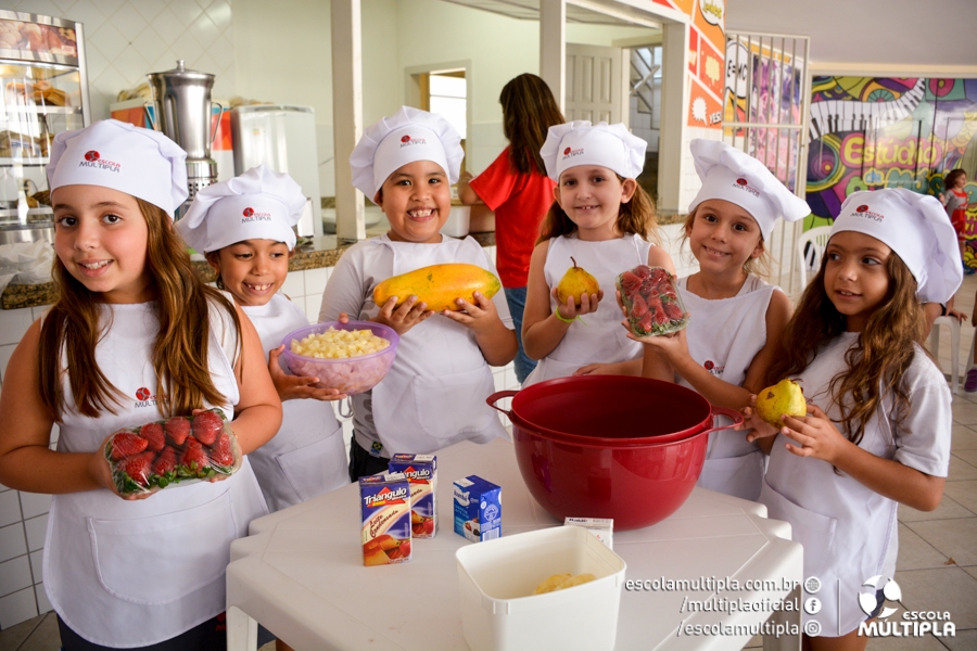 Com o objetivo de contextualizar a prática com os conteúdos estudados, a professoras dos 2ºs ANOS programaram para seus alunos, oficinas de culinária com as receitas: Salada de frutas e Mousse de maracujá.