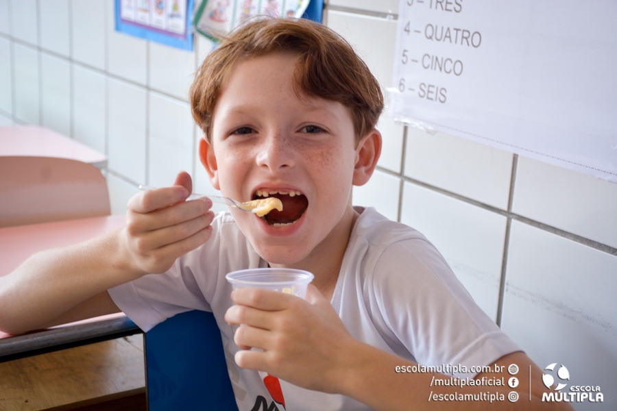 Após fazerem as receitas, os alunos degustaram cada uma e puderam identificar a diferença da mistura homogênea e da mistura heterogênea, conteúdo que estão estudando na Apostila 7, na disciplina de ciências.