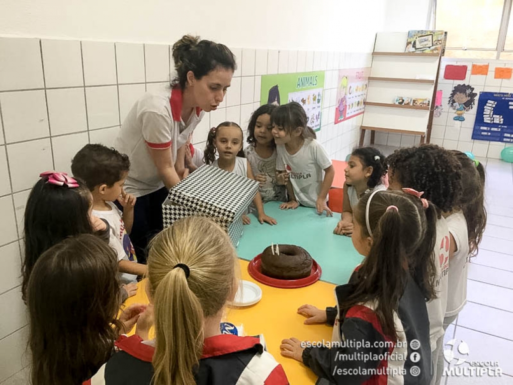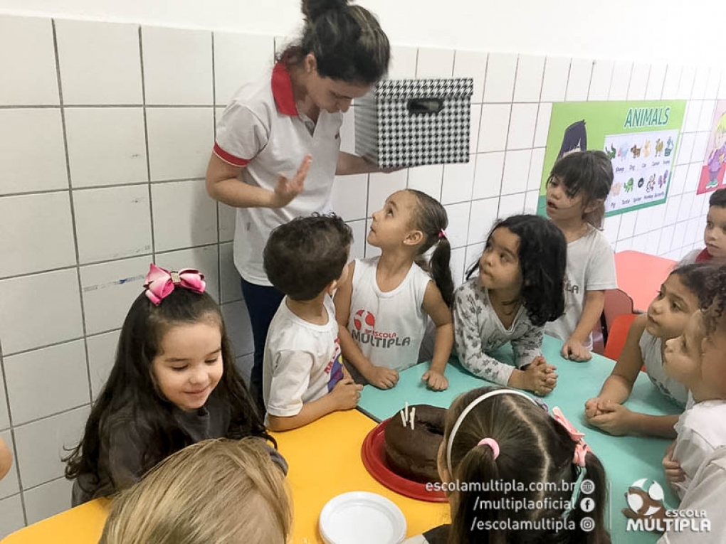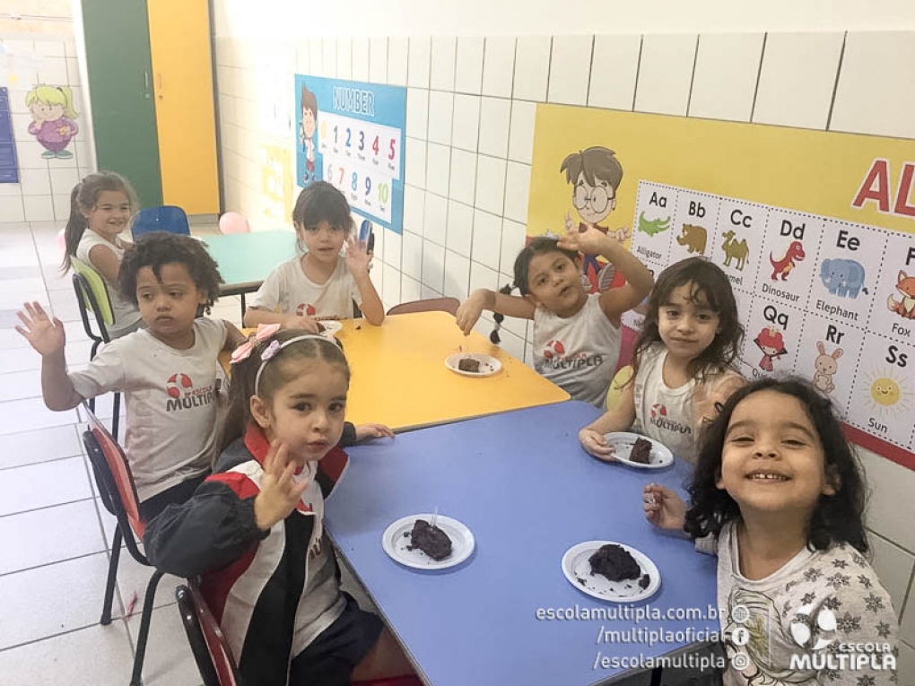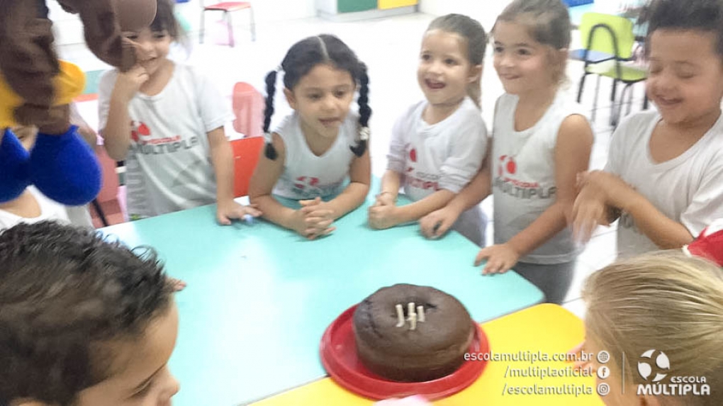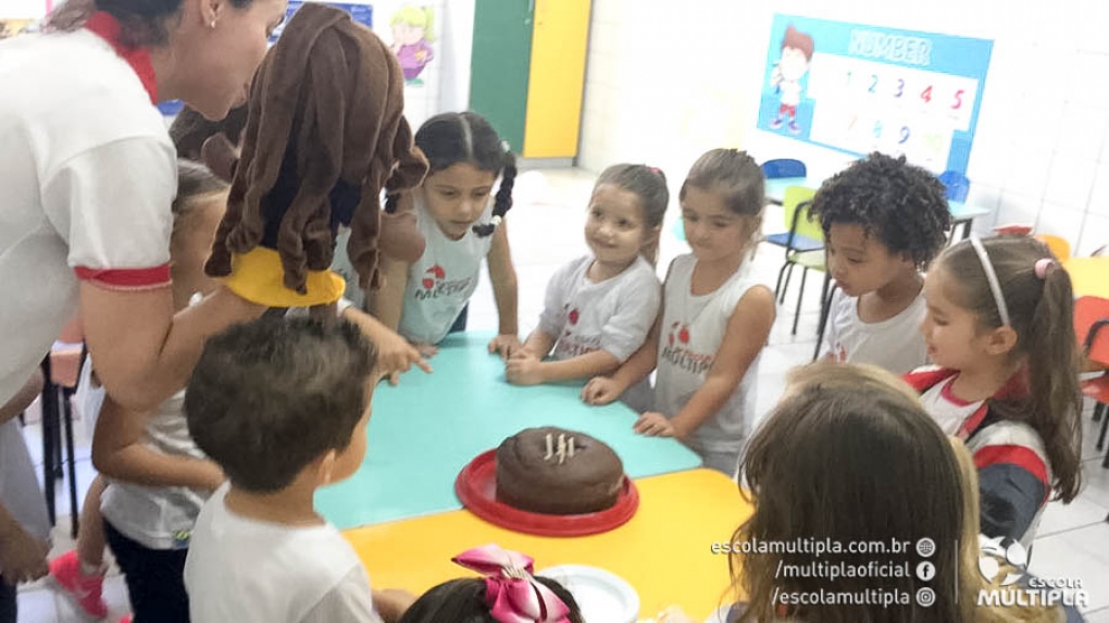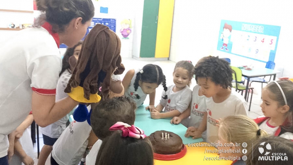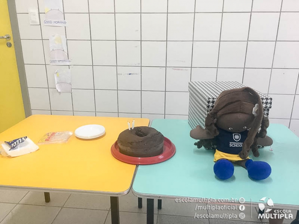 Ontem os alunos do Infantil 4 fizeram uma festa de aniversário surpresa para Linda, a mascote do programa bilingue. O bolo estava uma delicia e a festa foi super divertida!