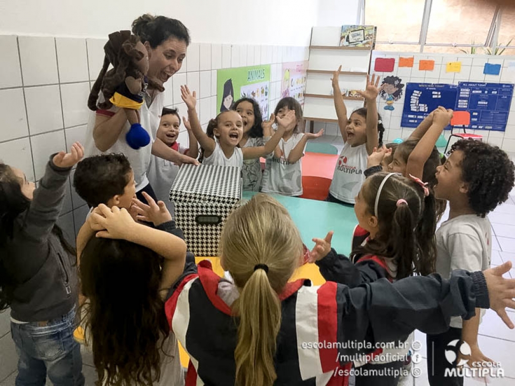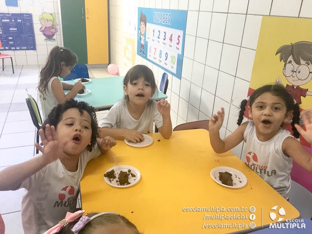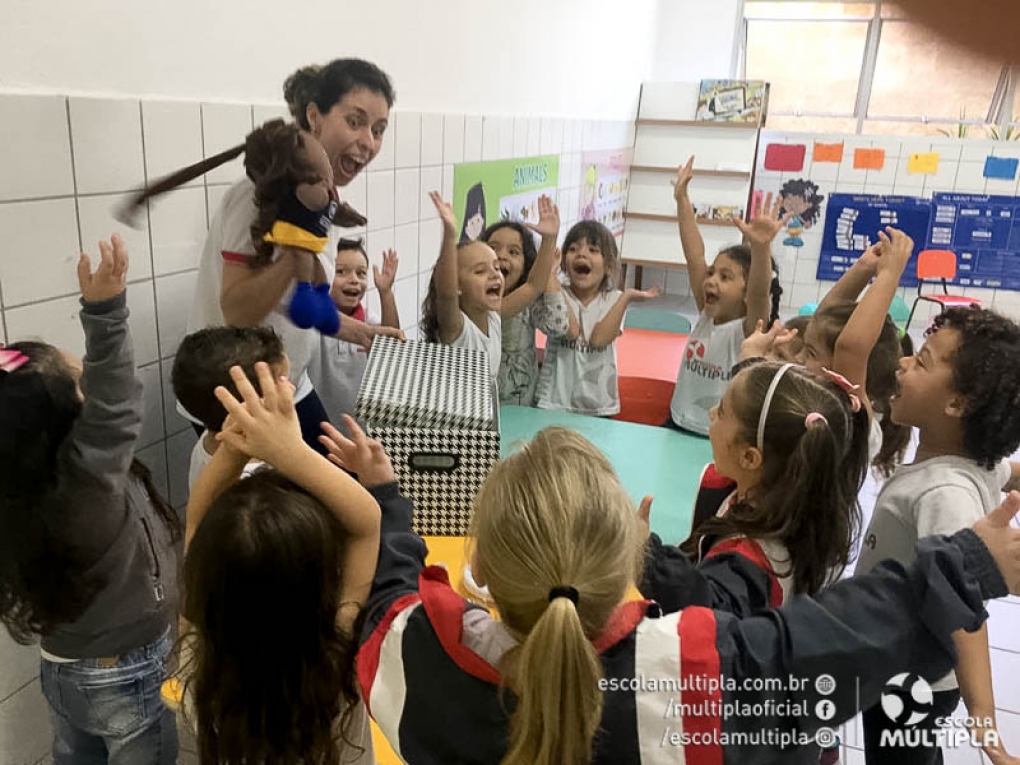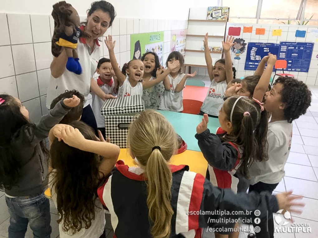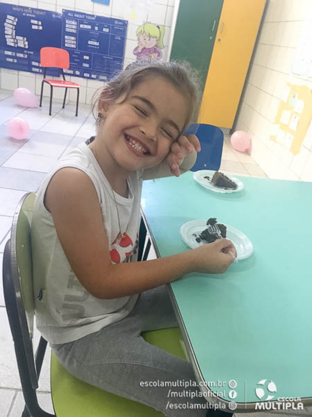 Ontem os alunos do Infantil 4 fizeram uma festa de aniversário surpresa para Linda, a mascote do programa bilingue. O bolo estava uma delicia e a festa foi super divertida!