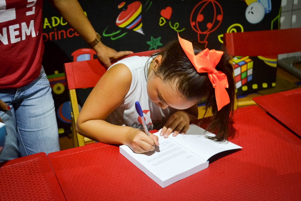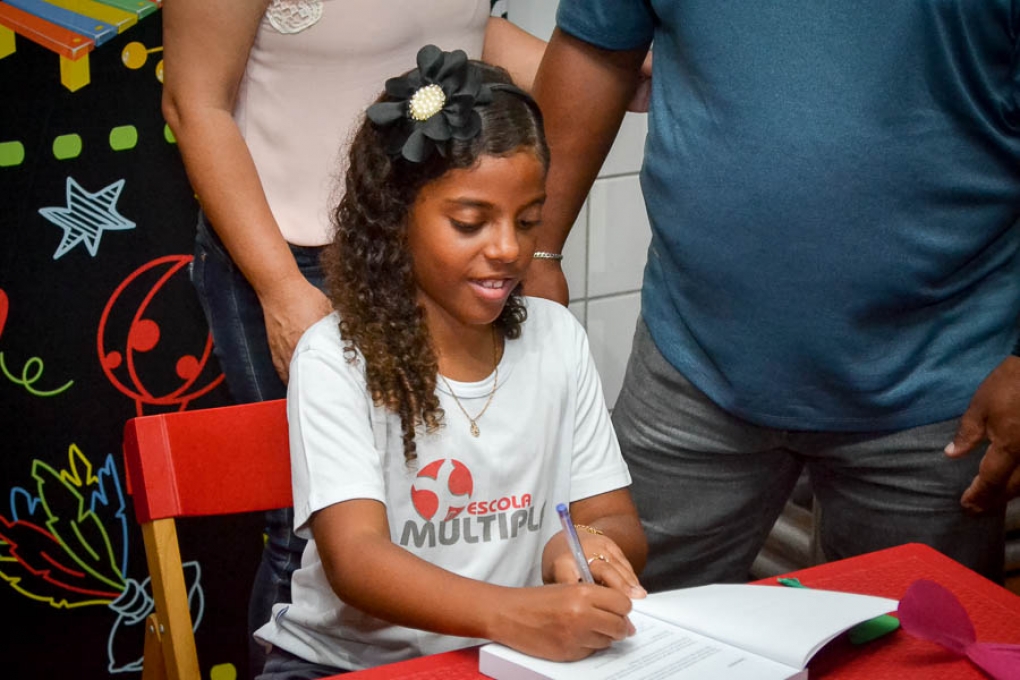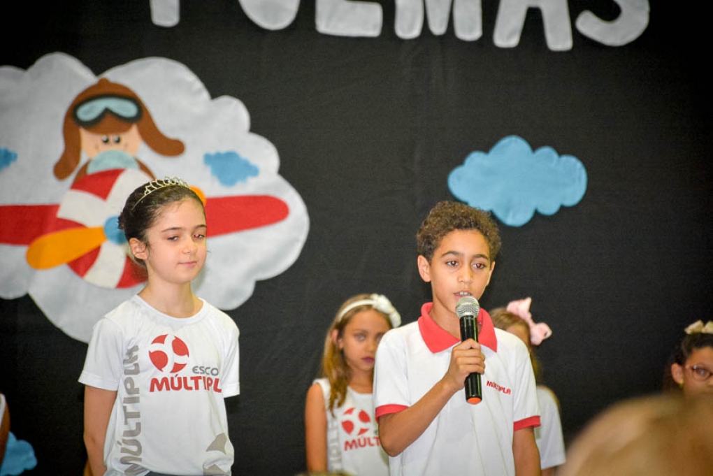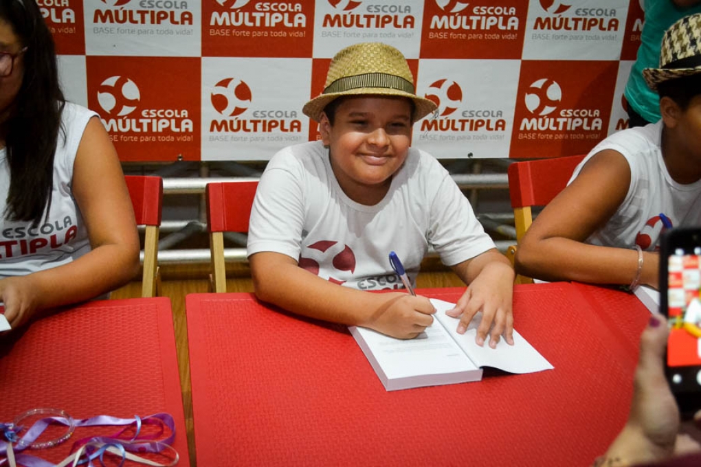 Ao final das apresentações de cada turma, aconteceu a tão esperada noite de autógrafos do livro “Múltiplos Poemas – 3ª edição”, momento de muita emoção para os alunos e todos os presentes.