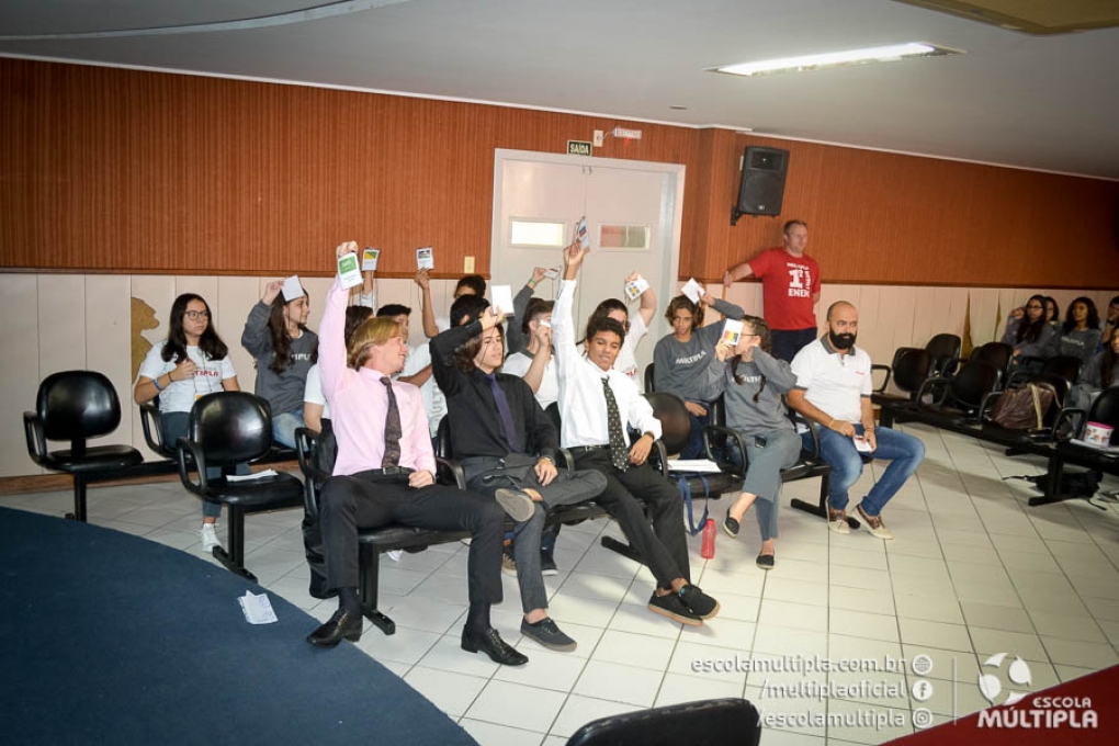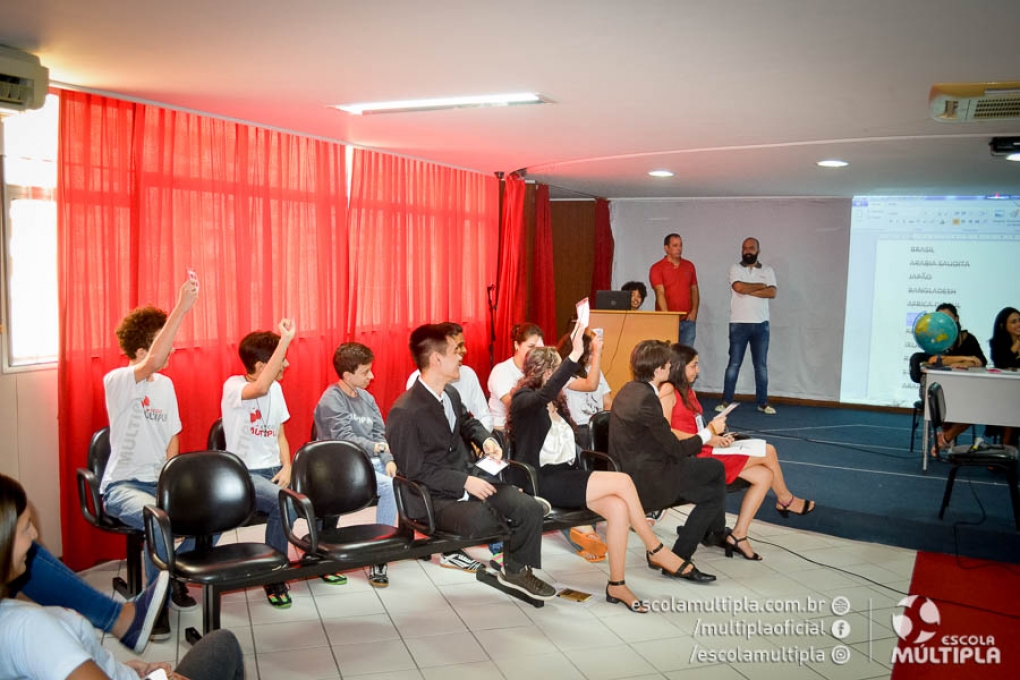 No dia 29/11 o grupo de alunos que representaram a nossa Escola na 16° MINI – ONU realizaram uma simulação para as turmas dos 9º ANOS e Ensino Médio.