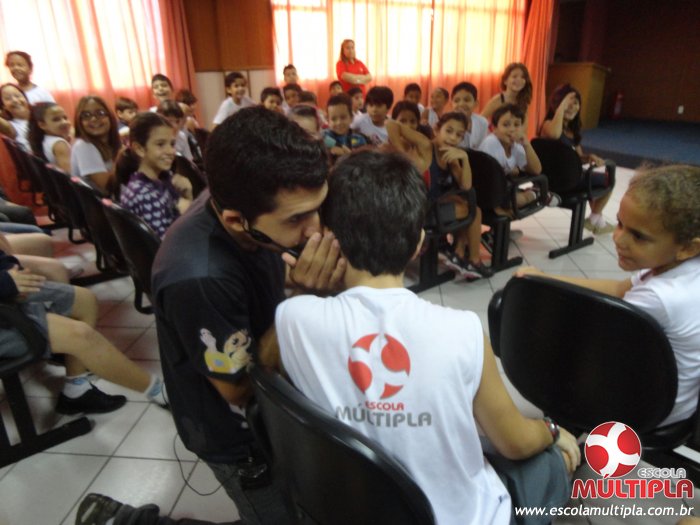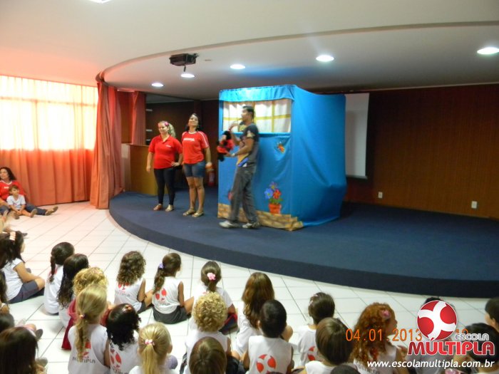 No dia 18 de abril, os alunos tiveram a oportunidade de assistirem as apresentações do Tio Diu, que além de contar histórias, também interagiu com os alunos através das brincadeiras dirigidas.