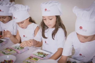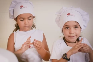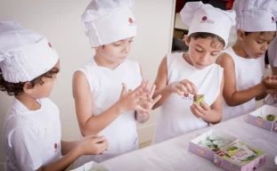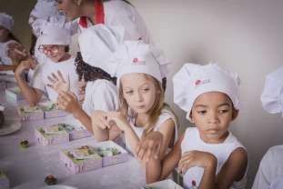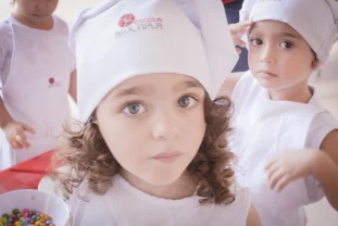 Nossos pequenos chefs colocaram literalmente as mãos na massa, aprendendo na prática uma deliciosa receita: Docinho de Páscoa.