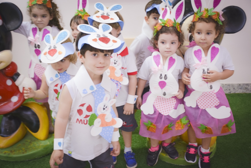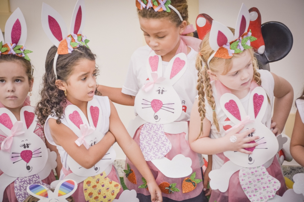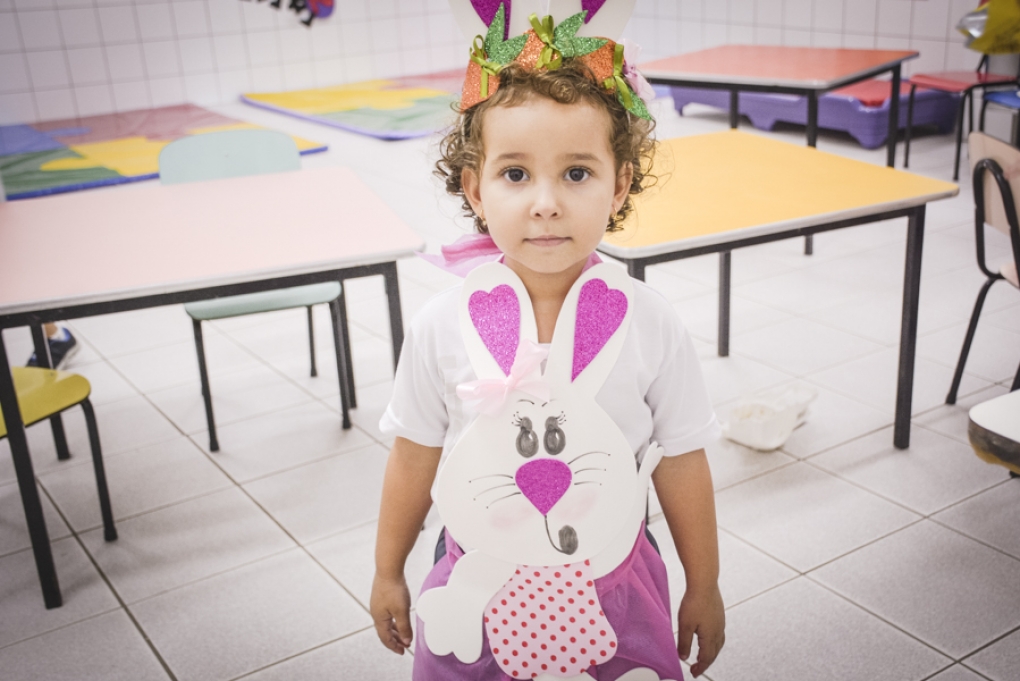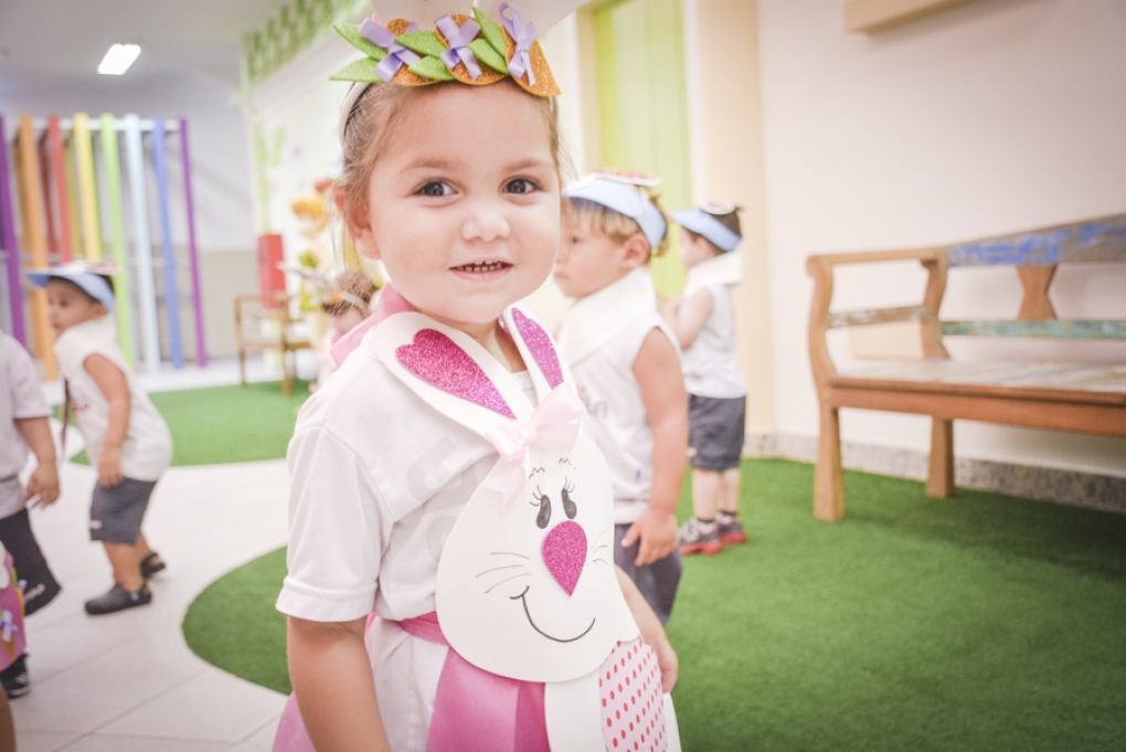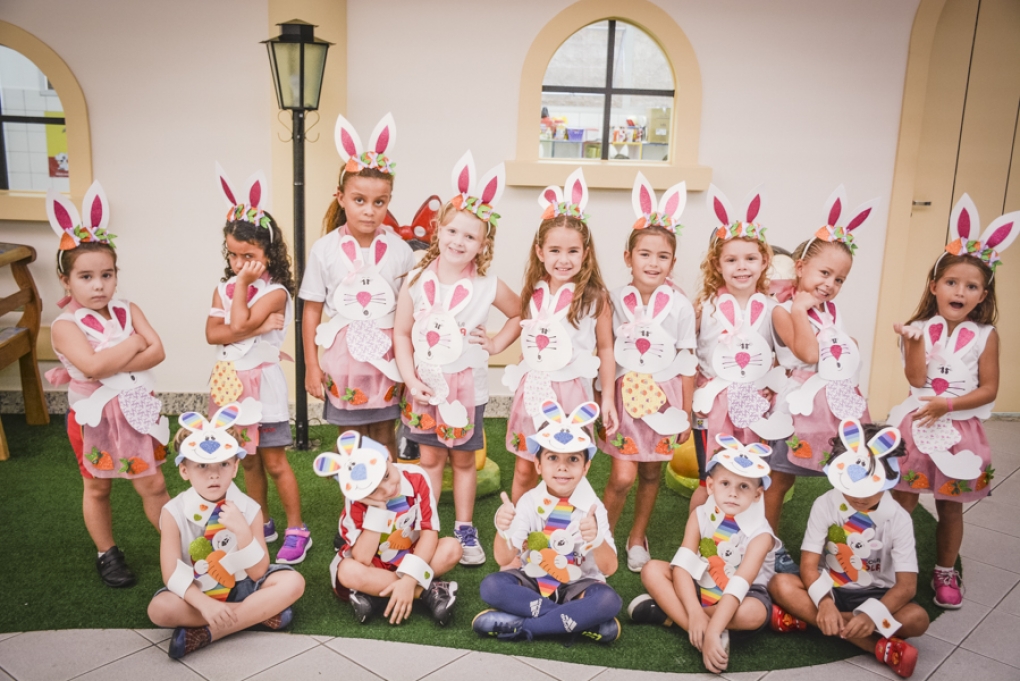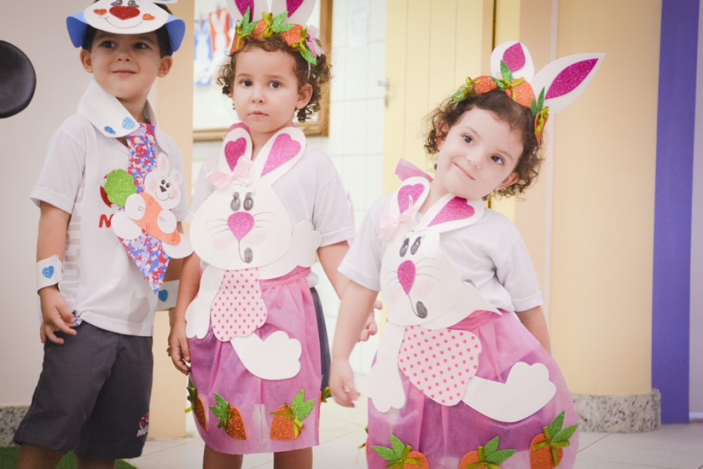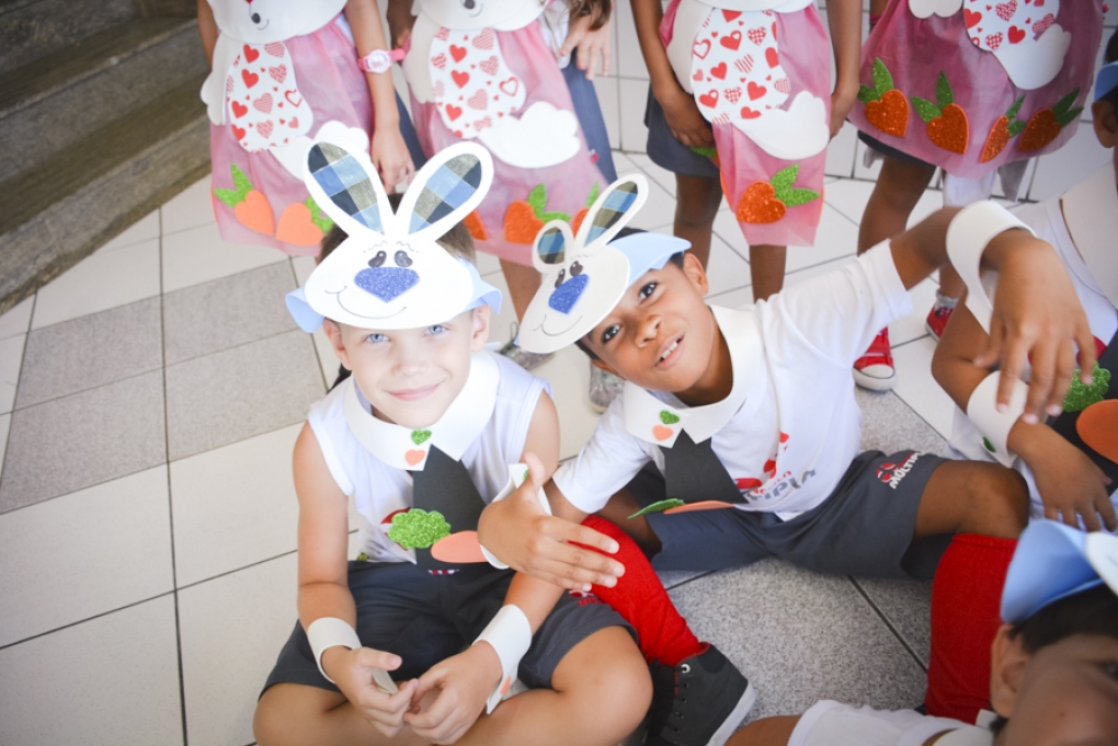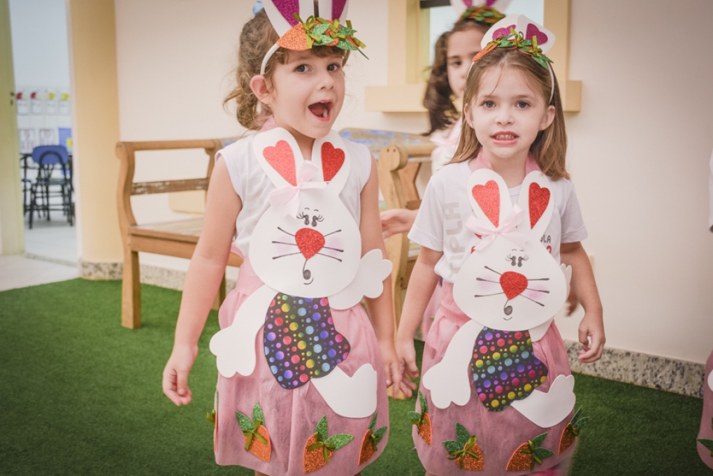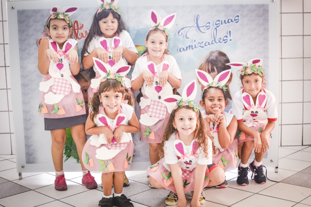 Com o objetivo de despertar a fantasia e a imaginação, entregamos um figurino de coelhinho para as crianças da Ed. Infantil aos 2º ANOS se divertirem.