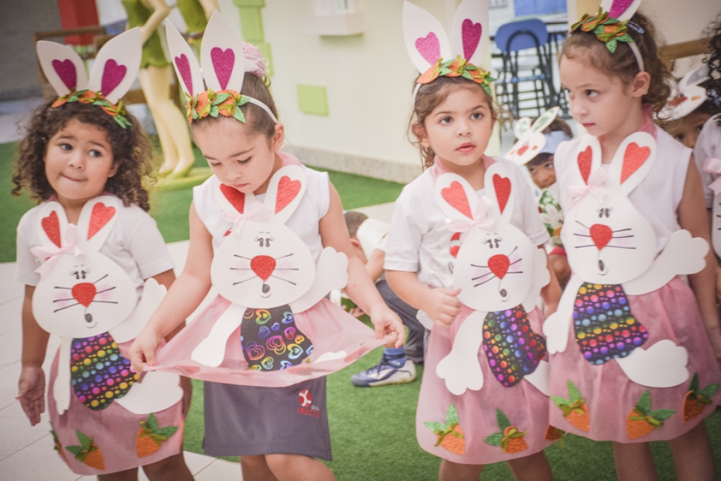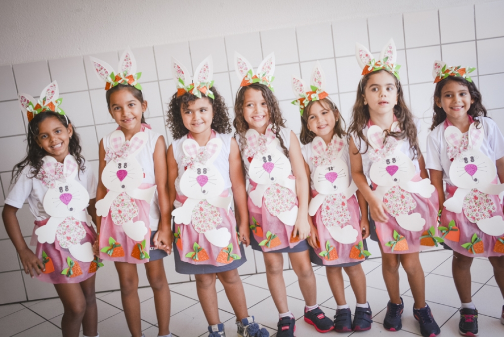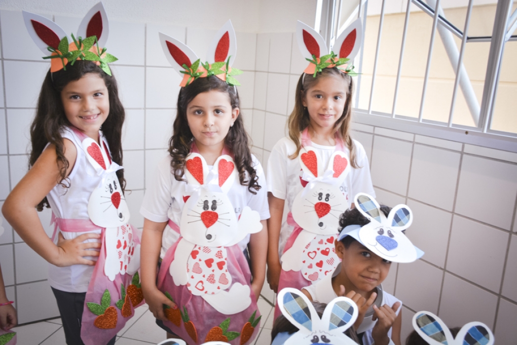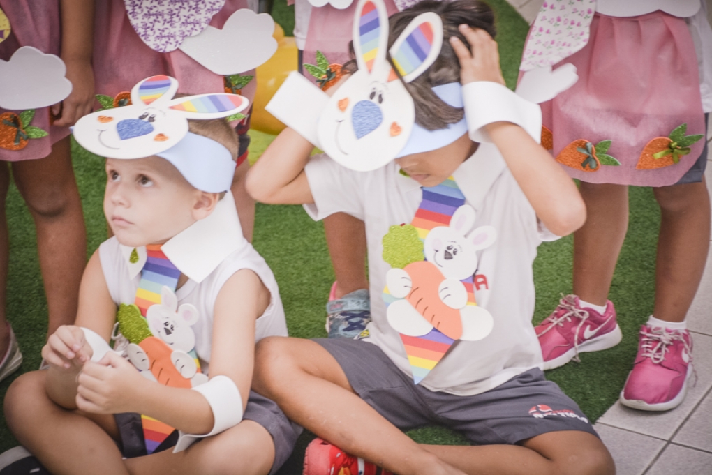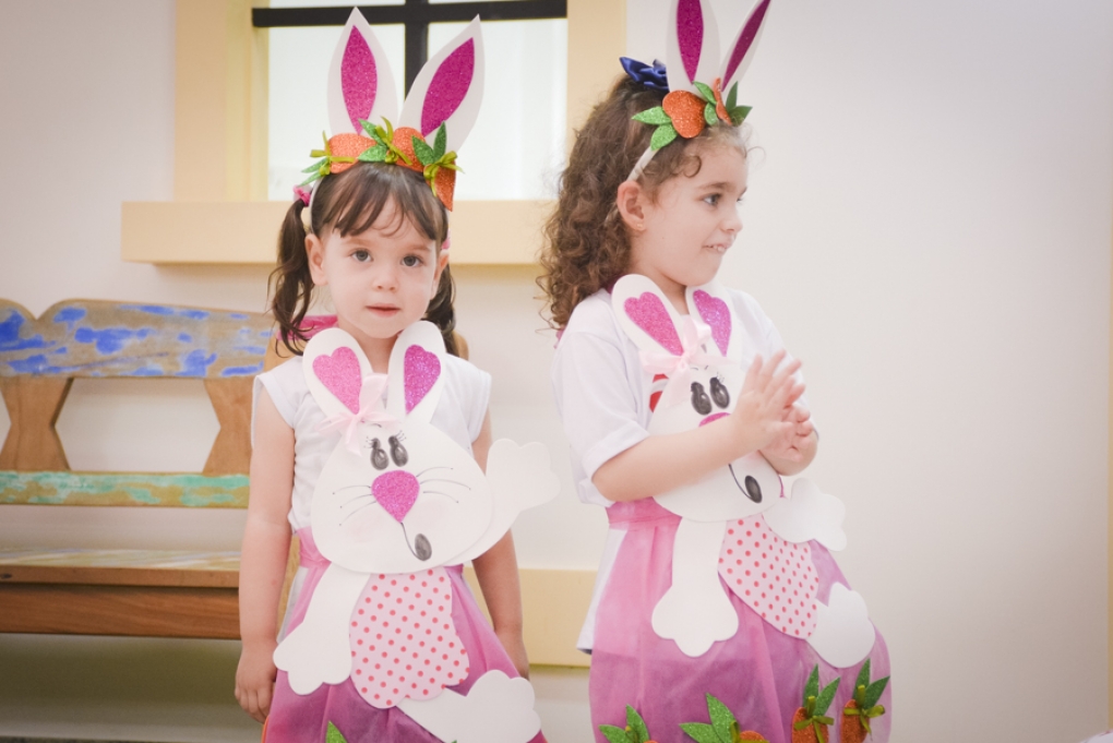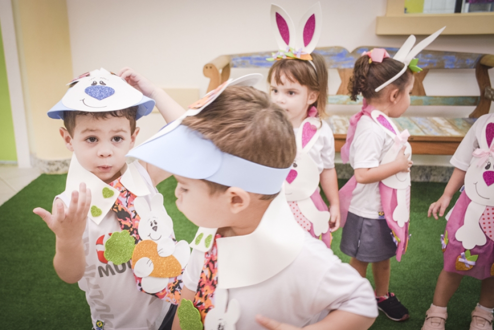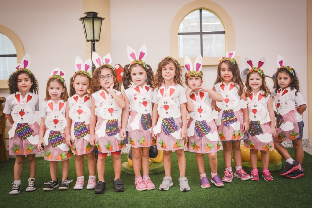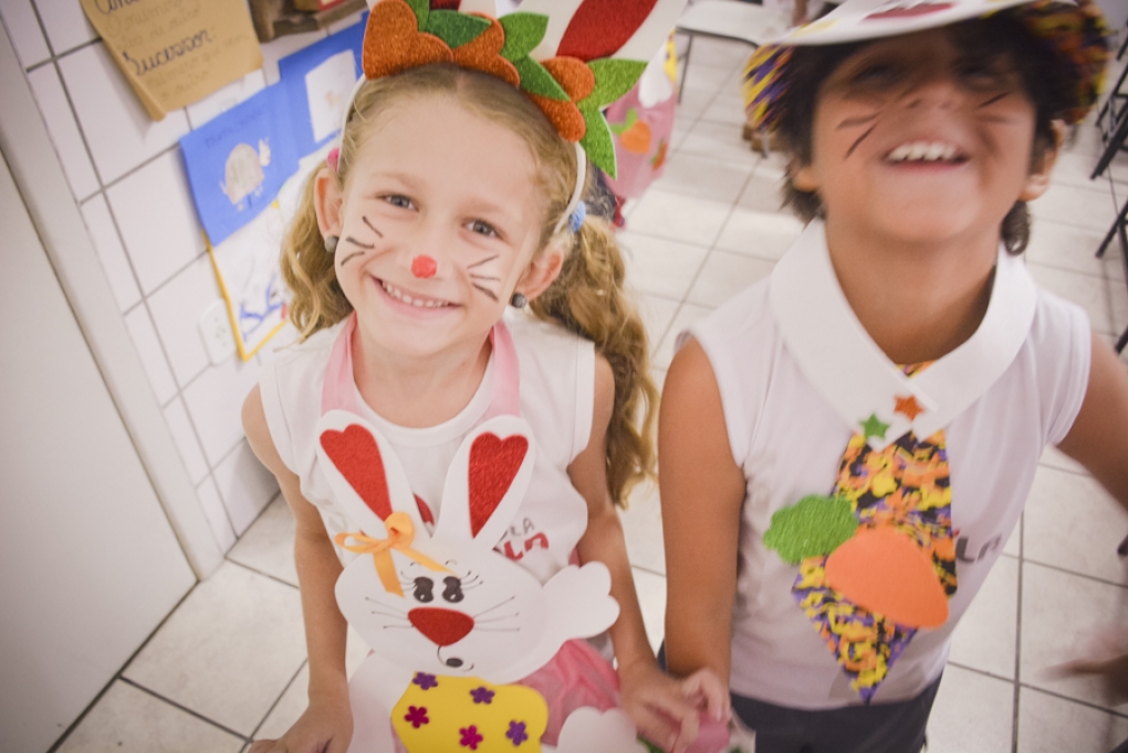 Com o objetivo de despertar a fantasia e a imaginação, entregamos um figurino de coelhinho para as crianças da Ed. Infantil aos 2º ANOS se divertirem.