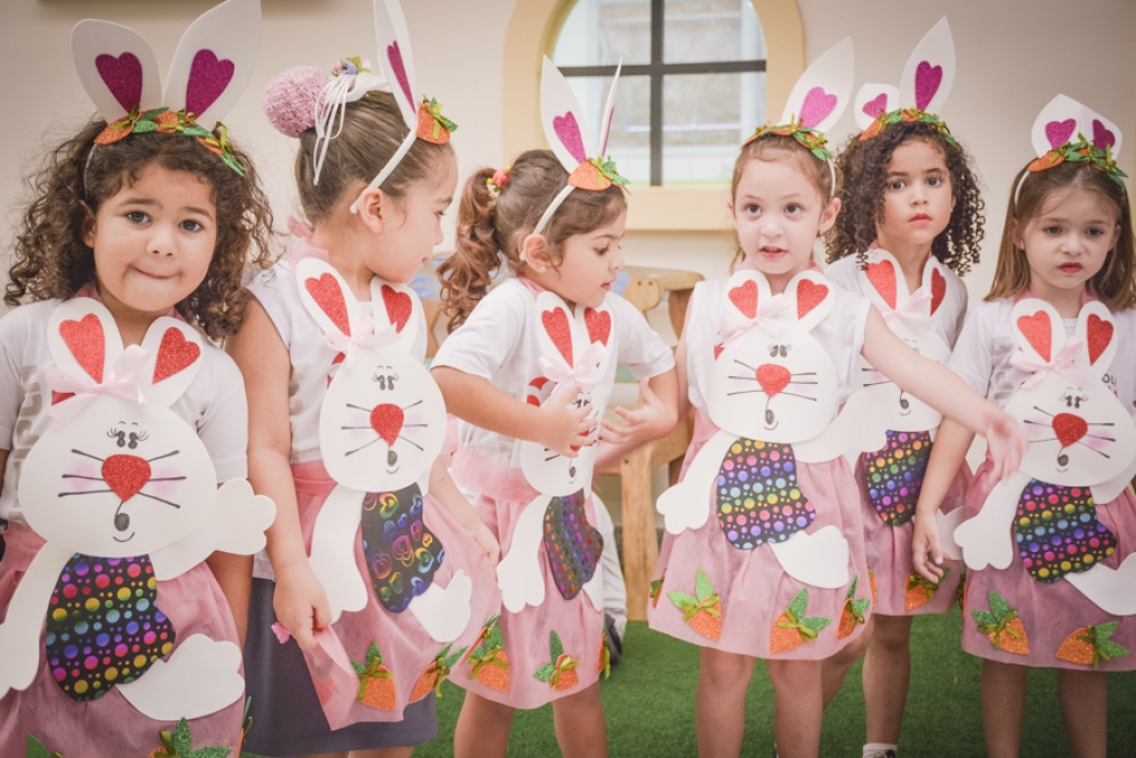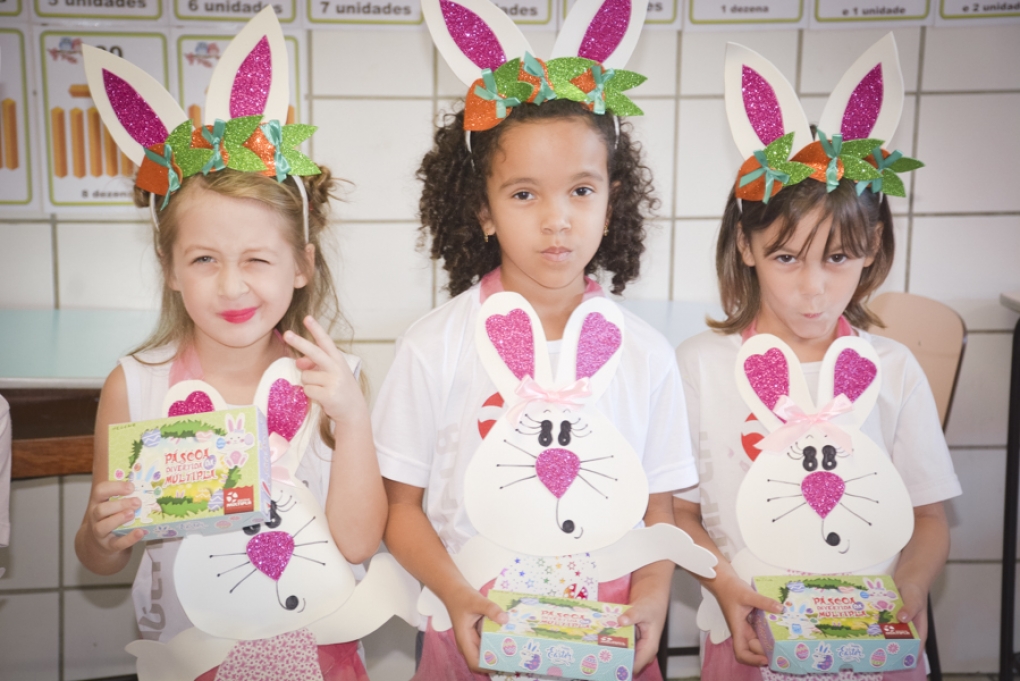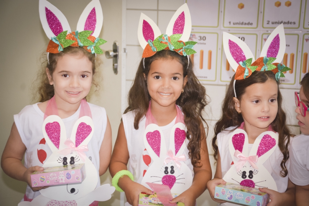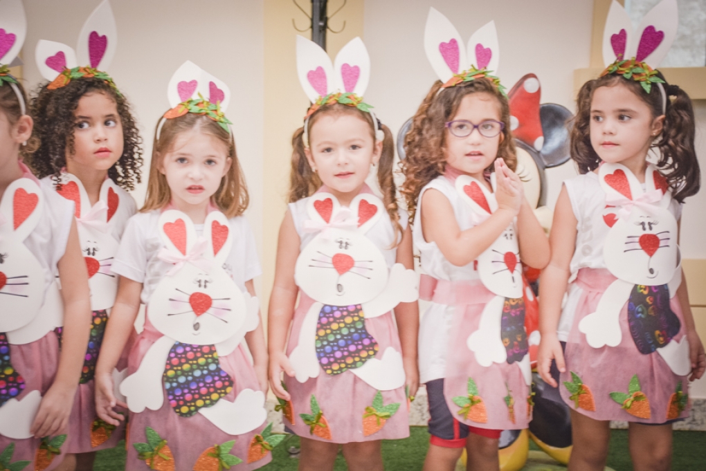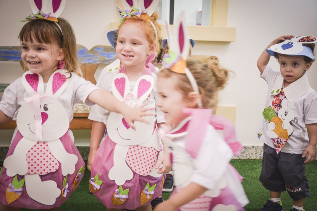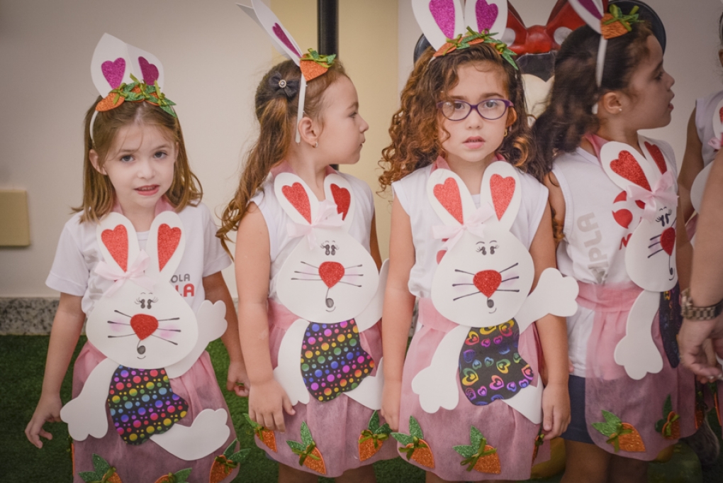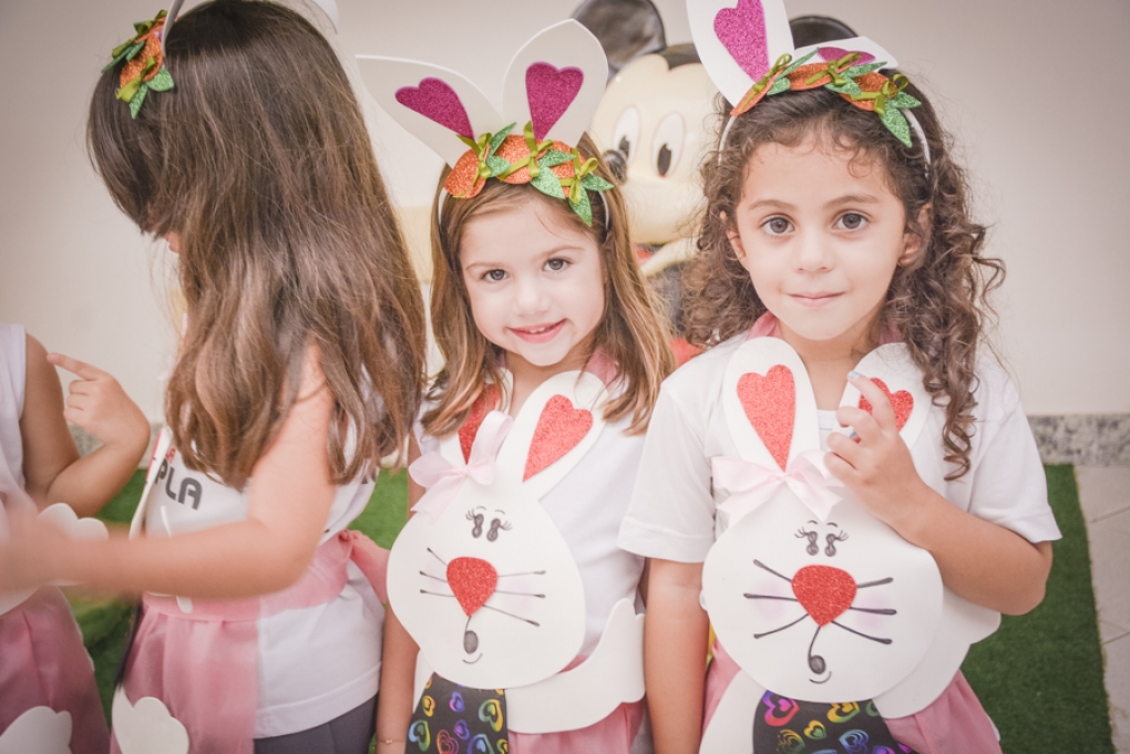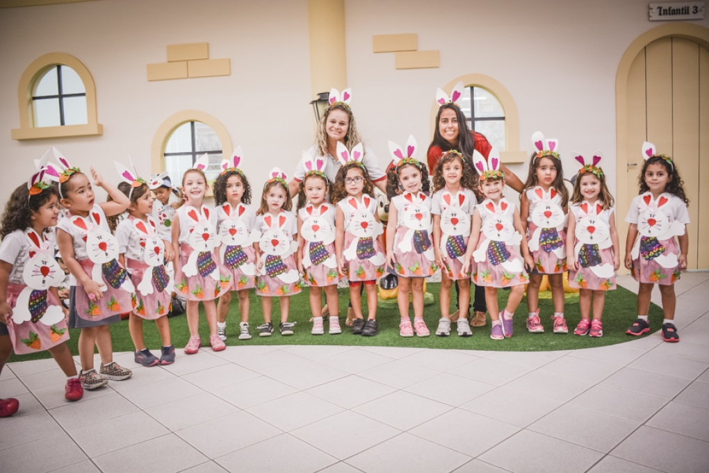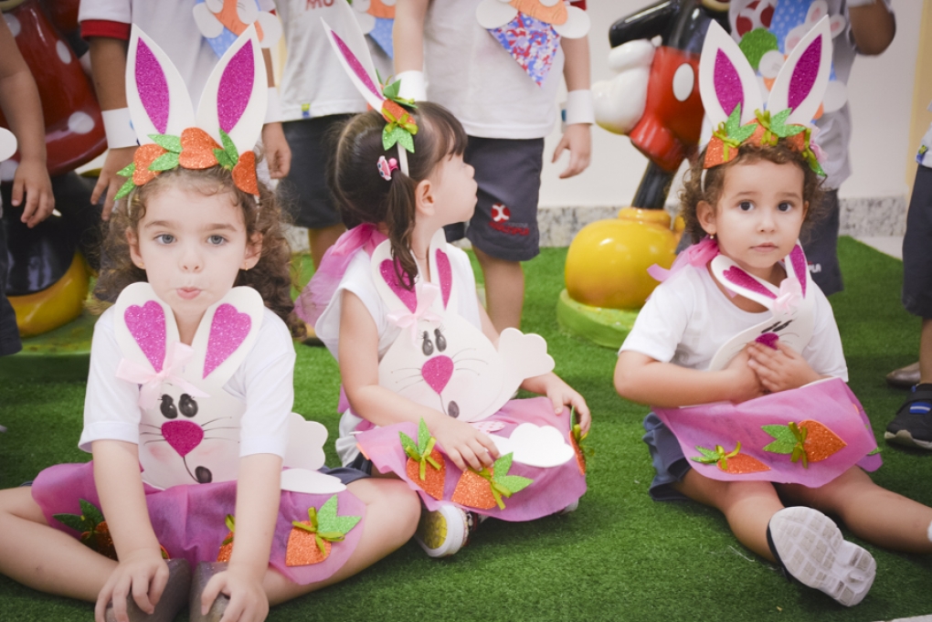 Com o objetivo de despertar a fantasia e a imaginação, entregamos um figurino de coelhinho para as crianças da Ed. Infantil aos 2º ANOS se divertirem.