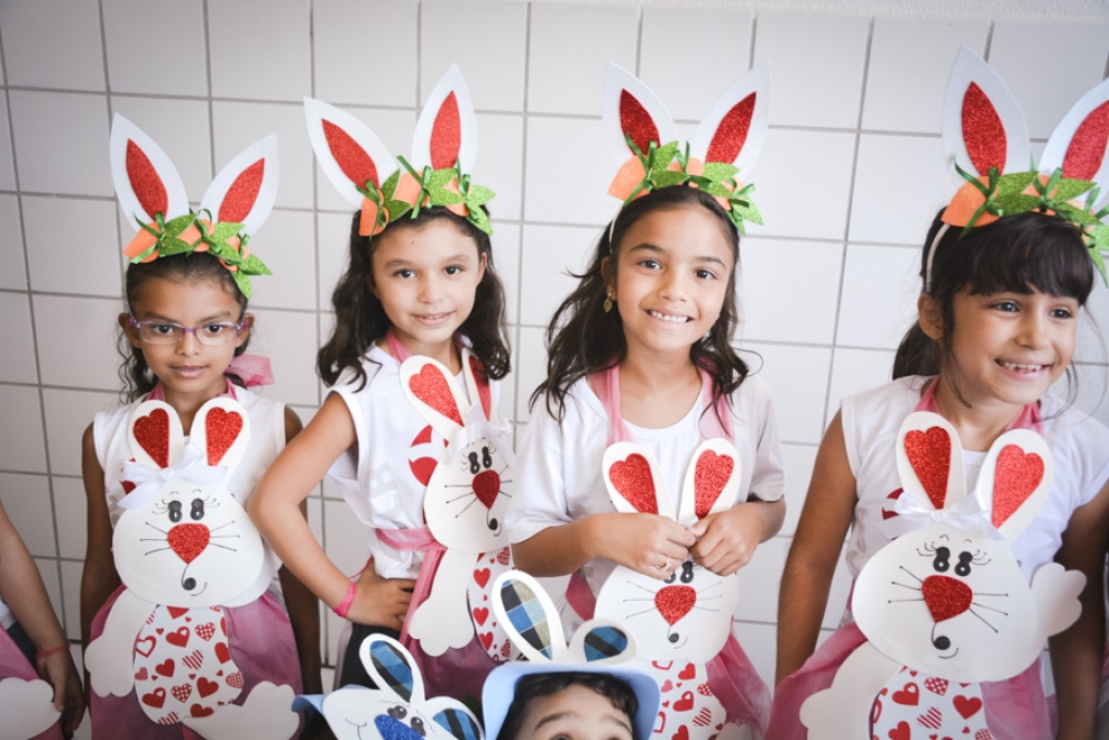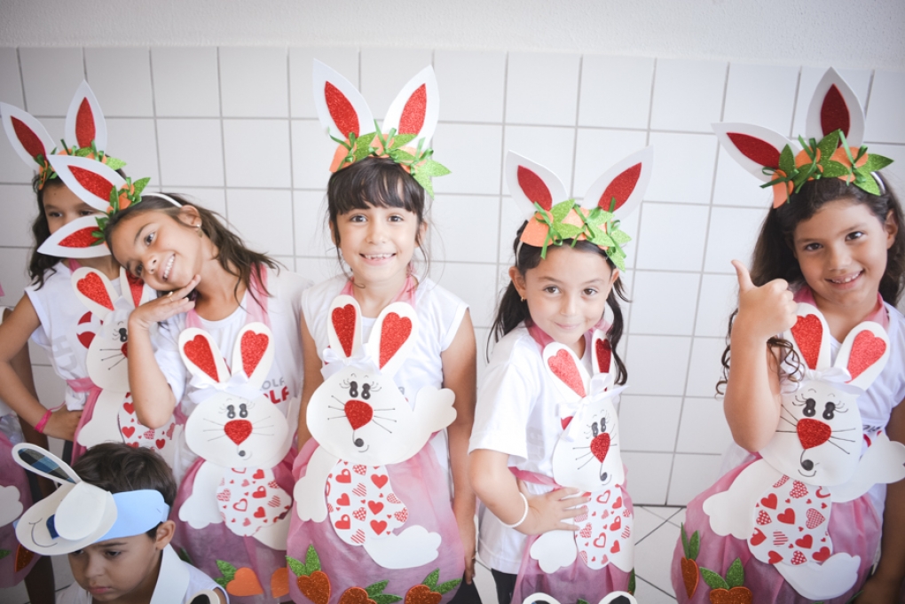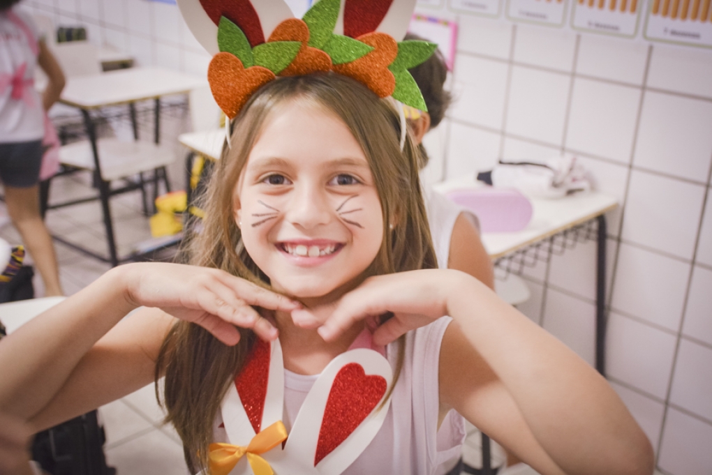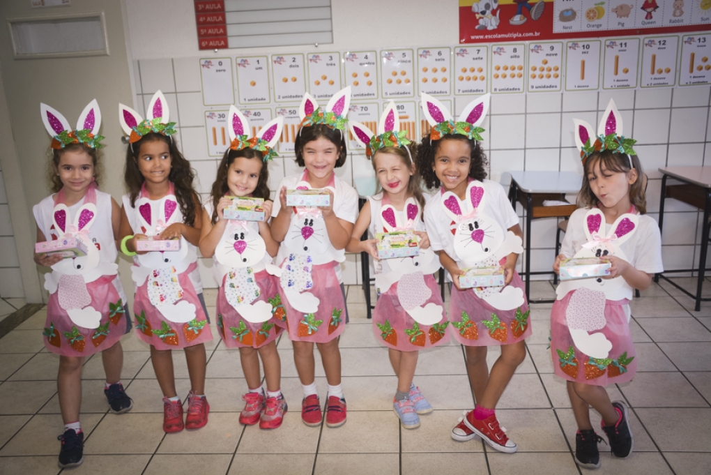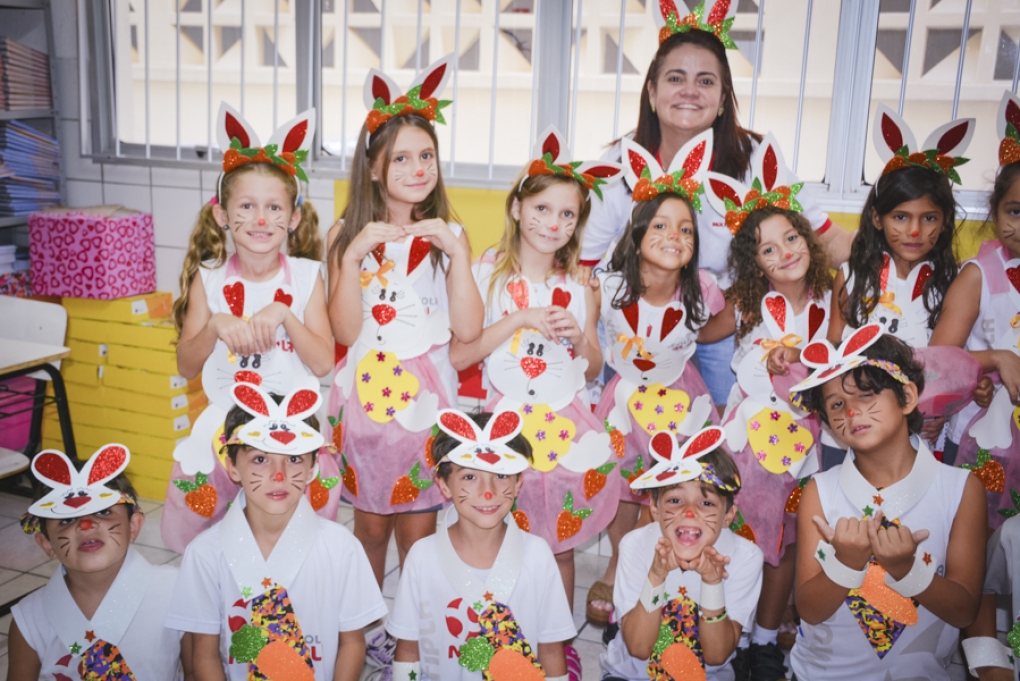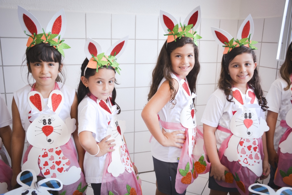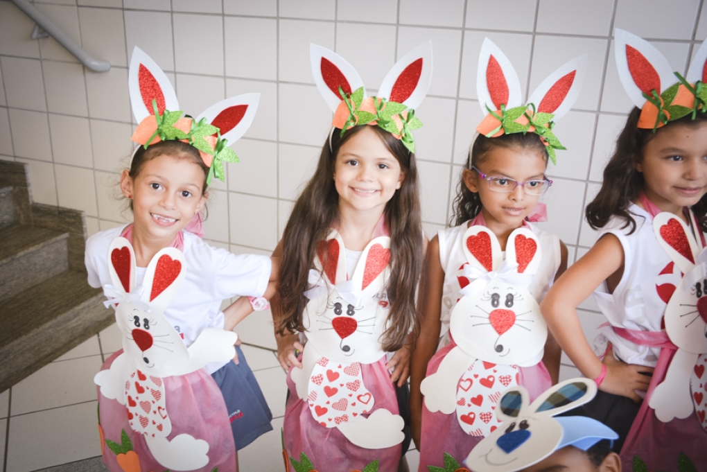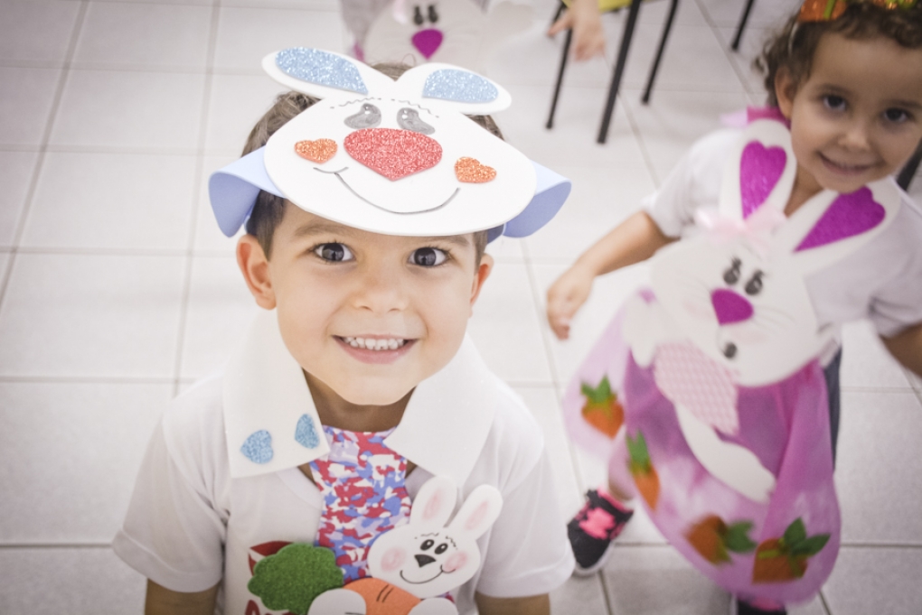 Com o objetivo de despertar a fantasia e a imaginação, entregamos um figurino de coelhinho para as crianças da Ed. Infantil aos 2º ANOS se divertirem.