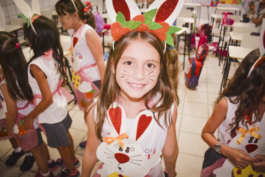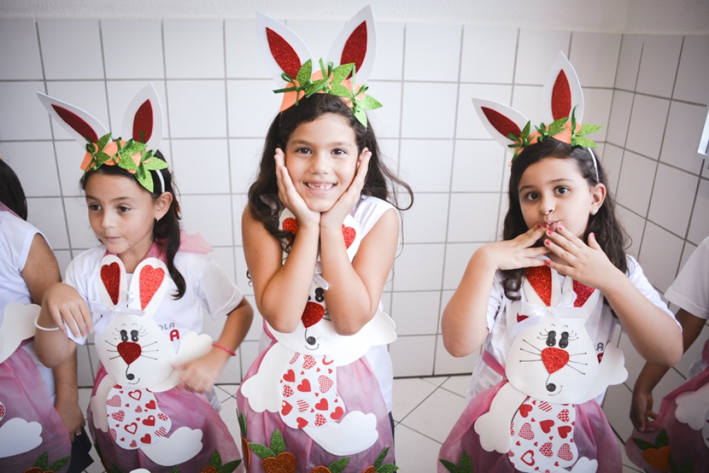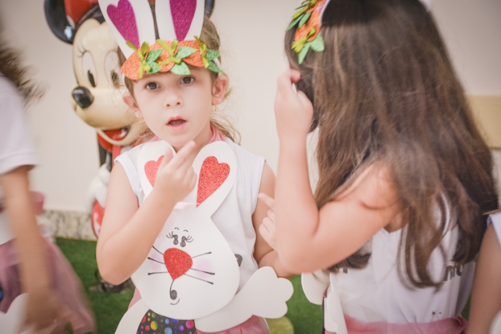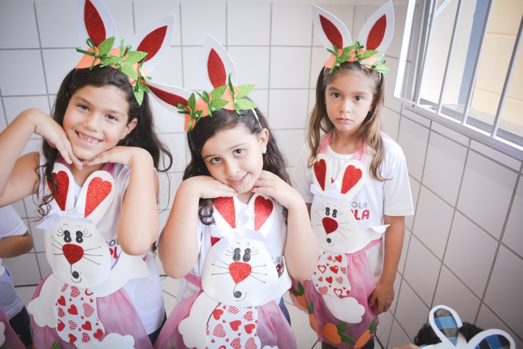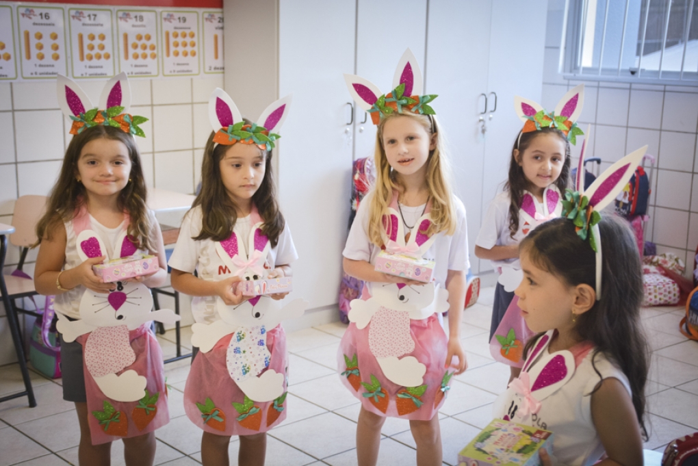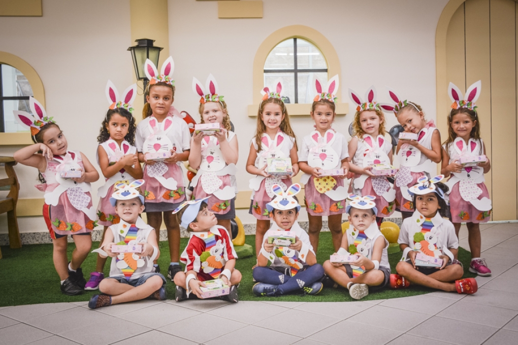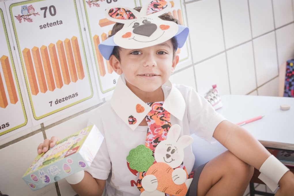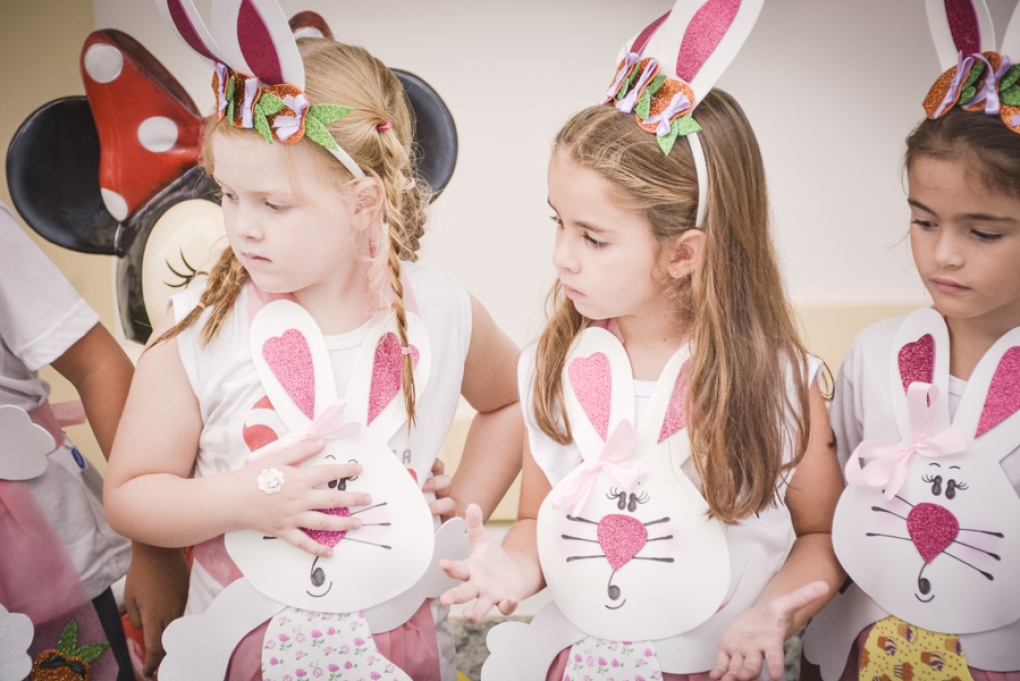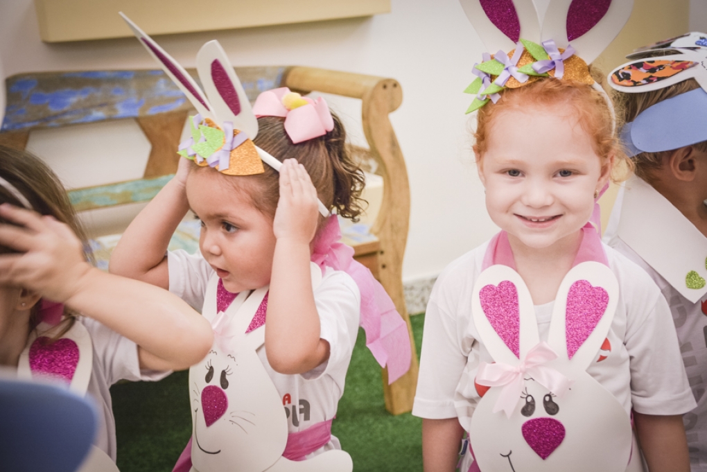 Com o objetivo de despertar a fantasia e a imaginação, entregamos um figurino de coelhinho para as crianças da Ed. Infantil aos 2º ANOS se divertirem.