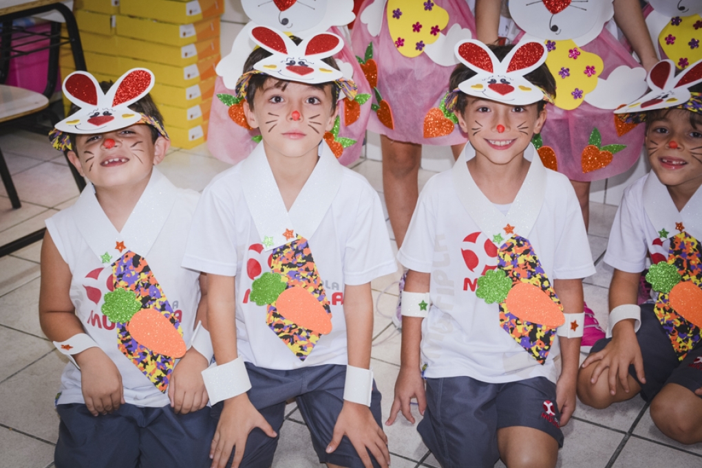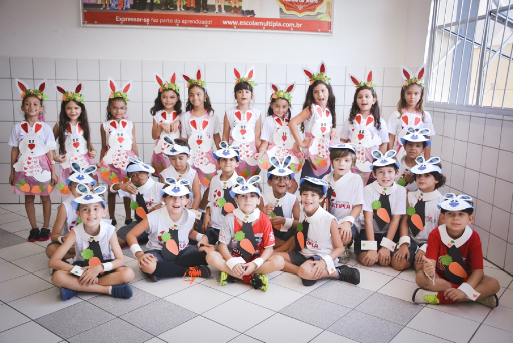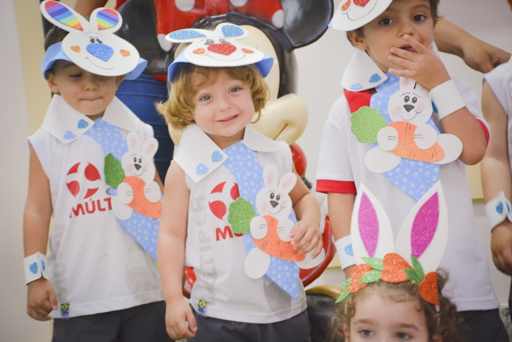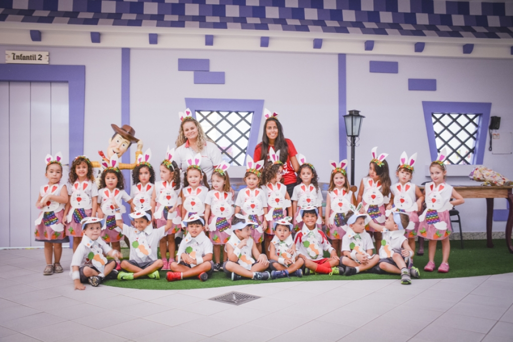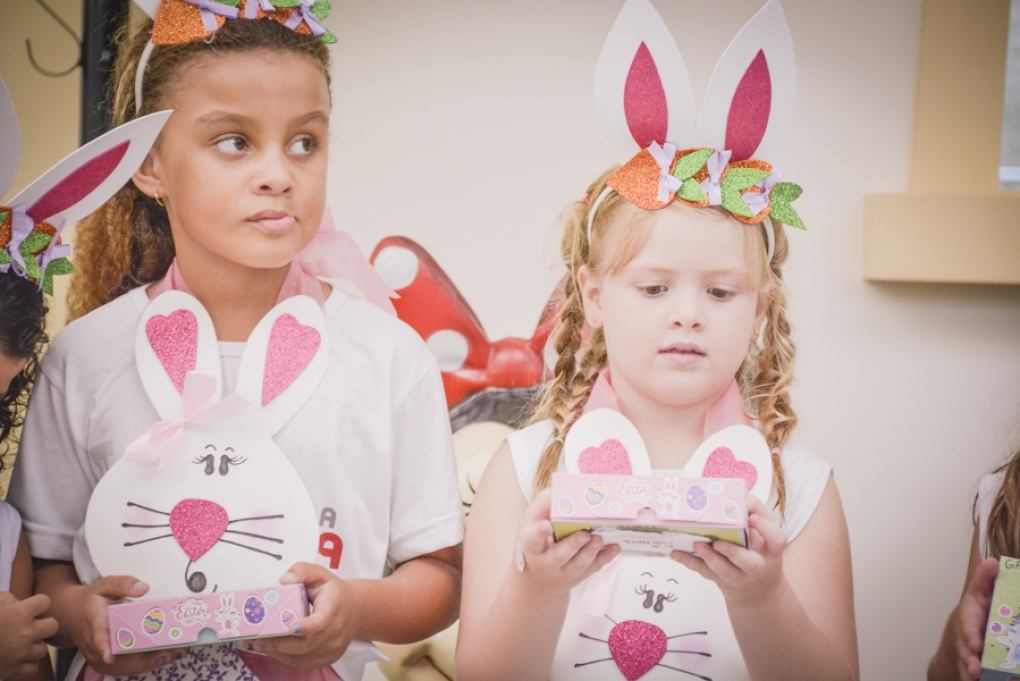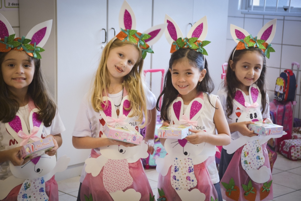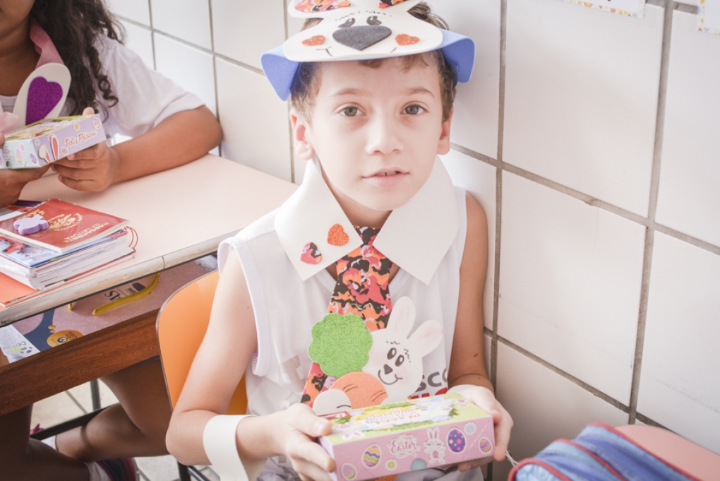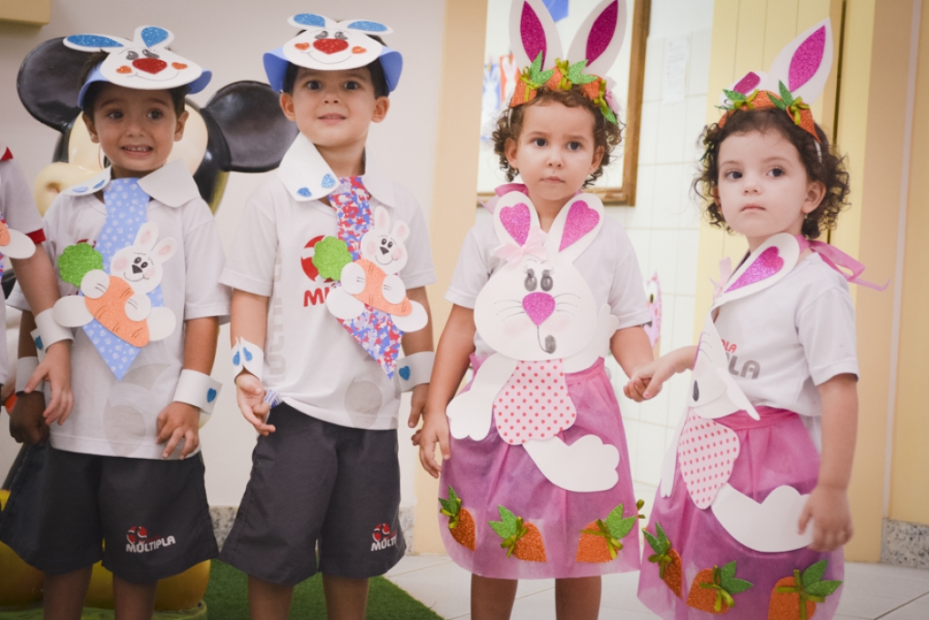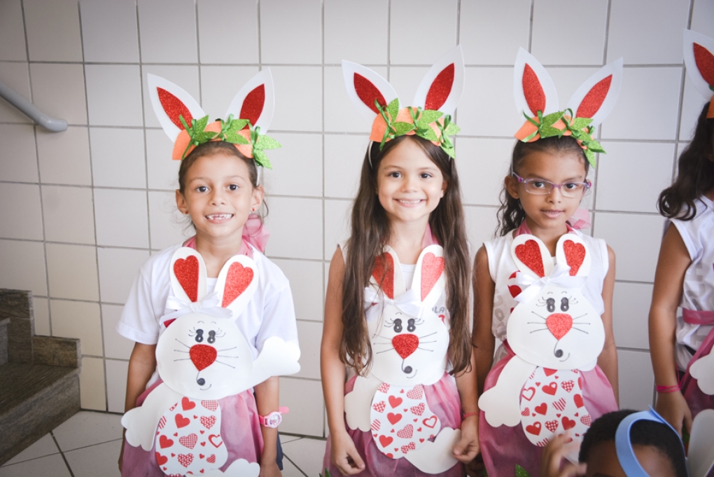 Com o objetivo de despertar a fantasia e a imaginação, entregamos um figurino de coelhinho para as crianças da Ed. Infantil aos 2º ANOS se divertirem.