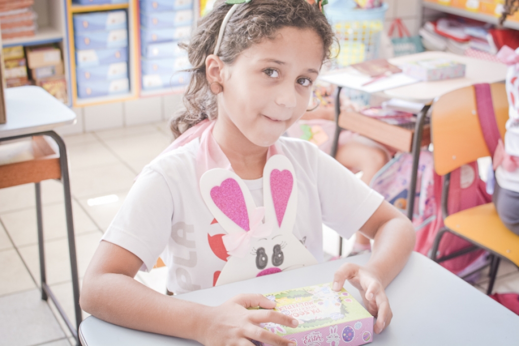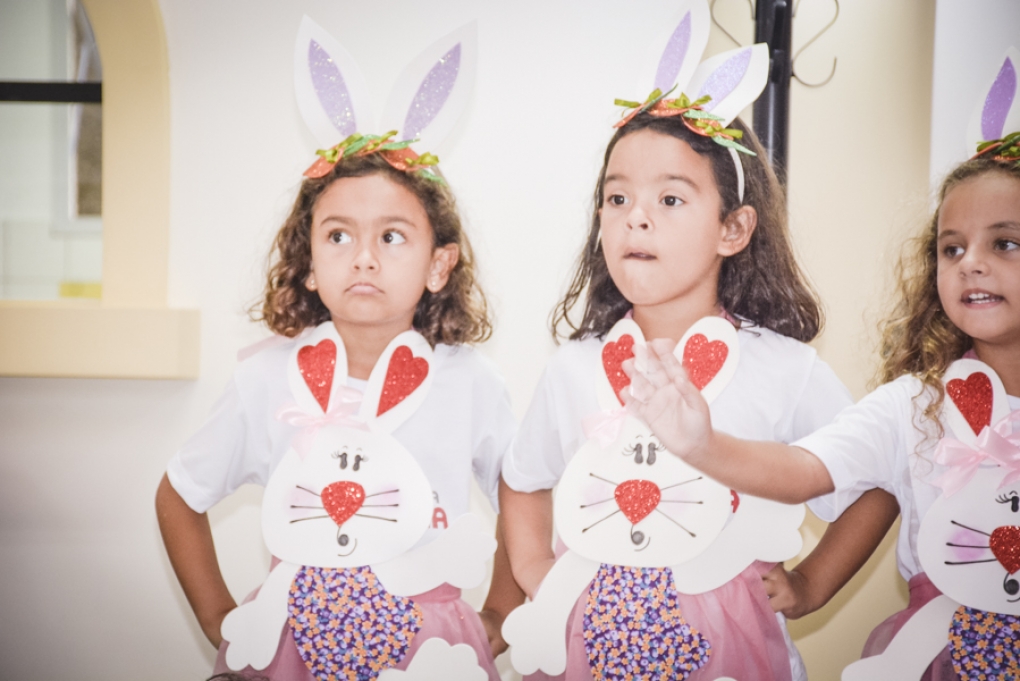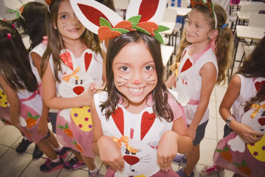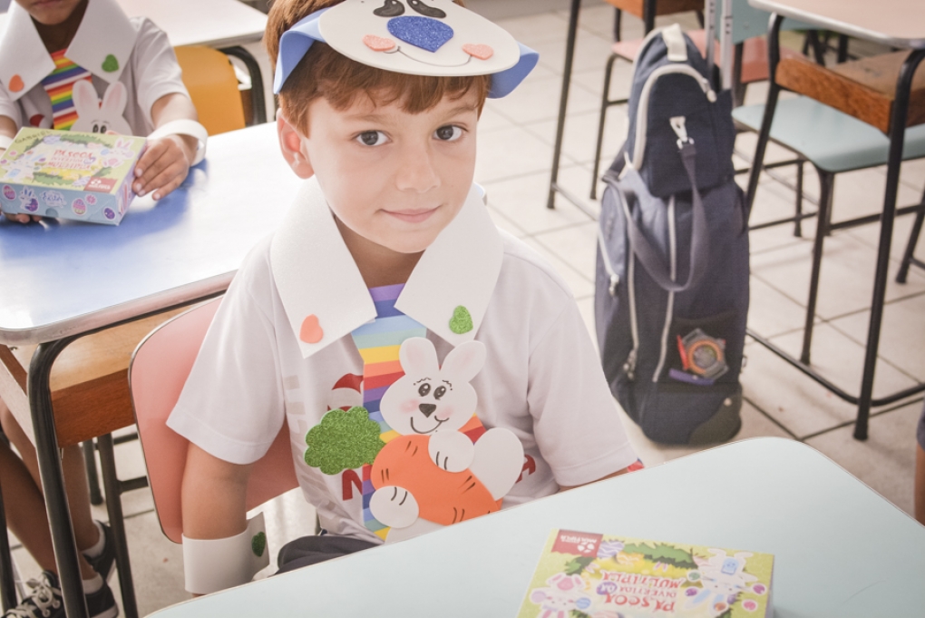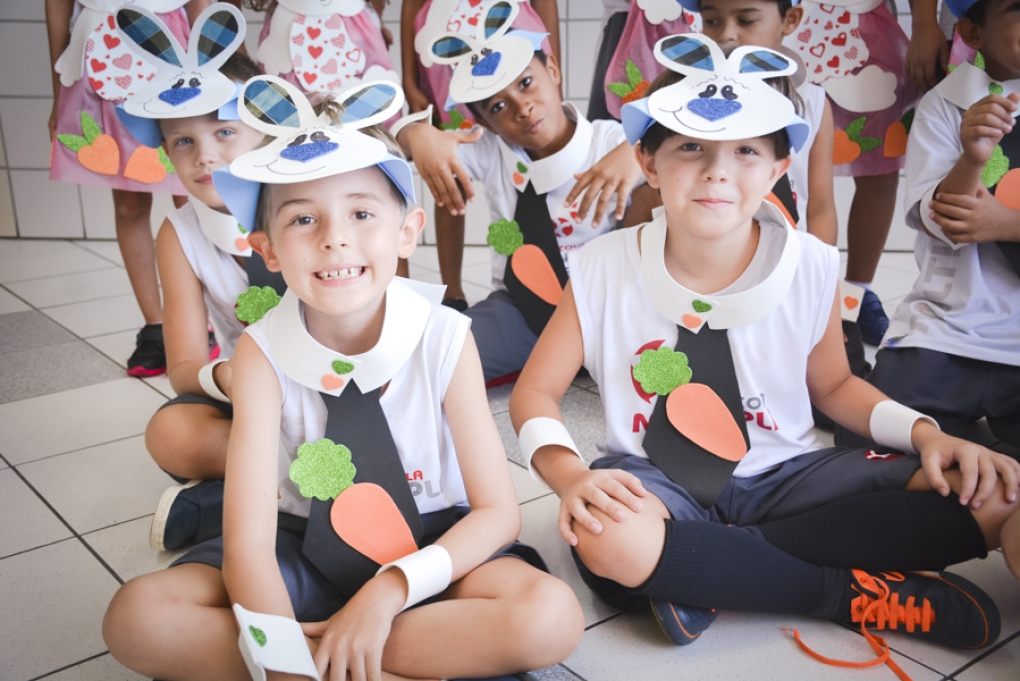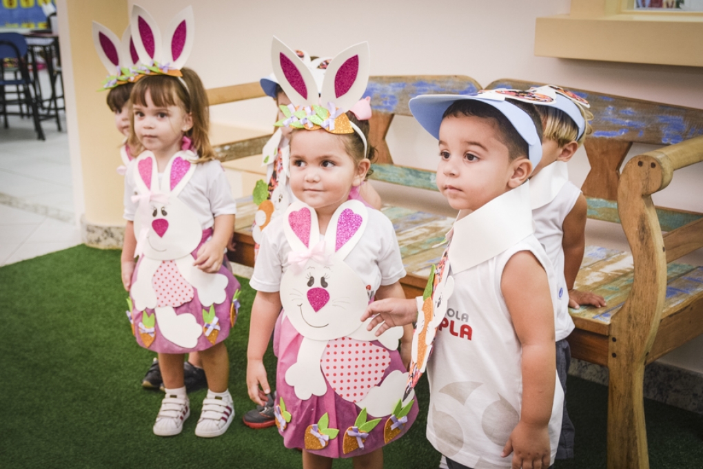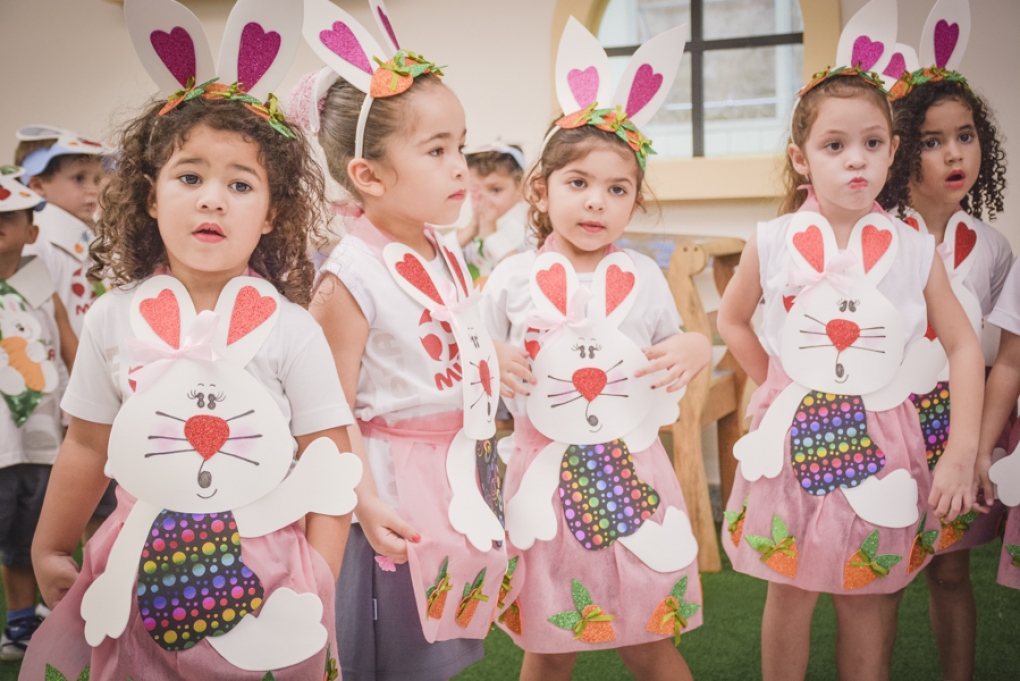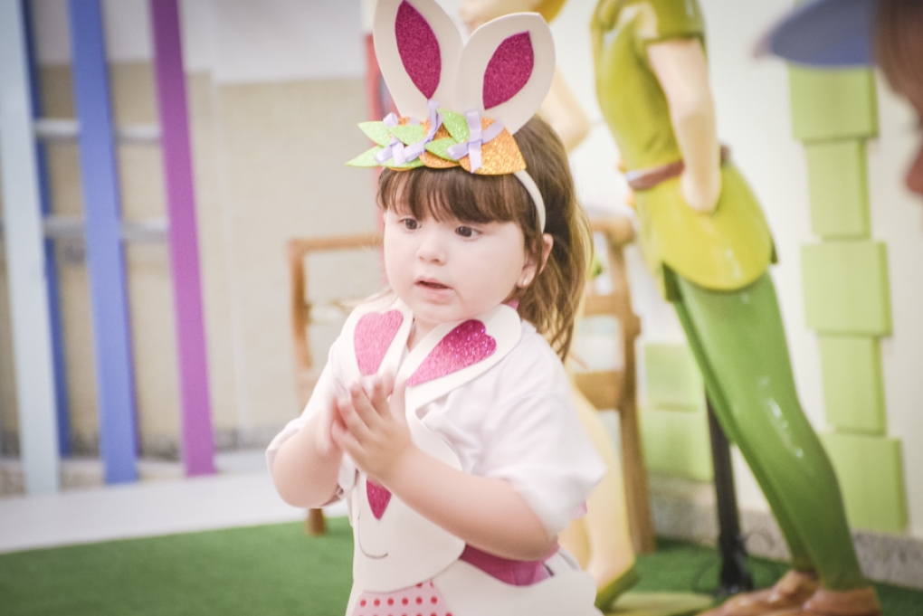 Com o objetivo de despertar a fantasia e a imaginação, entregamos um figurino de coelhinho para as crianças da Ed. Infantil aos 2º ANOS se divertirem.