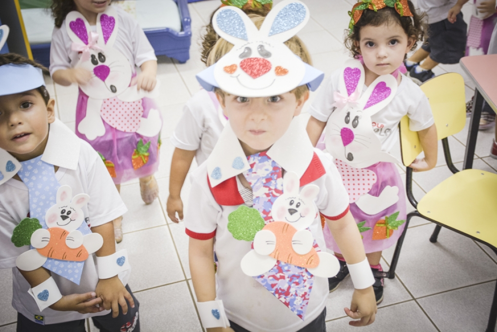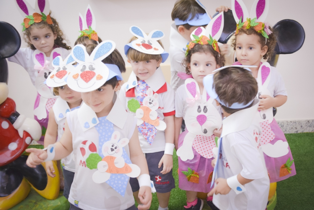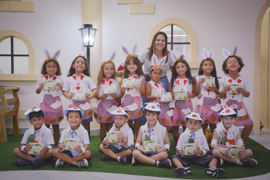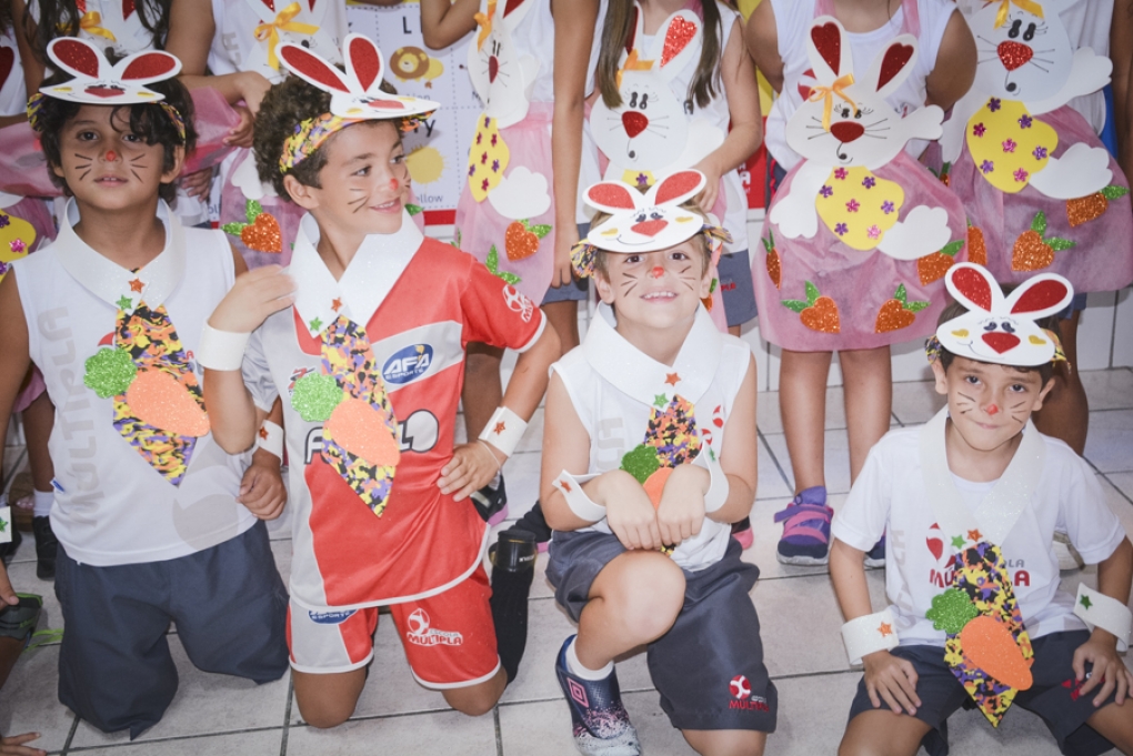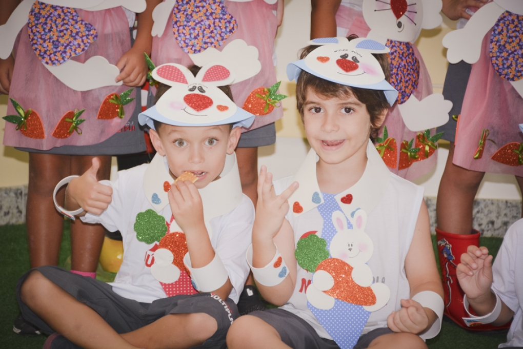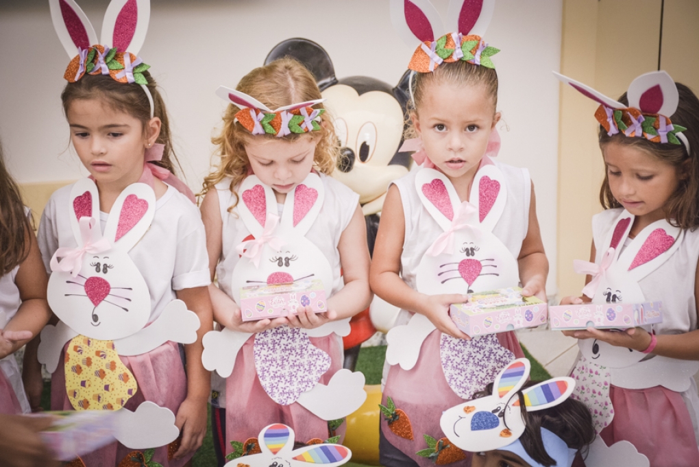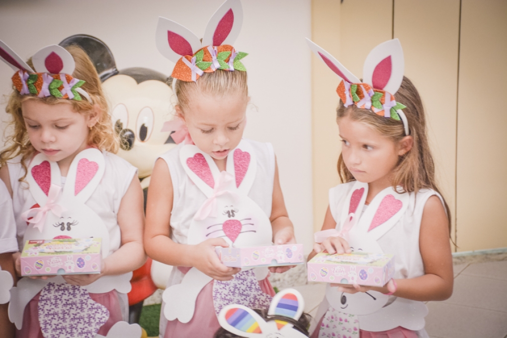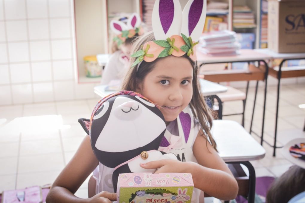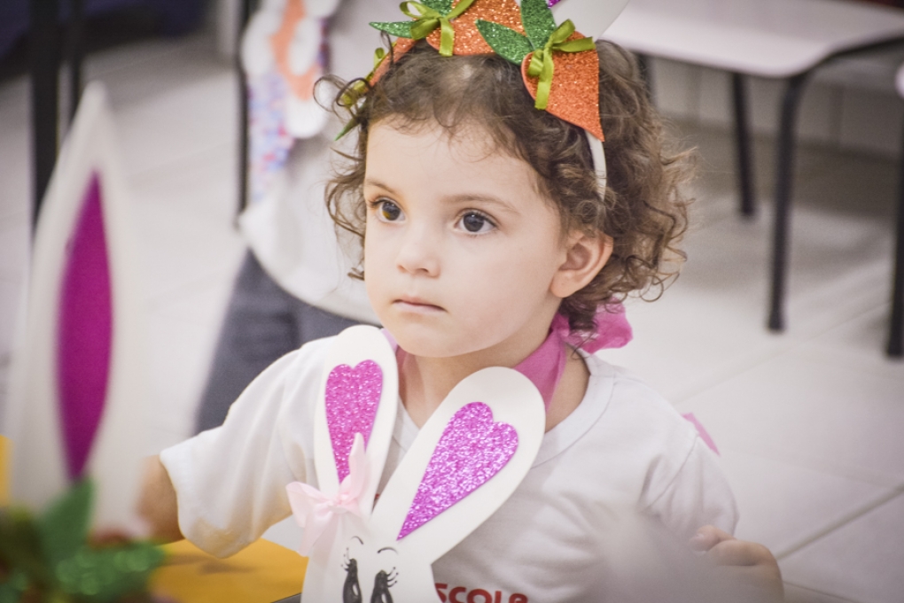 Com o objetivo de despertar a fantasia e a imaginação, entregamos um figurino de coelhinho para as crianças da Ed. Infantil aos 2º ANOS se divertirem.