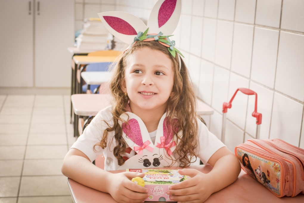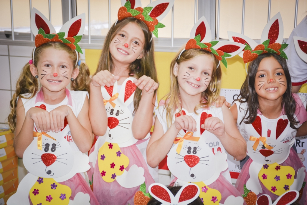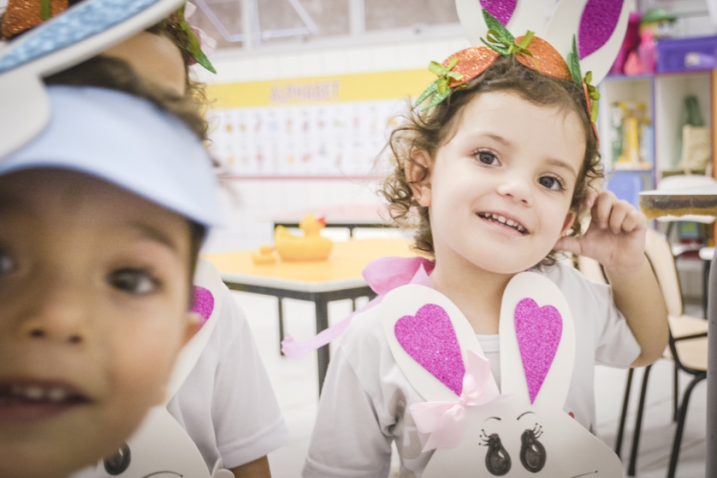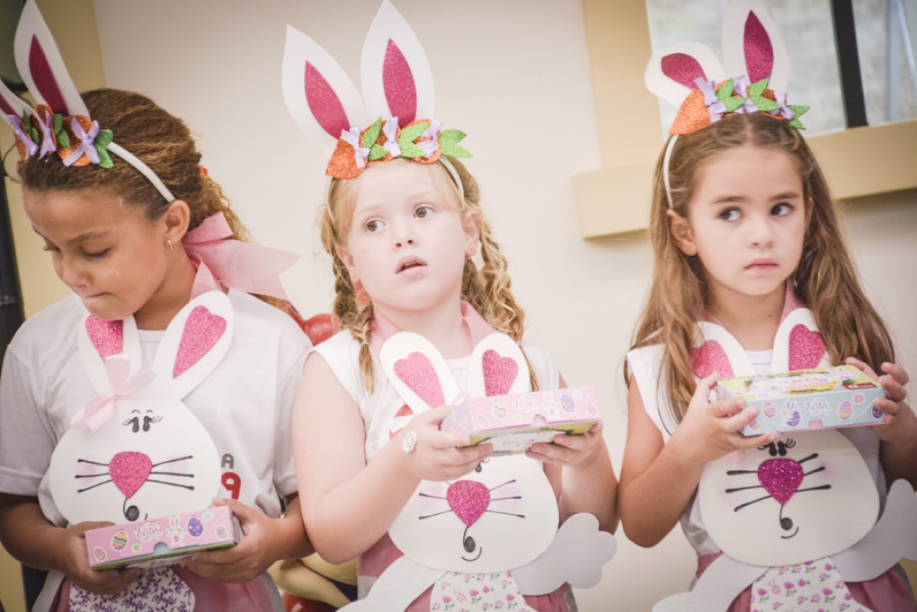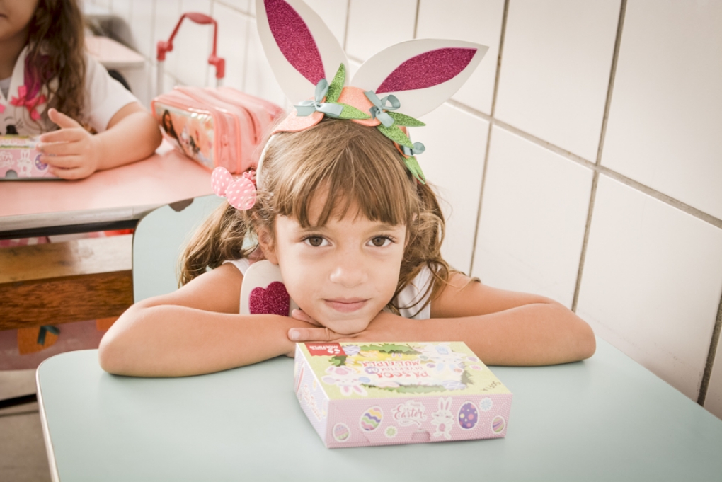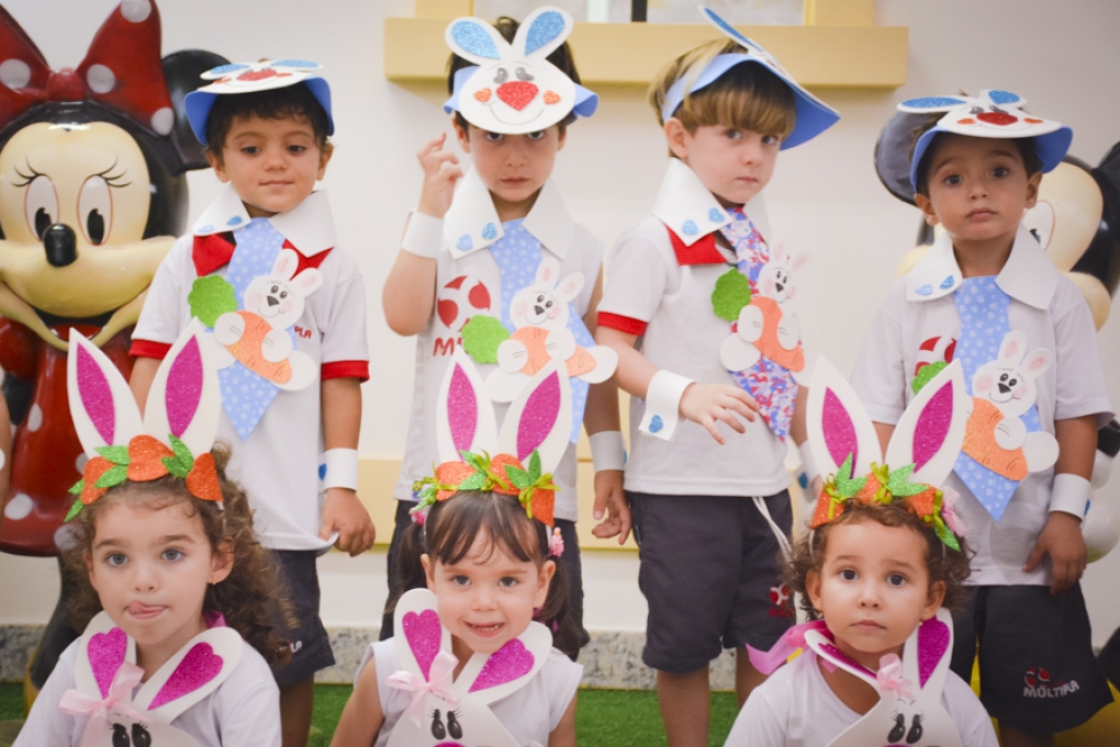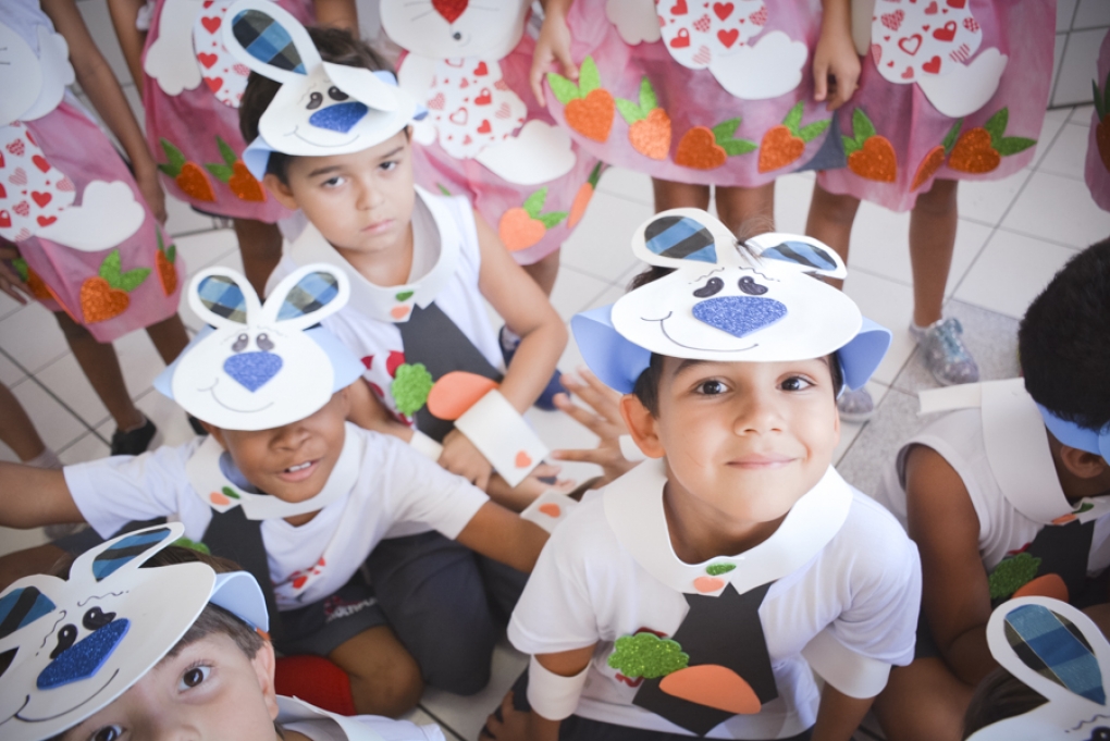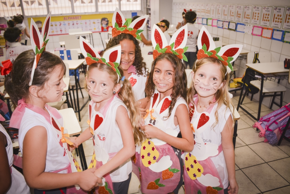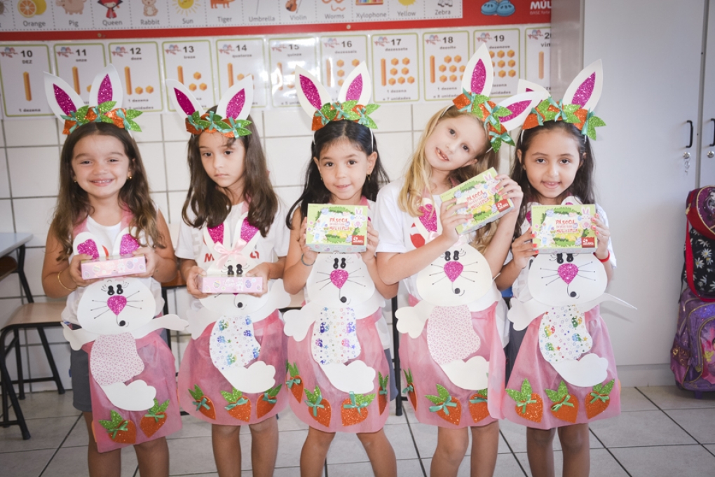Com o objetivo de despertar a fantasia e a imaginação, entregamos um figurino de coelhinho para as crianças da Ed. Infantil aos 2º ANOS se divertirem.