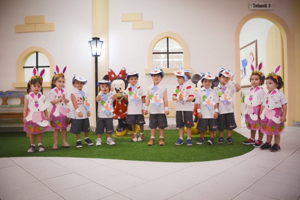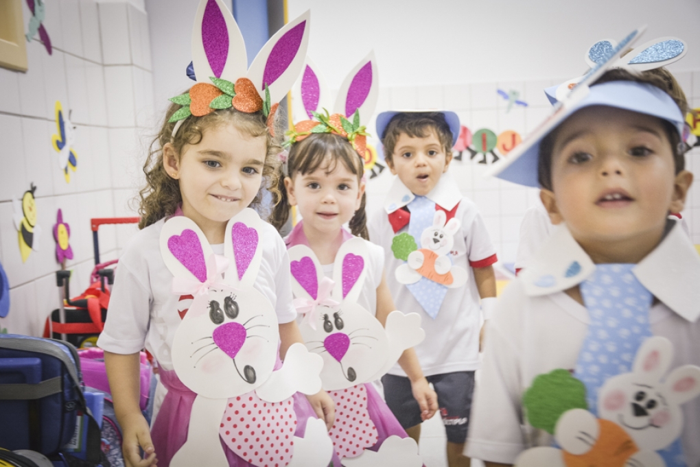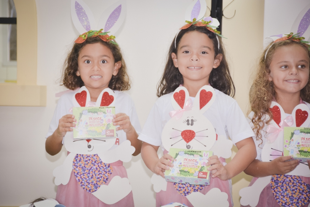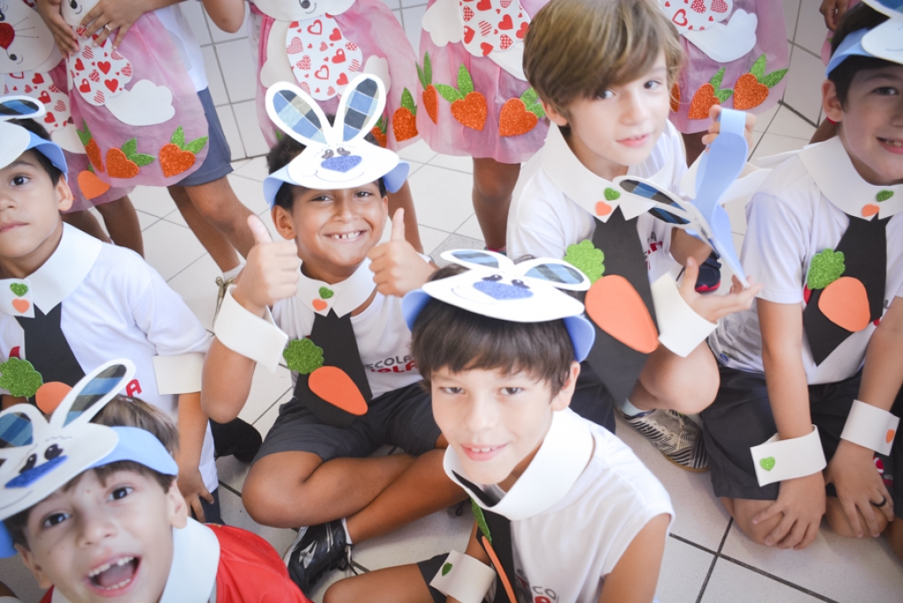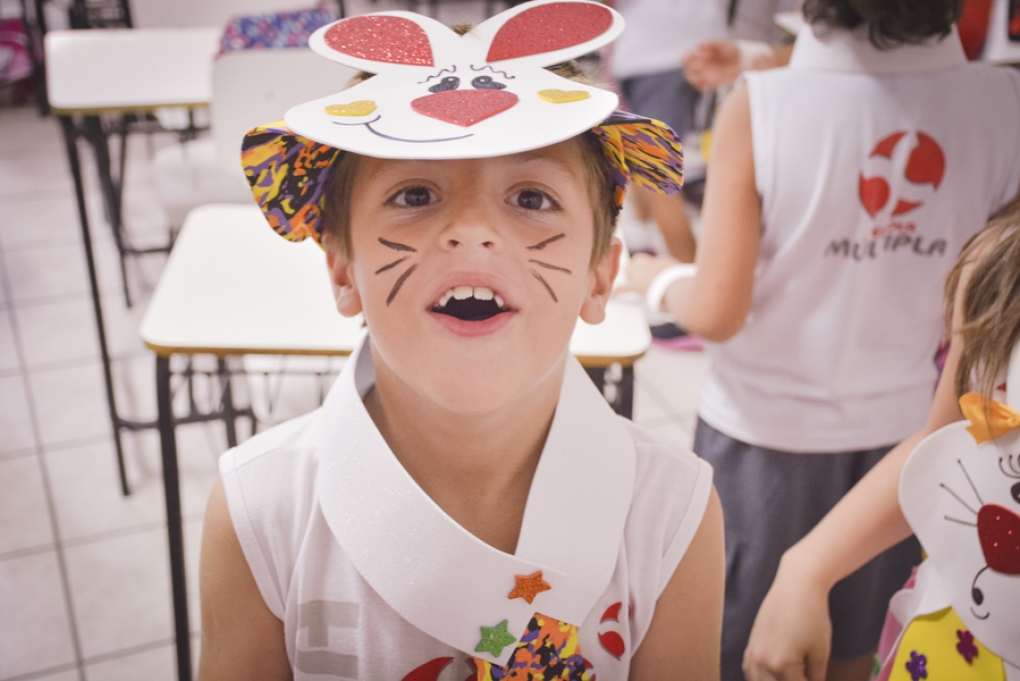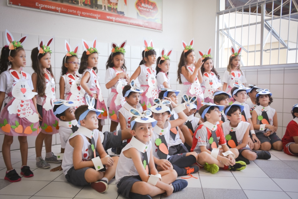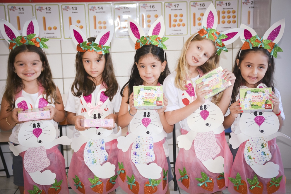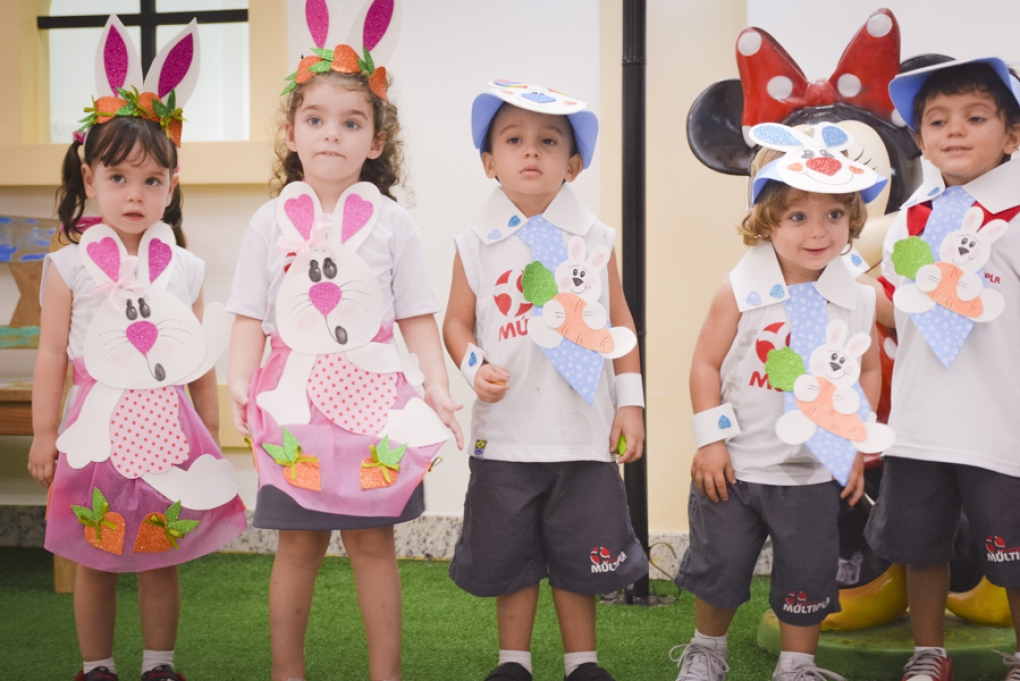 Com o objetivo de despertar a fantasia e a imaginação, entregamos um figurino de coelhinho para as crianças da Ed. Infantil aos 2º ANOS se divertirem.