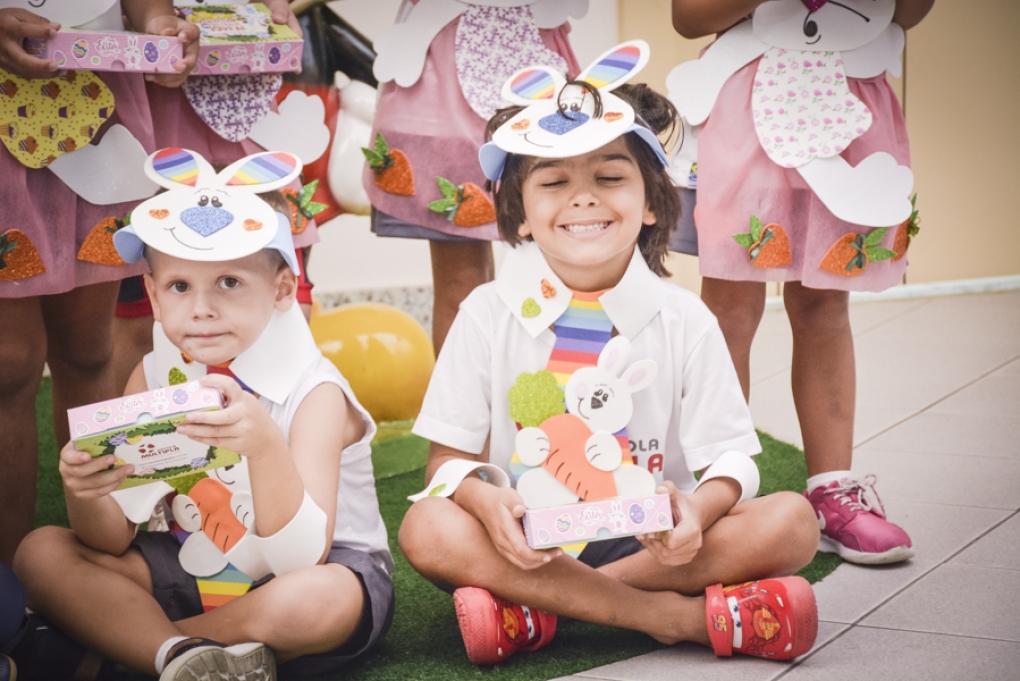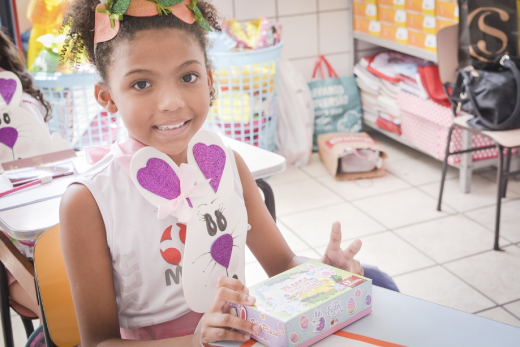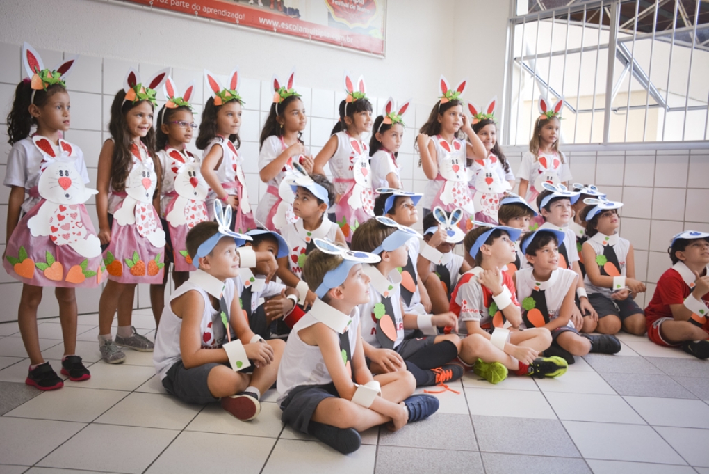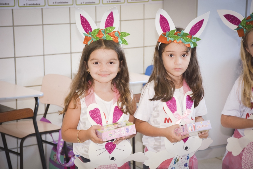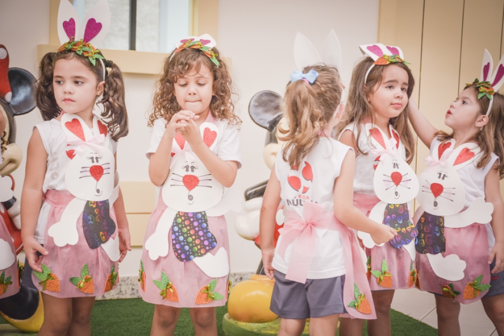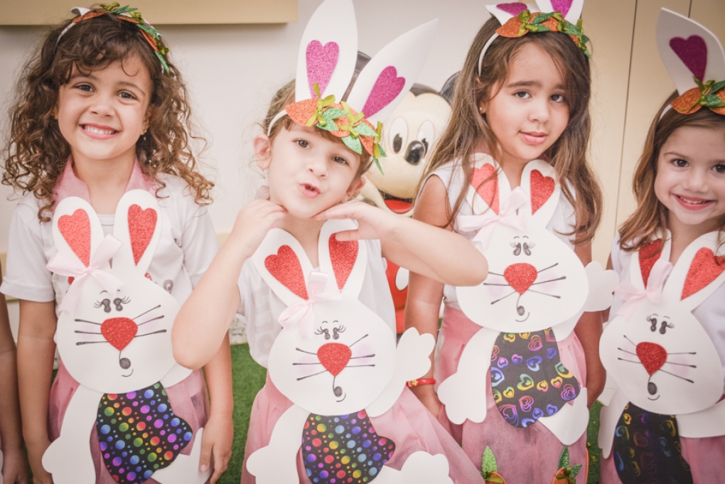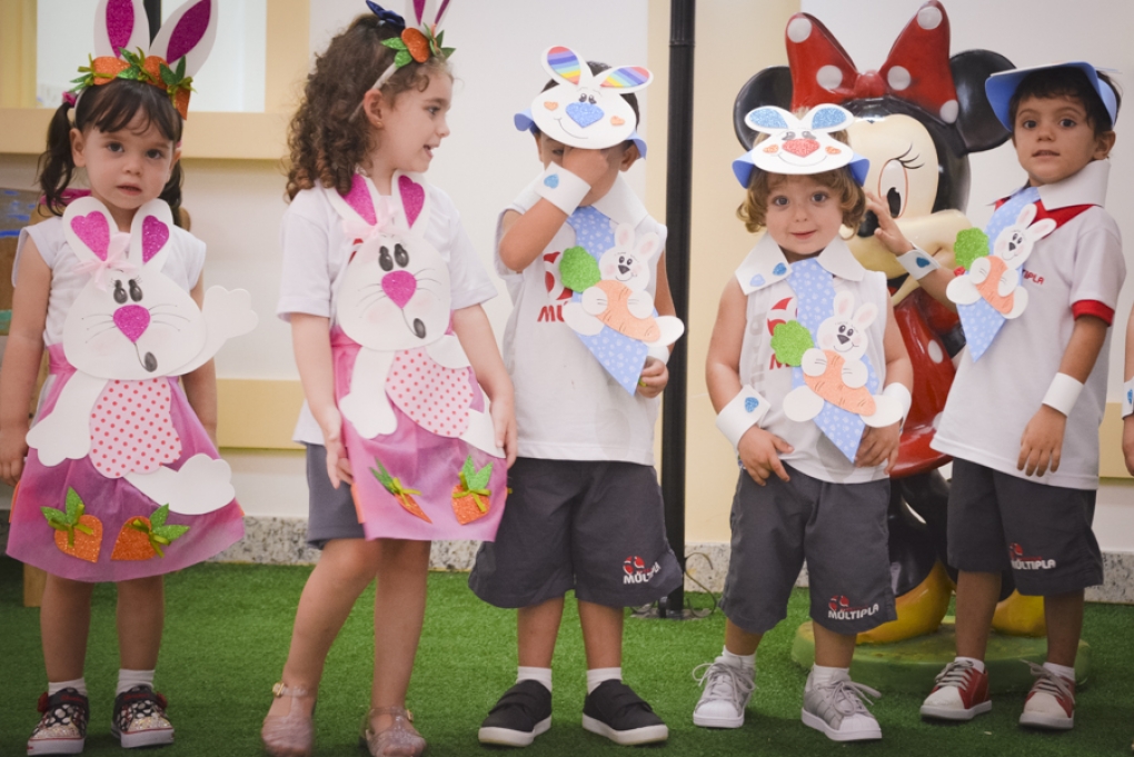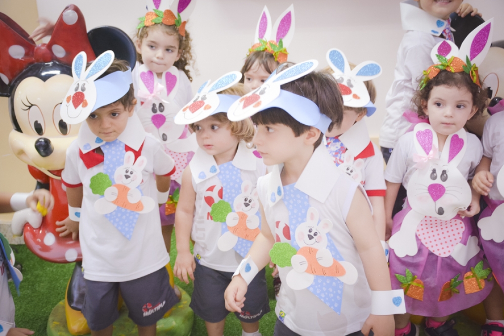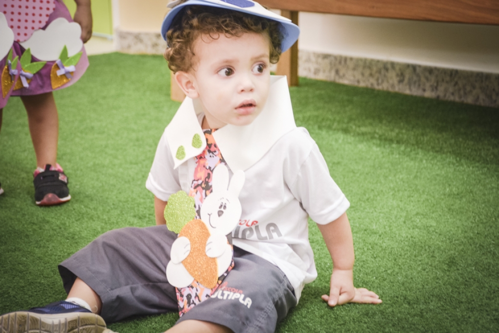 Com o objetivo de despertar a fantasia e a imaginação, entregamos um figurino de coelhinho para as crianças da Ed. Infantil aos 2º ANOS se divertirem.