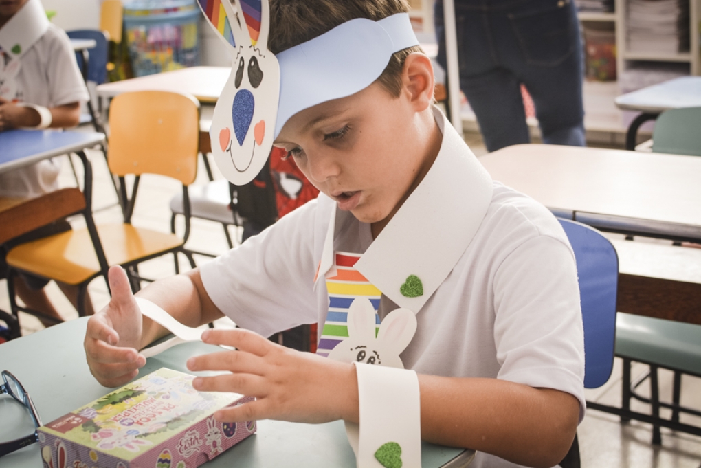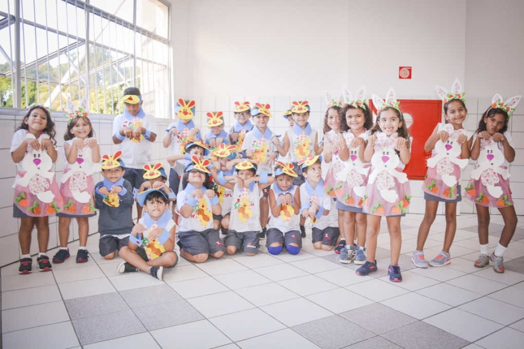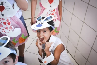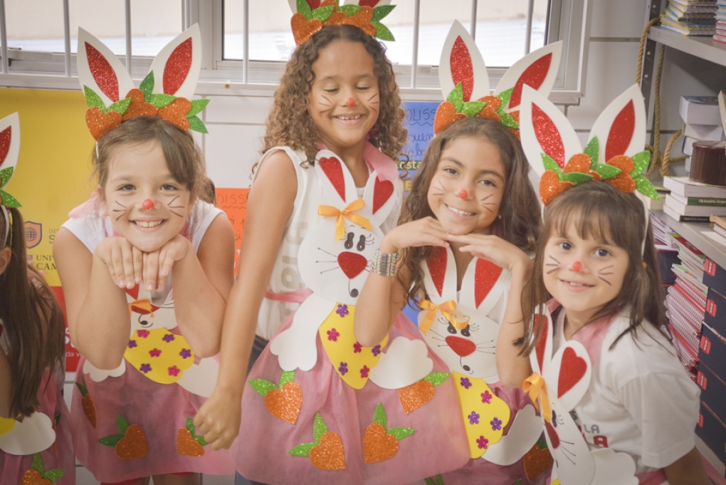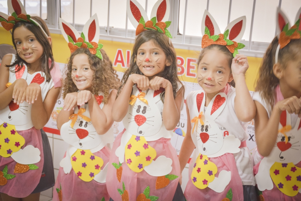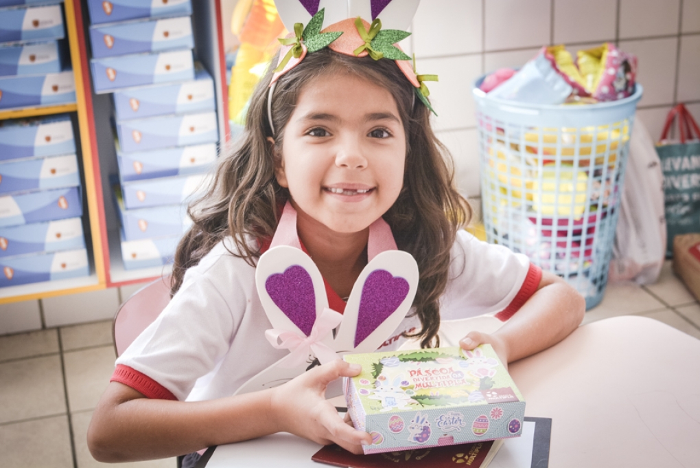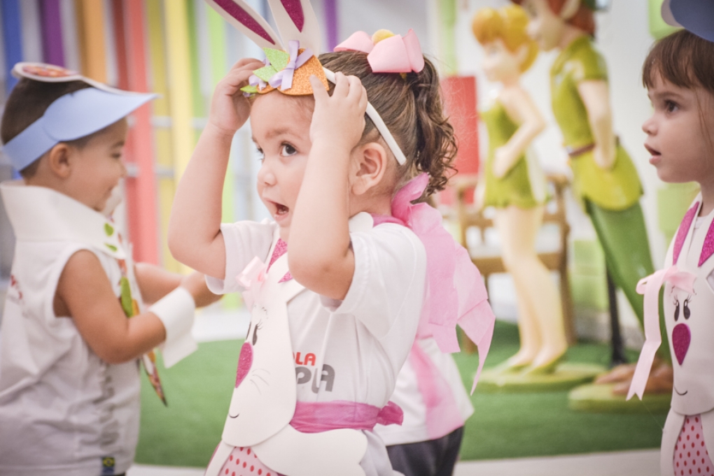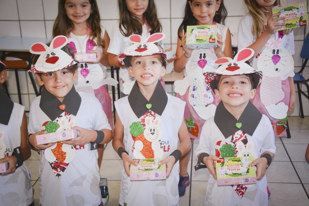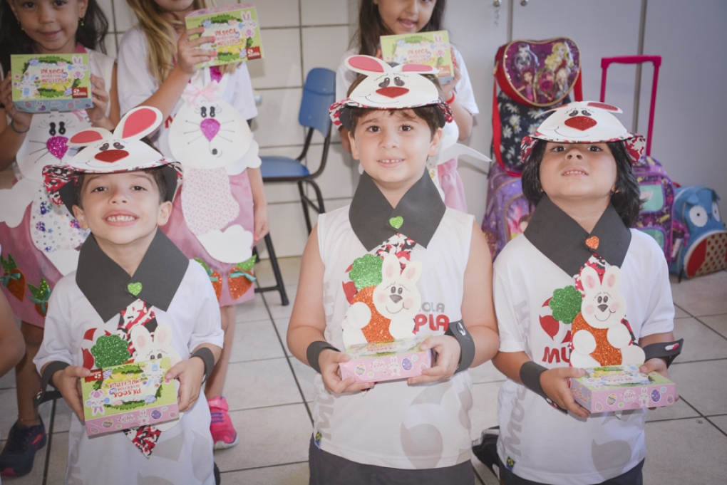 Com o objetivo de despertar a fantasia e a imaginação, entregamos um figurino de coelhinho para as crianças da Ed. Infantil aos 2º ANOS se divertirem.