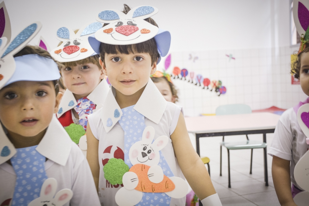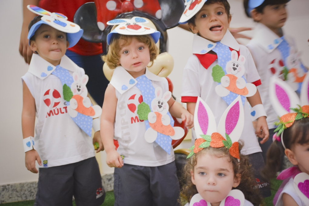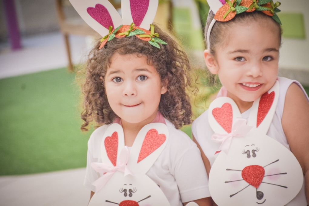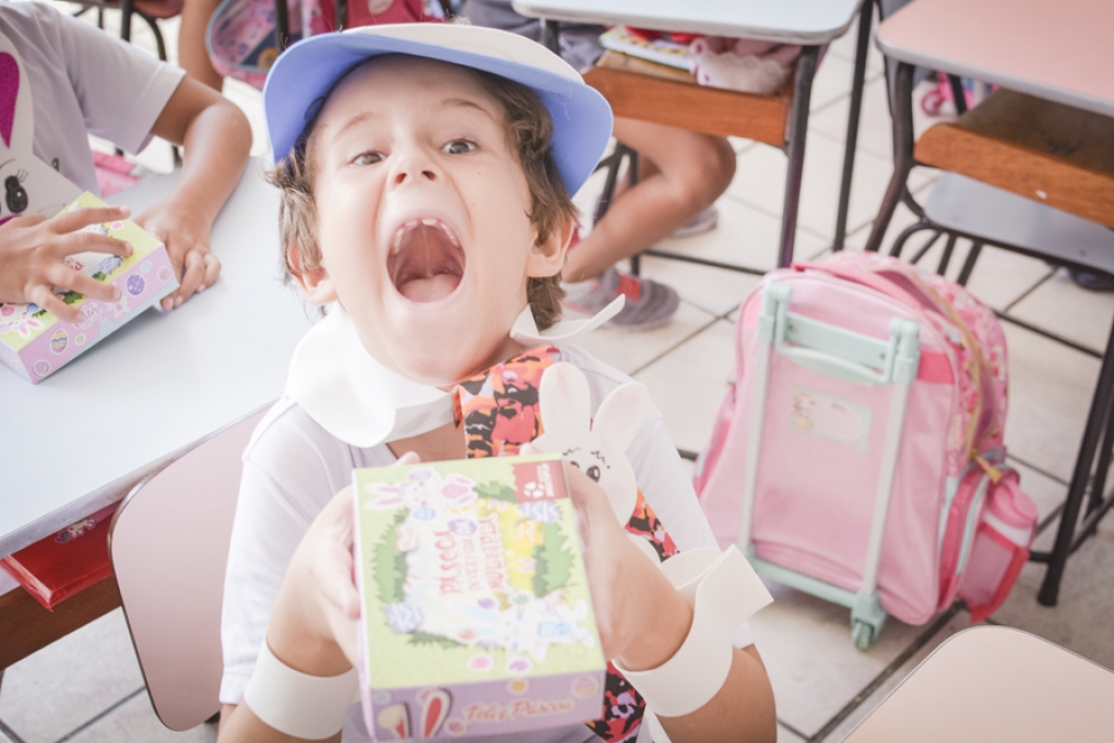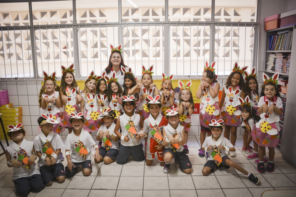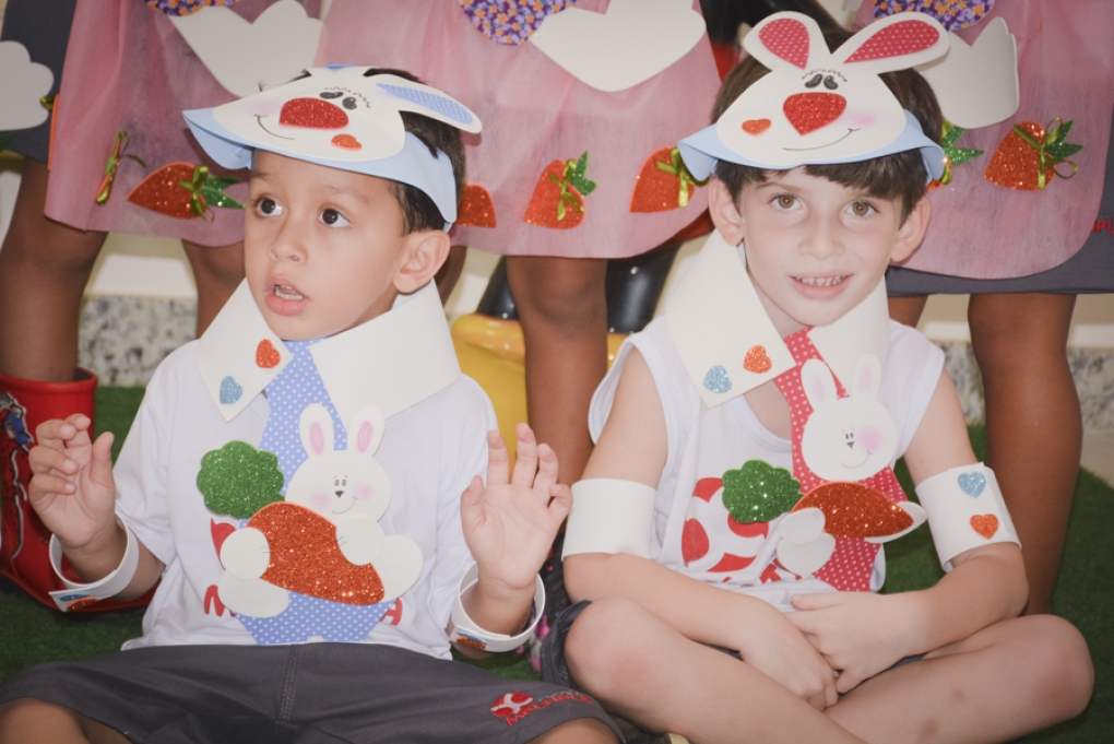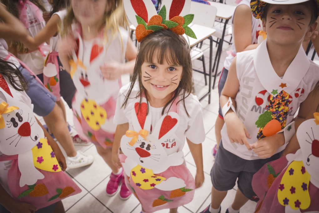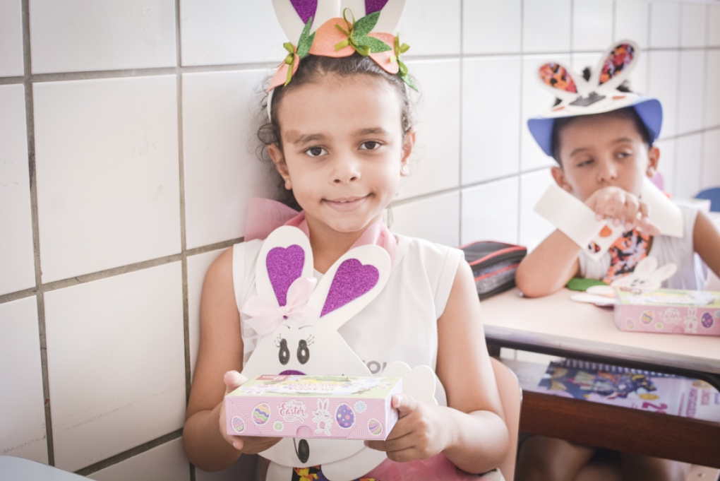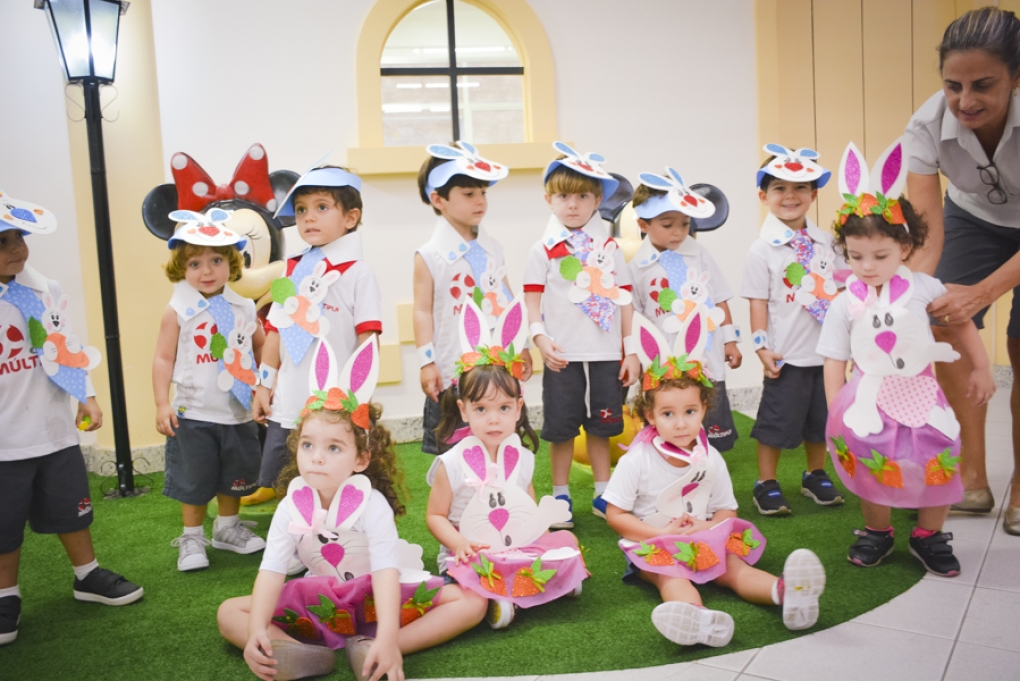 Com o objetivo de despertar a fantasia e a imaginação, entregamos um figurino de coelhinho para as crianças da Ed. Infantil aos 2º ANOS se divertirem.