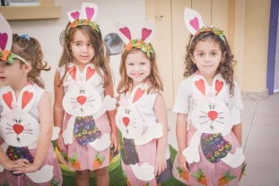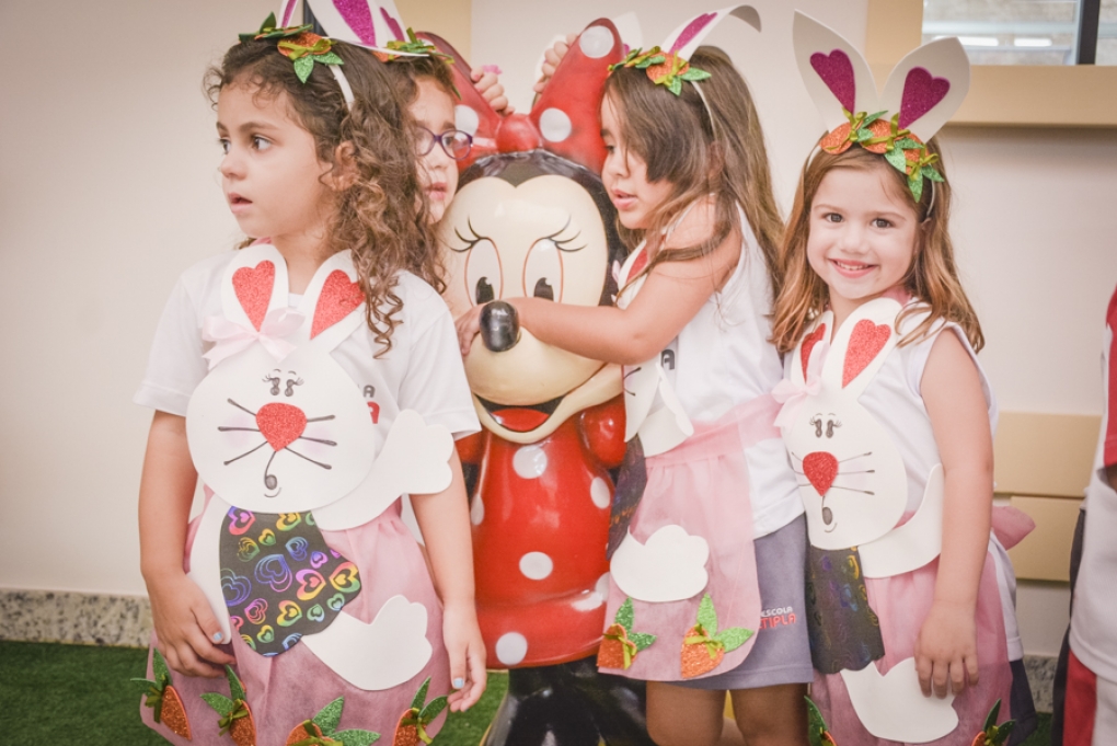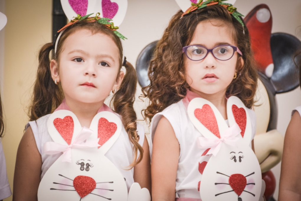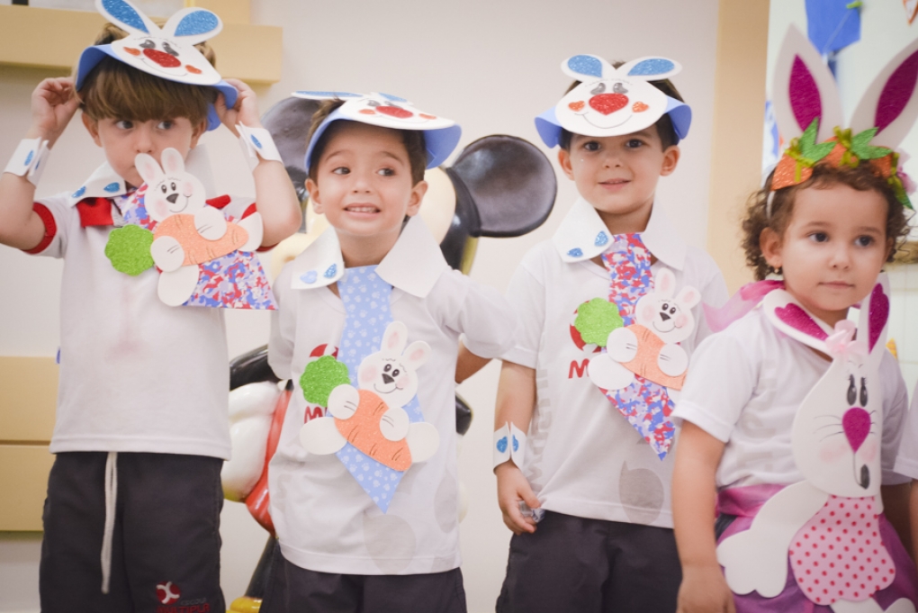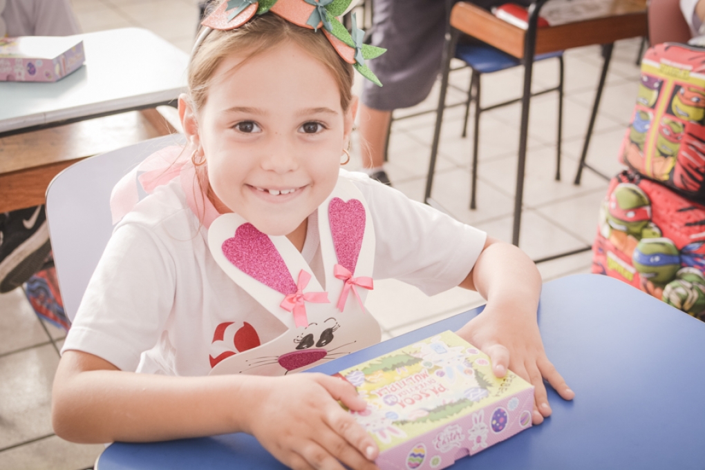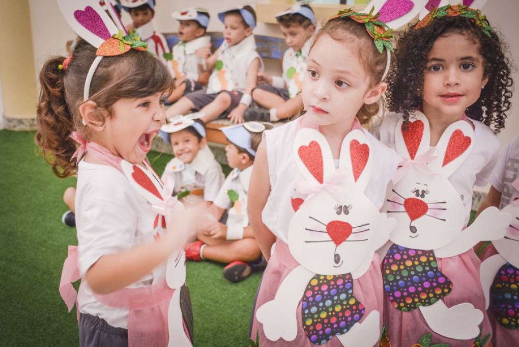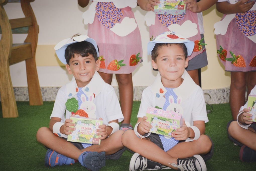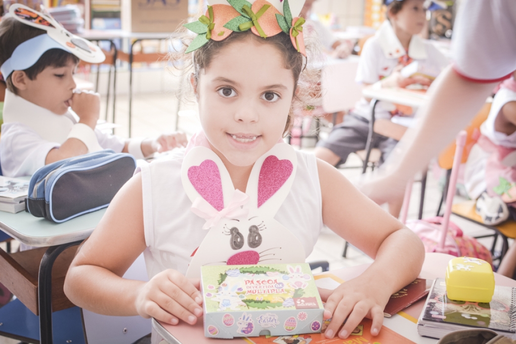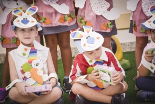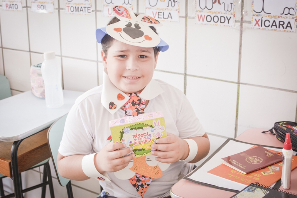 Com o objetivo de despertar a fantasia e a imaginação, entregamos um figurino de coelhinho para as crianças da Ed. Infantil aos 2º ANOS se divertirem.