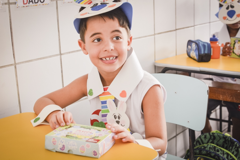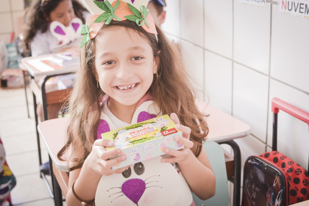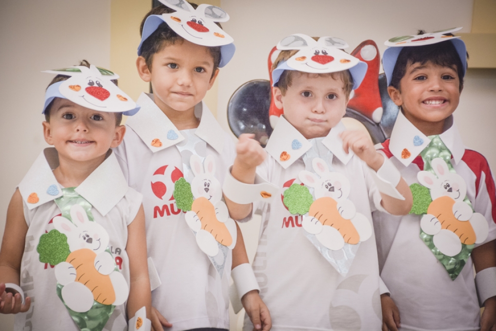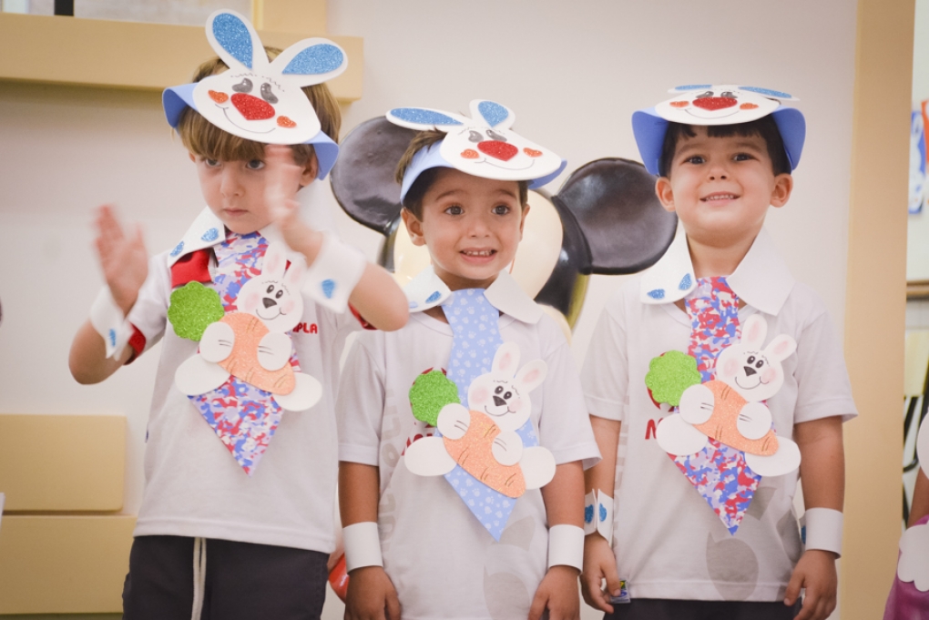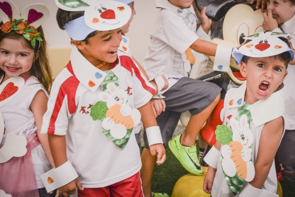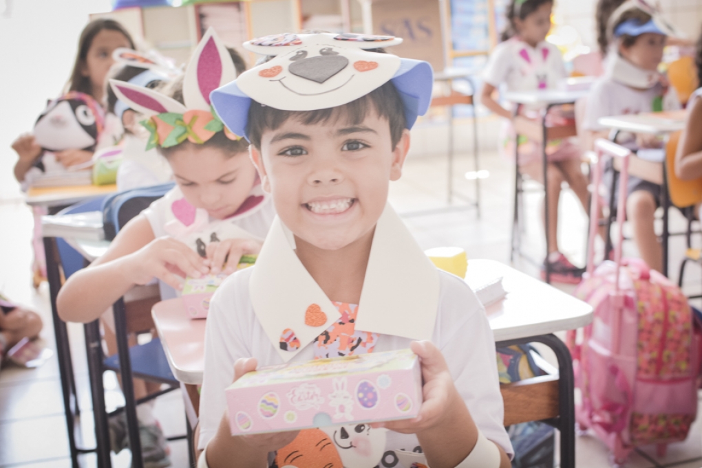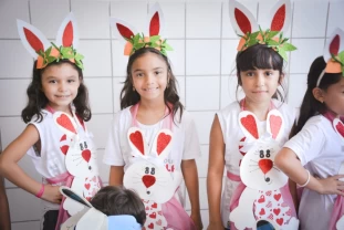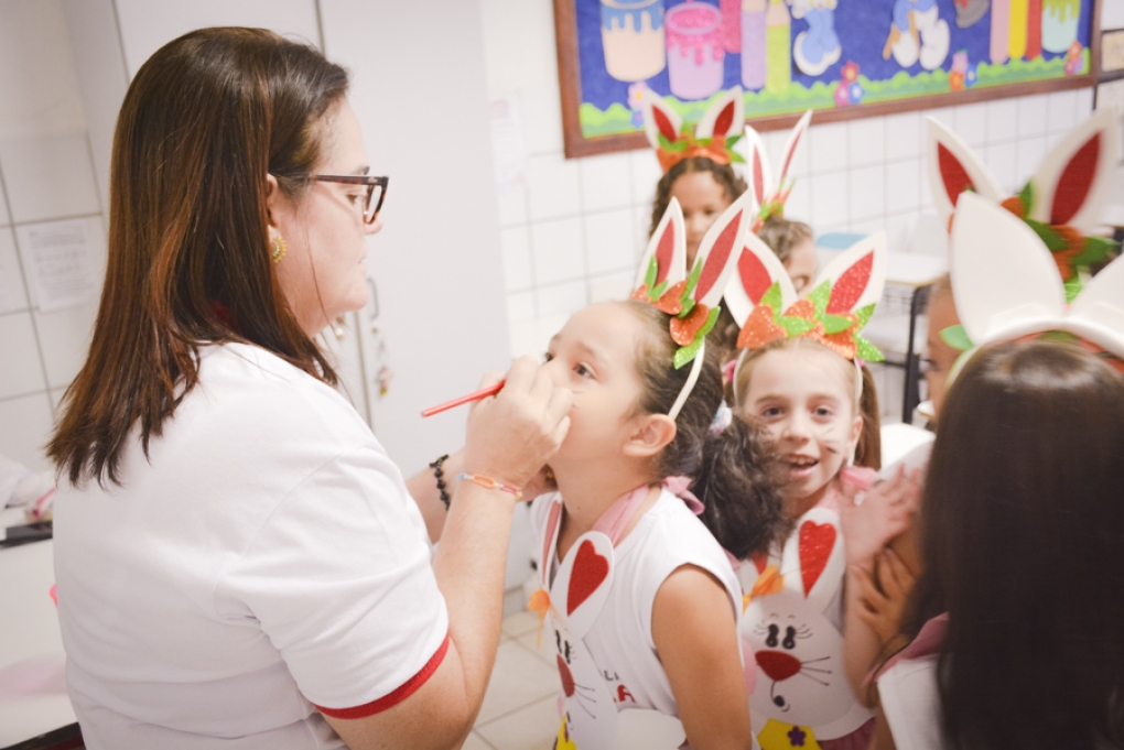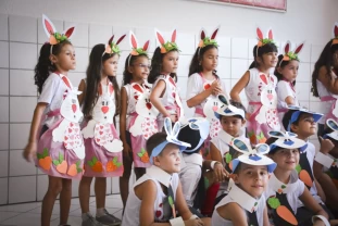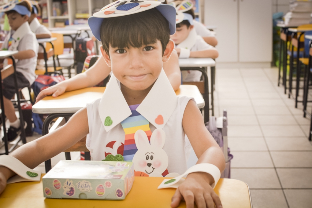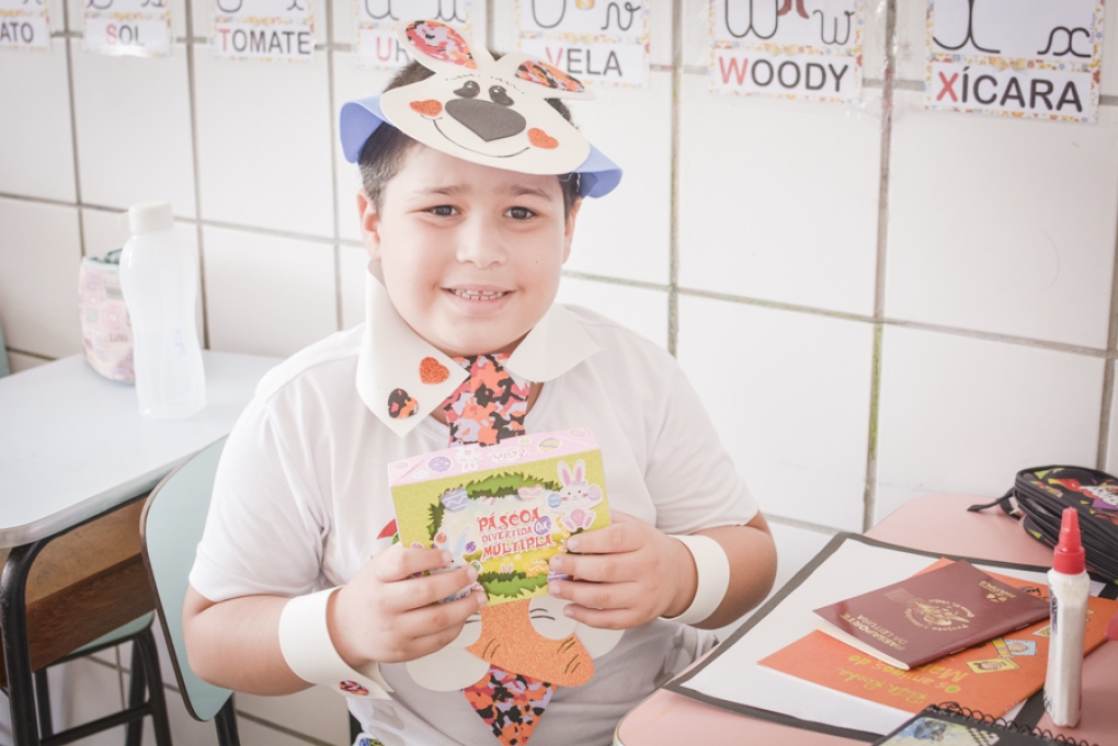 Com o objetivo de despertar a fantasia e a imaginação, entregamos um figurino de coelhinho para as crianças da Ed. Infantil aos 2º ANOS se divertirem.