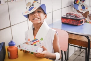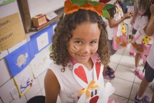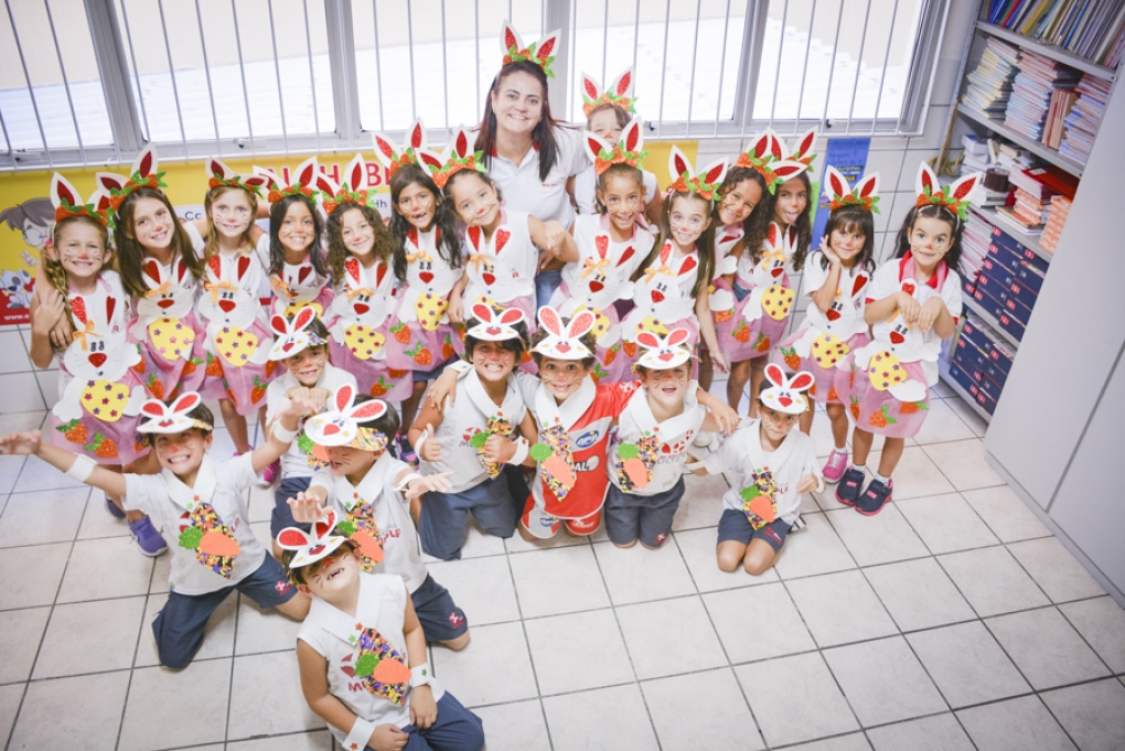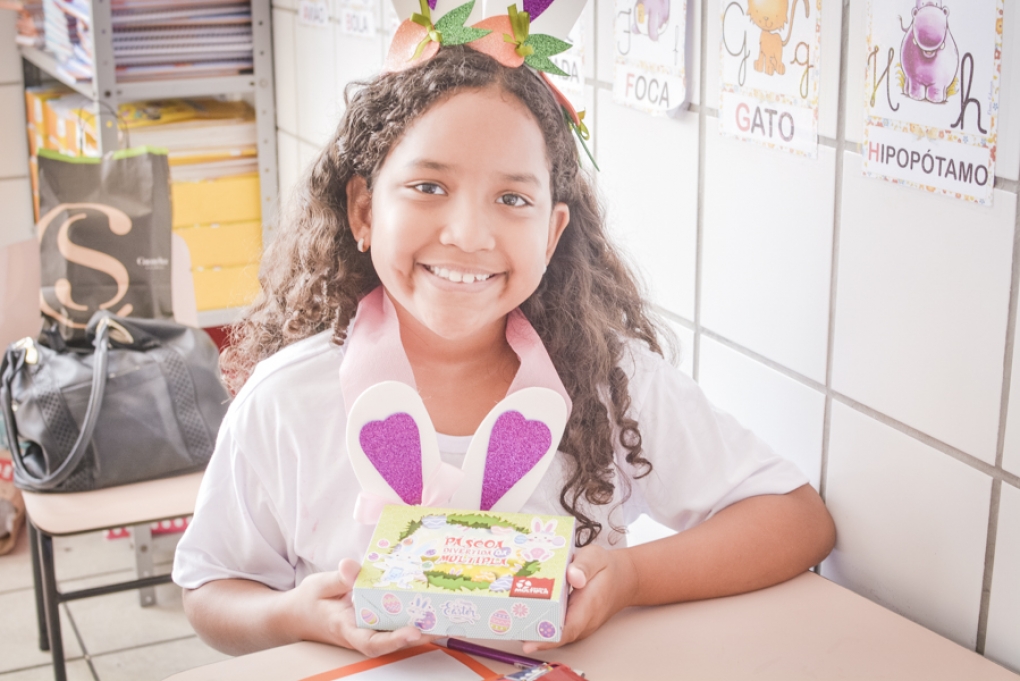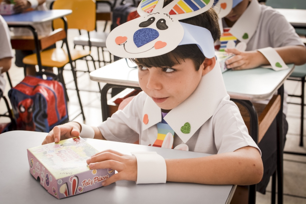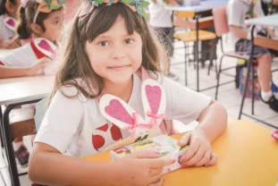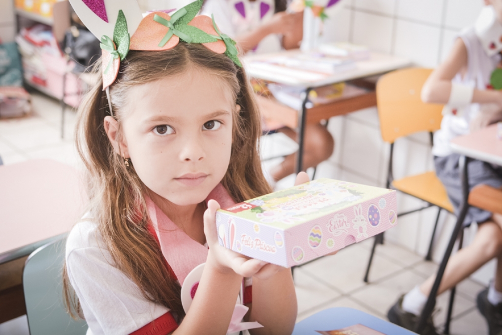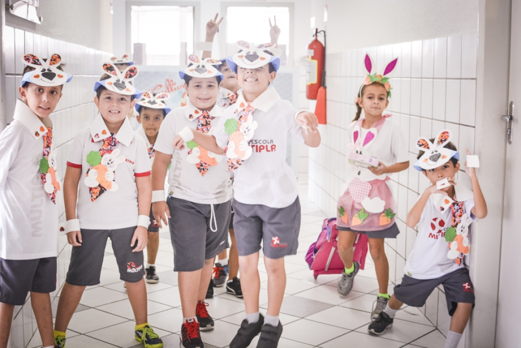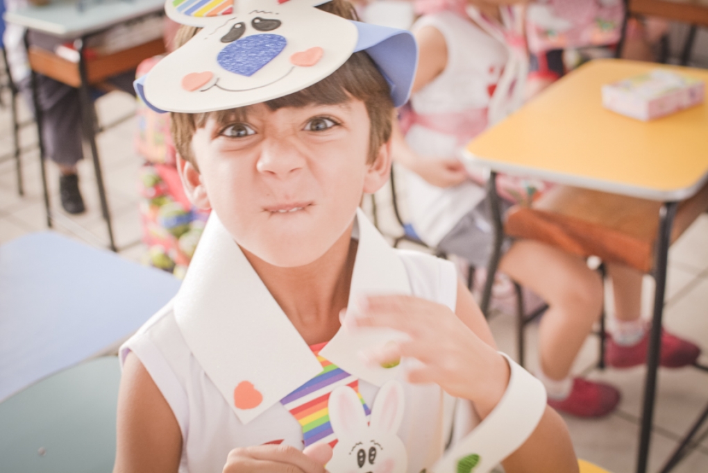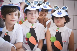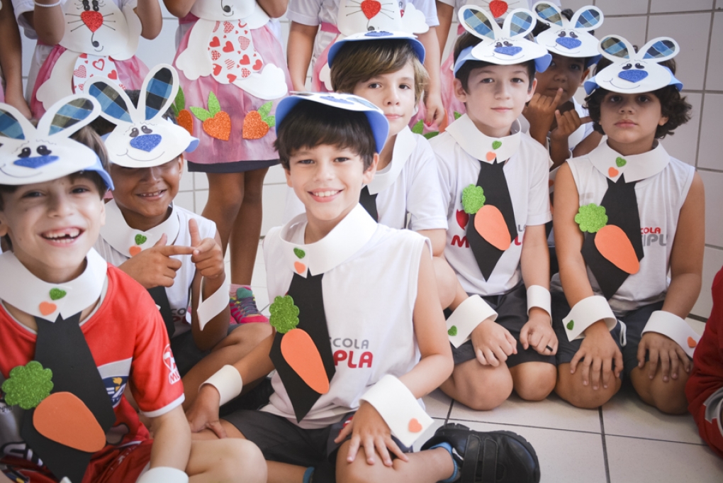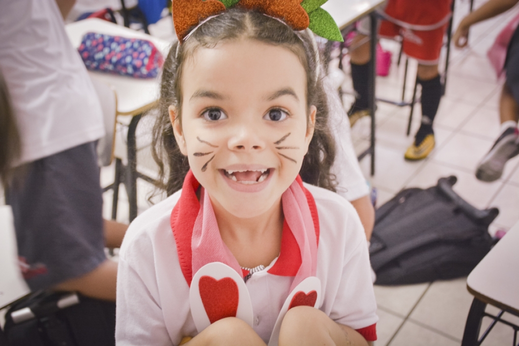 Com o objetivo de despertar a fantasia e a imaginação, entregamos um figurino de coelhinho para as crianças da Ed. Infantil aos 2º ANOS se divertirem.