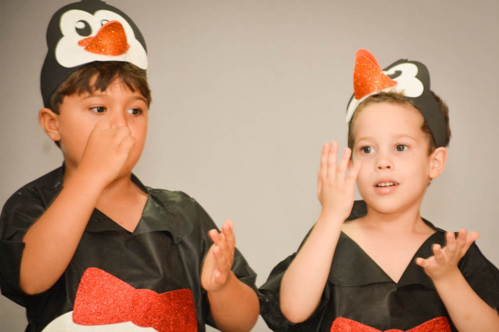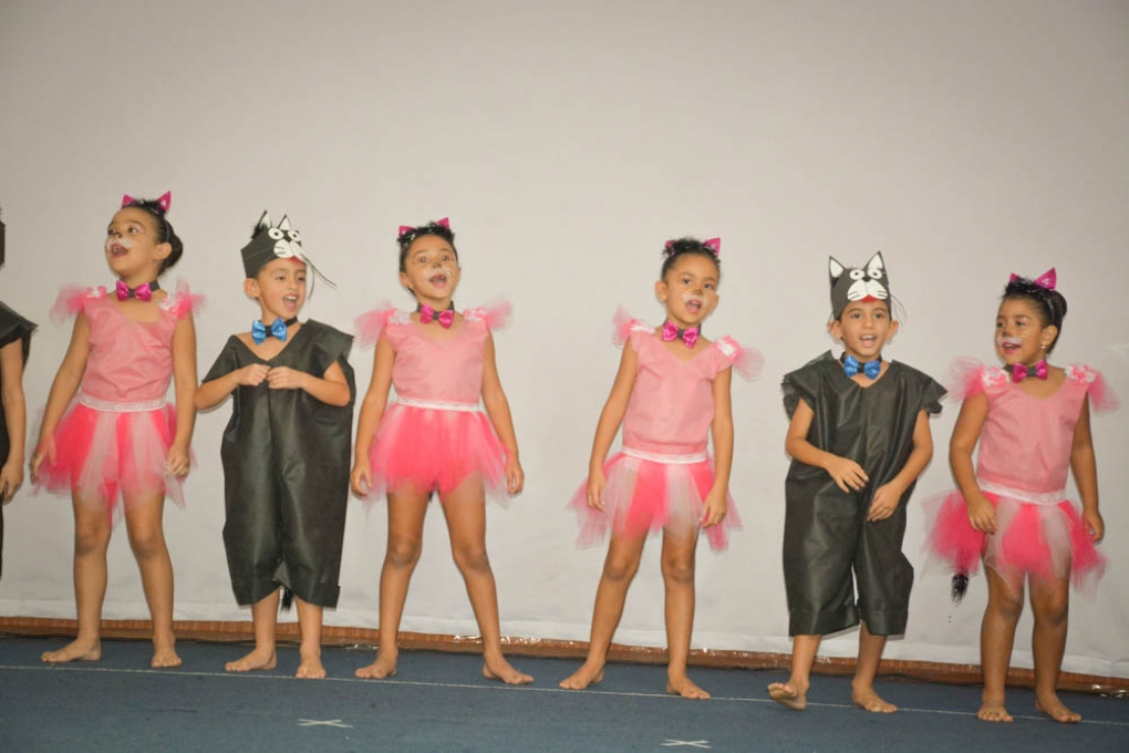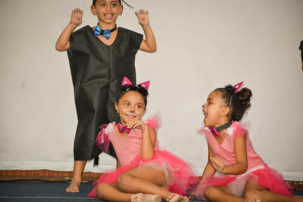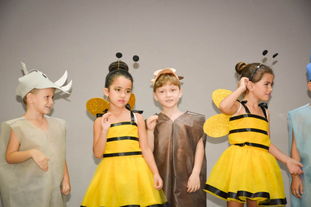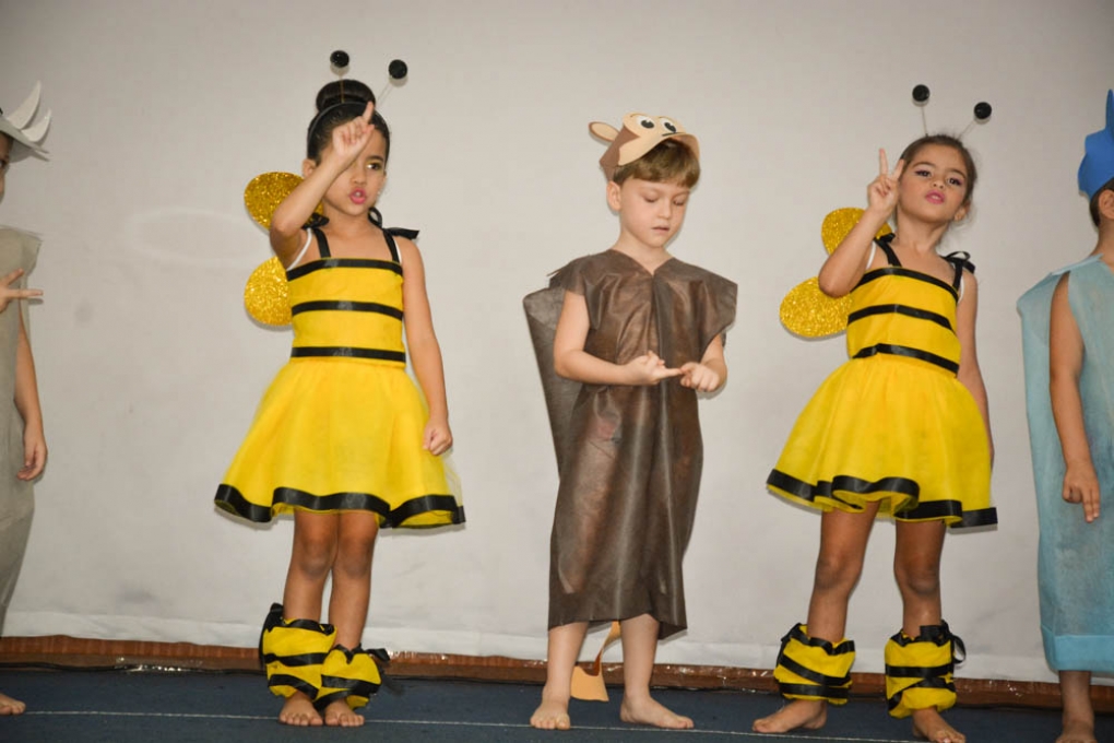 Durante as apresentações musicais cantadas em português e inglês, as crianças esbanjaram simpatia e desenvoltura no palco.