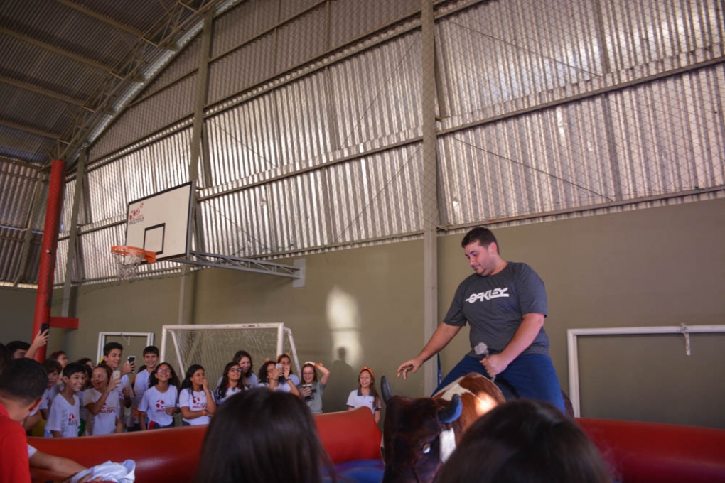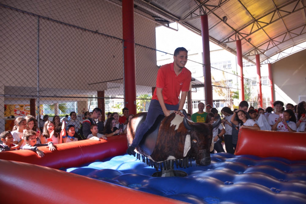 Os alunos participaram de diversas provas recreativas, com direito a touro mecânico, distribuição de pipoca e algodão doce.