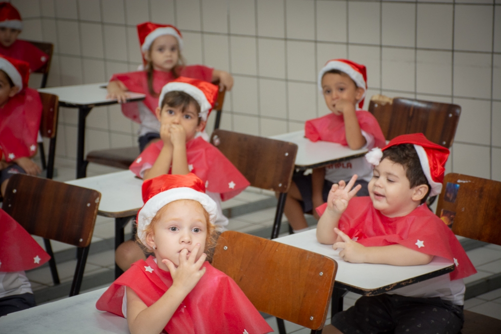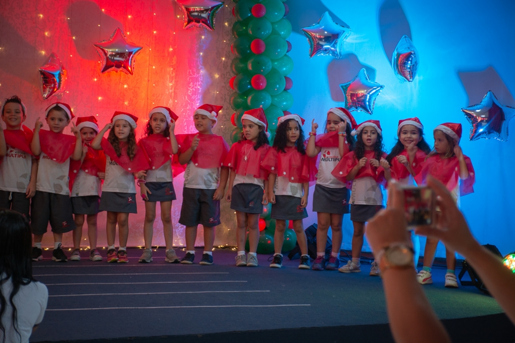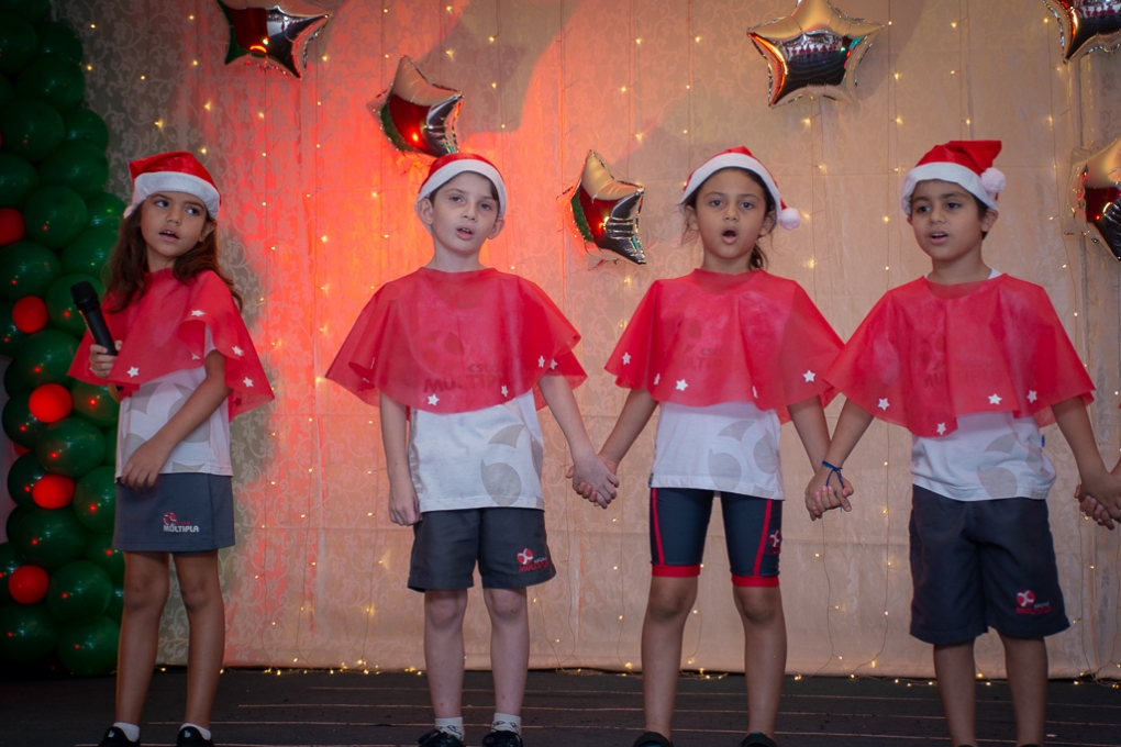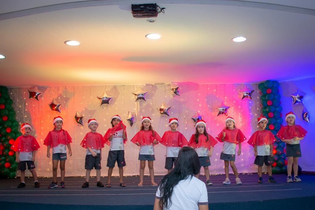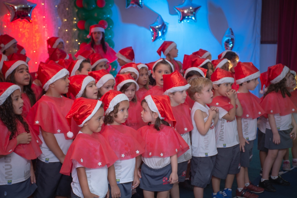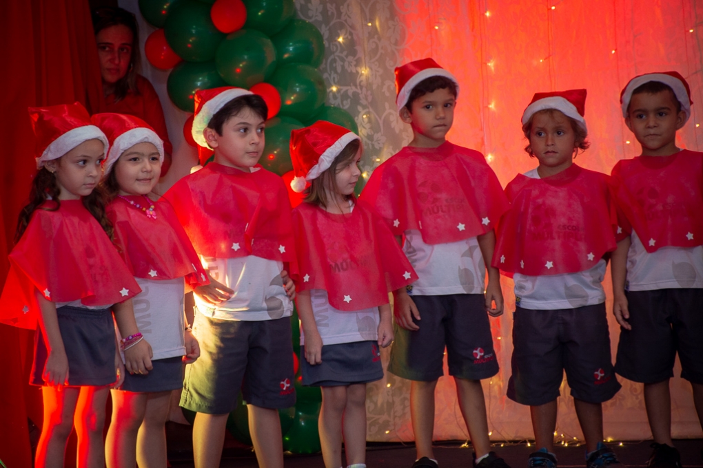 Nos dias 11 e 12 de dezembro os alunos da Educação Infantil e da turma do Integral sob a orientação da professora Lucy, apresentaram uma linda Cantata de Natal, com o objetivo de mostrar um pouco do trabalho desenvolvido nas aulas de Educação Musical.