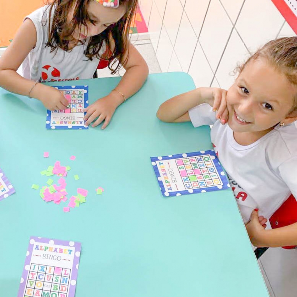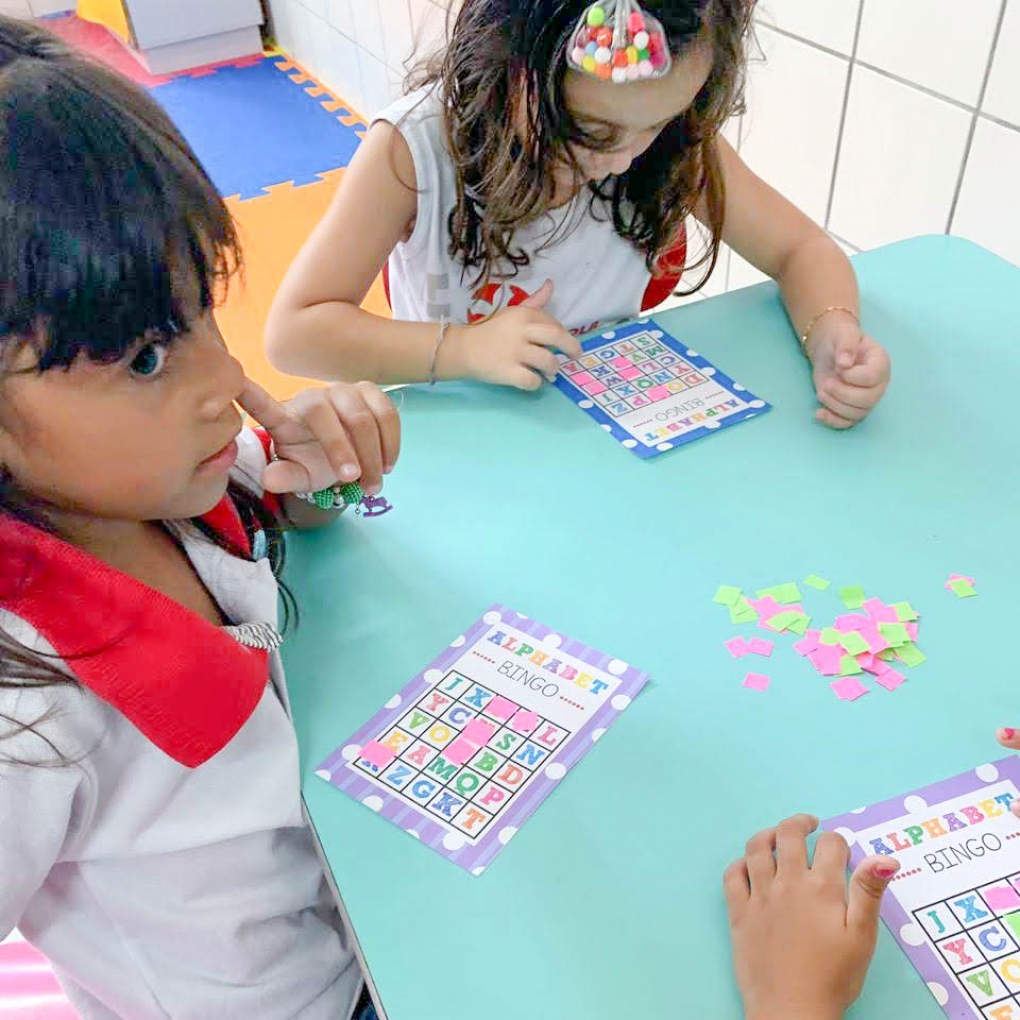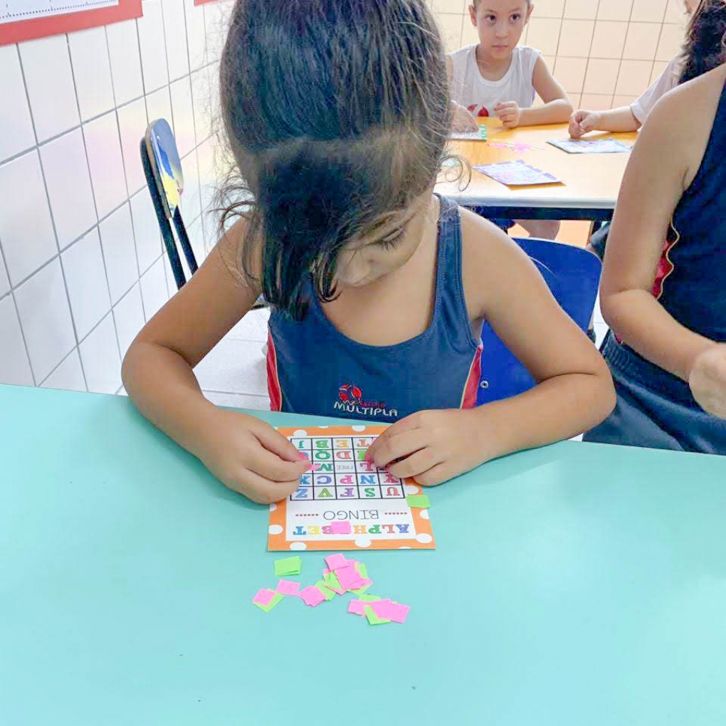 Bingo é uma estratégia eficaz para fixar o aprendizado das crianças! O Infantil 5 aprendeu as letras do alfabeto marcando cada letrinha e pronunciando-as em inglês... Foi uma experiência muito divertida!