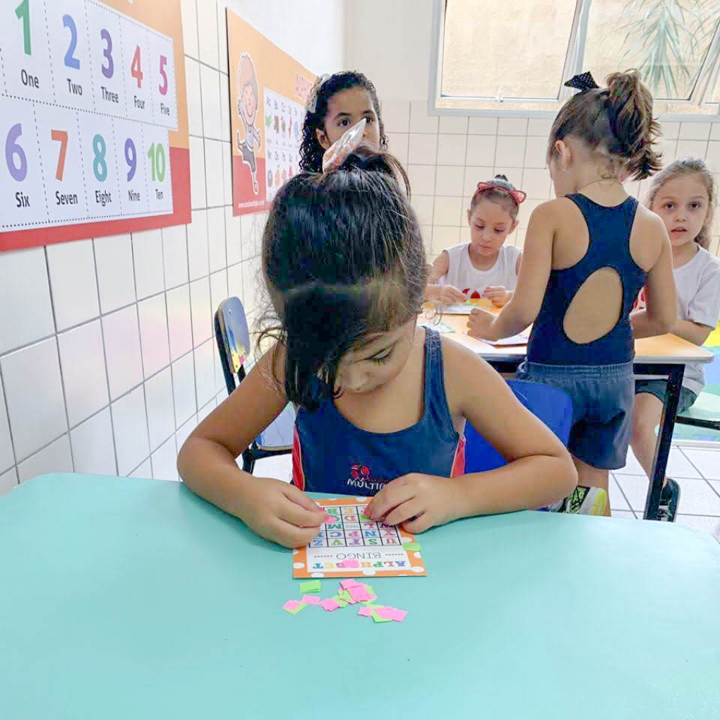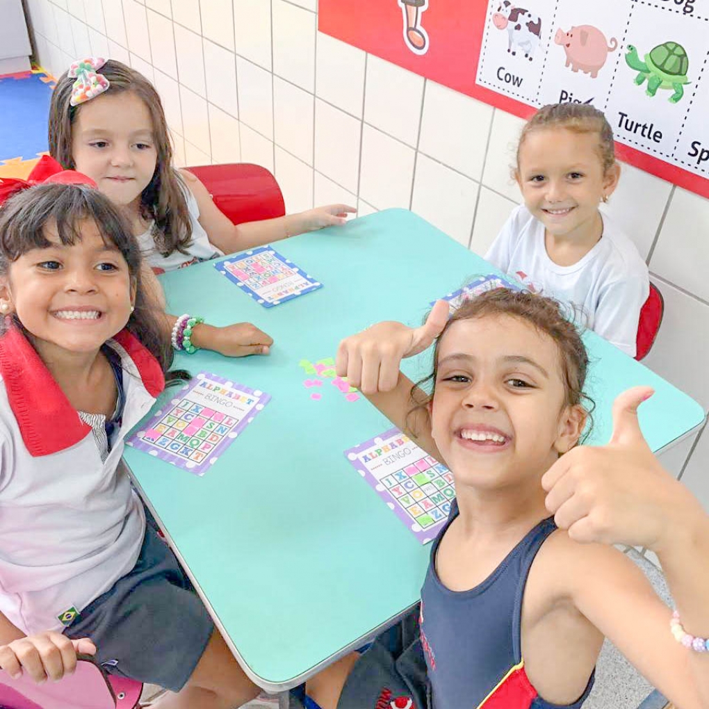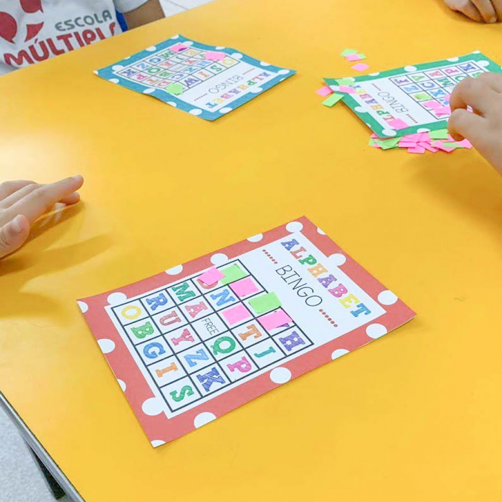 Bingo é uma estratégia eficaz para fixar o aprendizado das crianças! O Infantil 5 aprendeu as letras do alfabeto marcando cada letrinha e pronunciando-as em inglês... Foi uma experiência muito divertida!