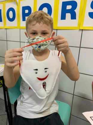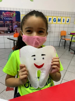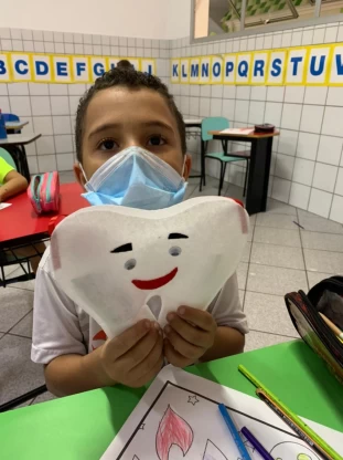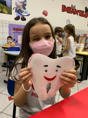 Escovar os dentes é um hábito muito importante para a nossa saúde. Os alunos do Infantil 5, ao finalizarem os estudos sobre hábitos saudáveis, levaram para casa o Tooth kit! Neste kit contém uma escova e uma pasta de dente. Durante as férias não podemos nos esquecer de escovar os dentinhos, ok?!