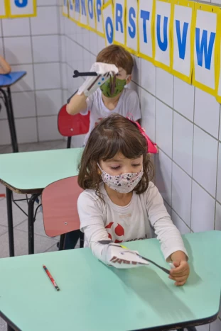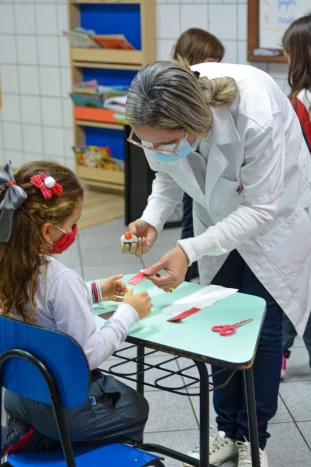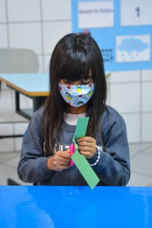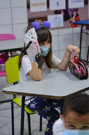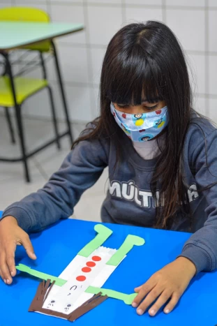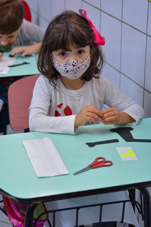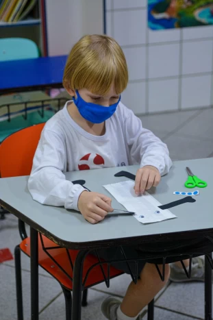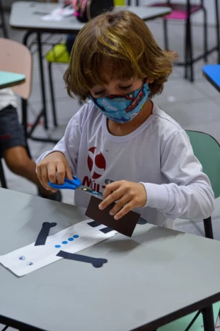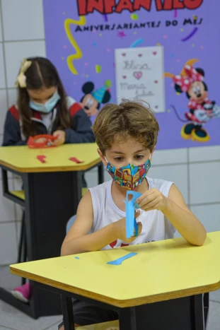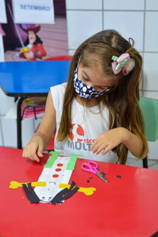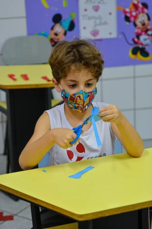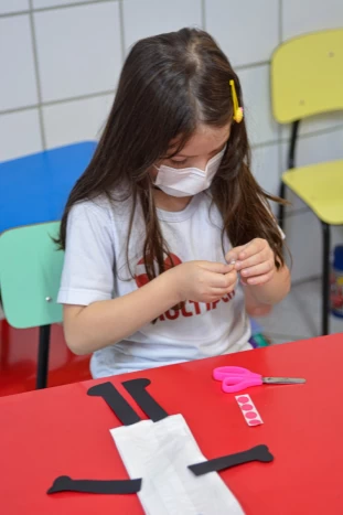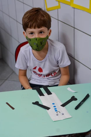 Contemplando o livro Explorar e Descobrir, os alunos do Infantil 5 realizaram a confecção de um divertido fantoche com saquinho de pipoca, papel colorido, canetinha preta, cola, tesoura e muita criatividade!