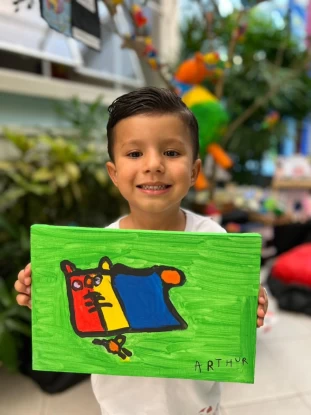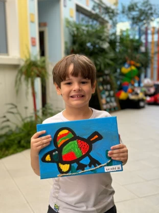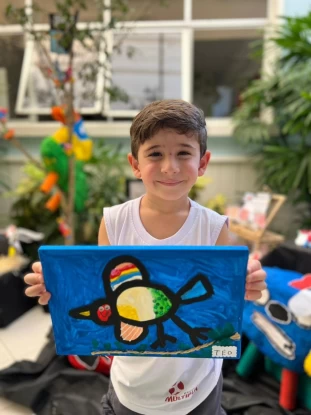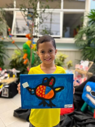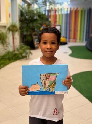 Os pequenos artistas da Escola Múltipla mergulharam no universo colorido e encantador de Gustavo Rosa, apresentando suas próprias interpretações das obras desse grande artista.