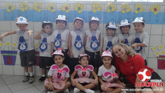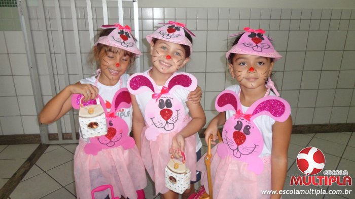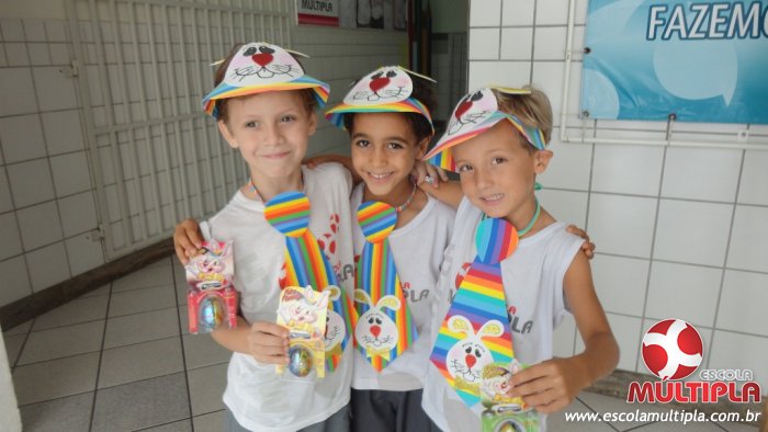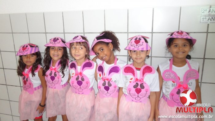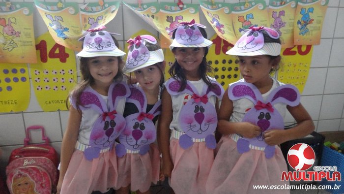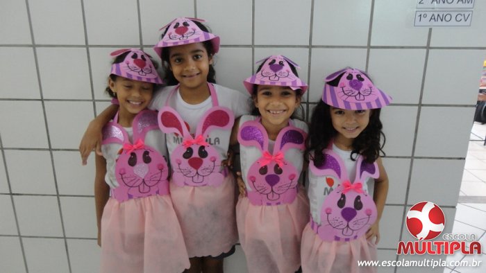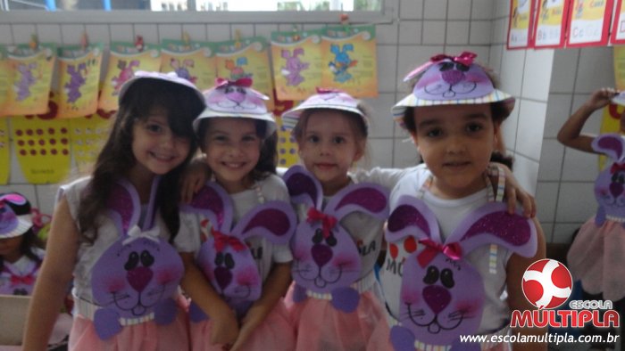 Com o sentimento de alegria que hoje (16/04) a Escola Múltipla presenteou seus alunos da Educação Infantil aos 2º ANOS com um lindo figurino de coelhinho da páscoa, com o objetivo de despertar a fantasia e a imaginação, fundamentais de serem exploradas nessa faixa etária.